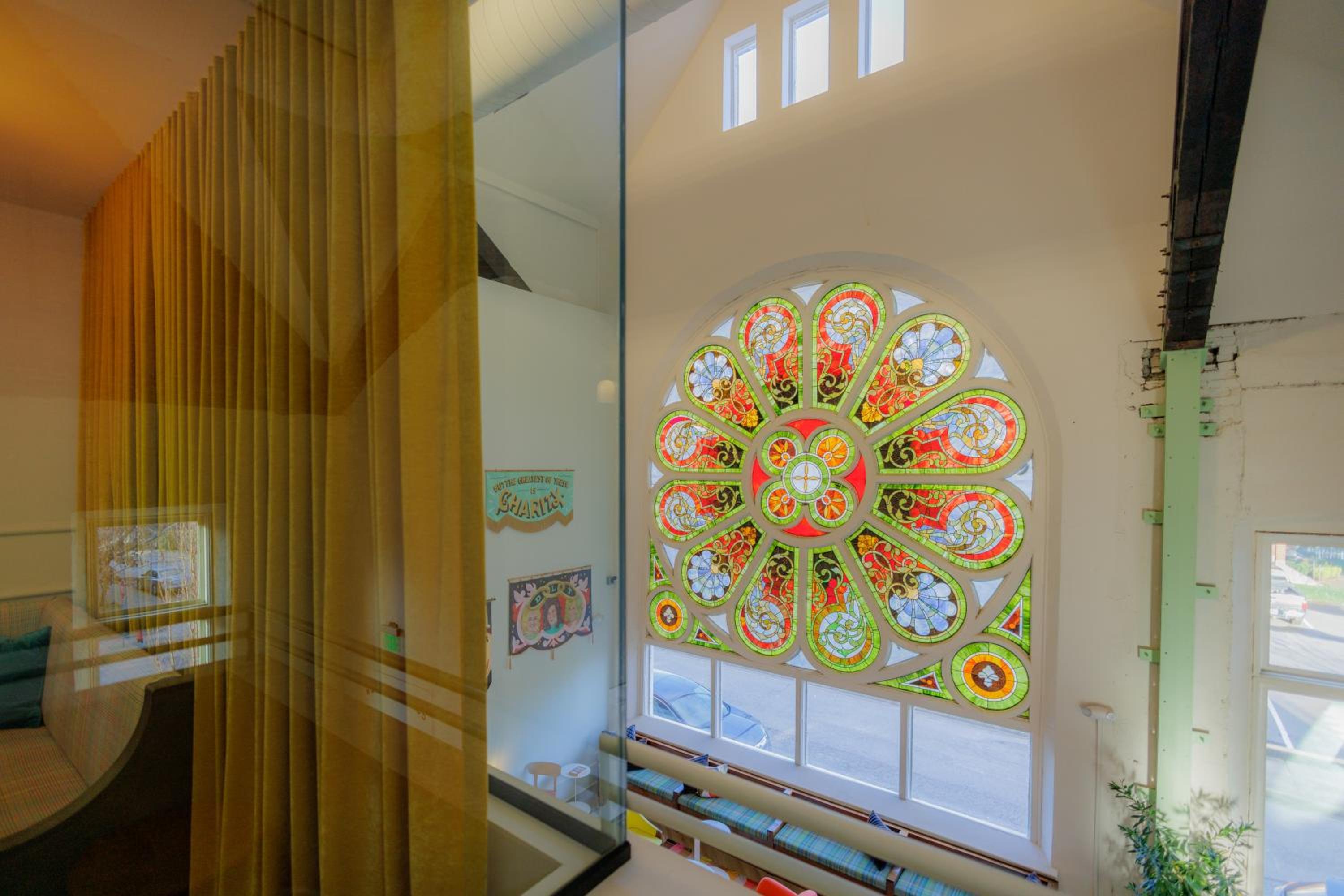 Beautiful property built in an d church with stunning stain glass windows. Very clean and quiet. Easy free parking across the street. Highly recommend.