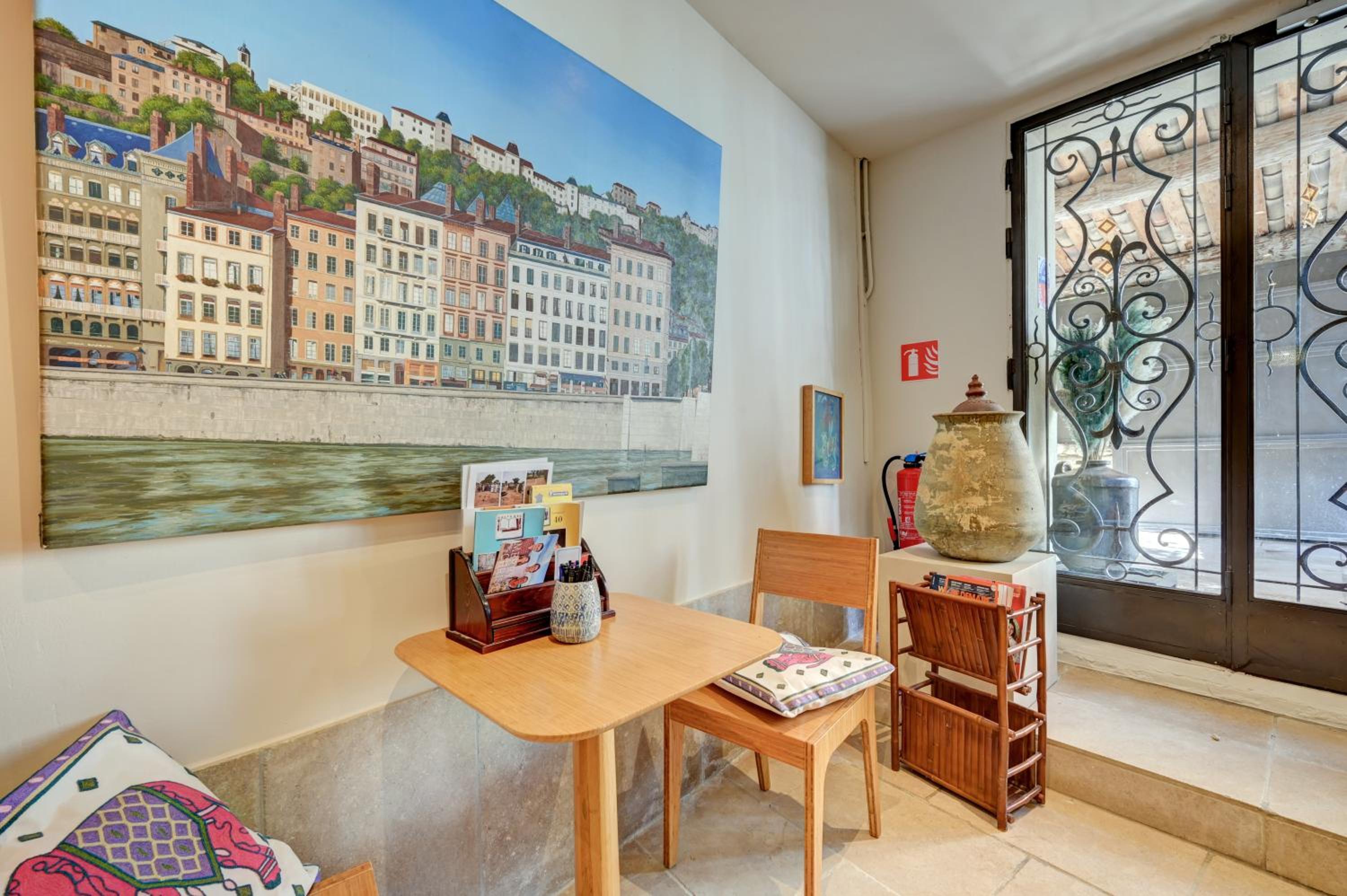 Dessus du jardin aucune insonorisations odeurs de nourriture constamment dans les couloirs et salle de bain très désagréable dés le matin...