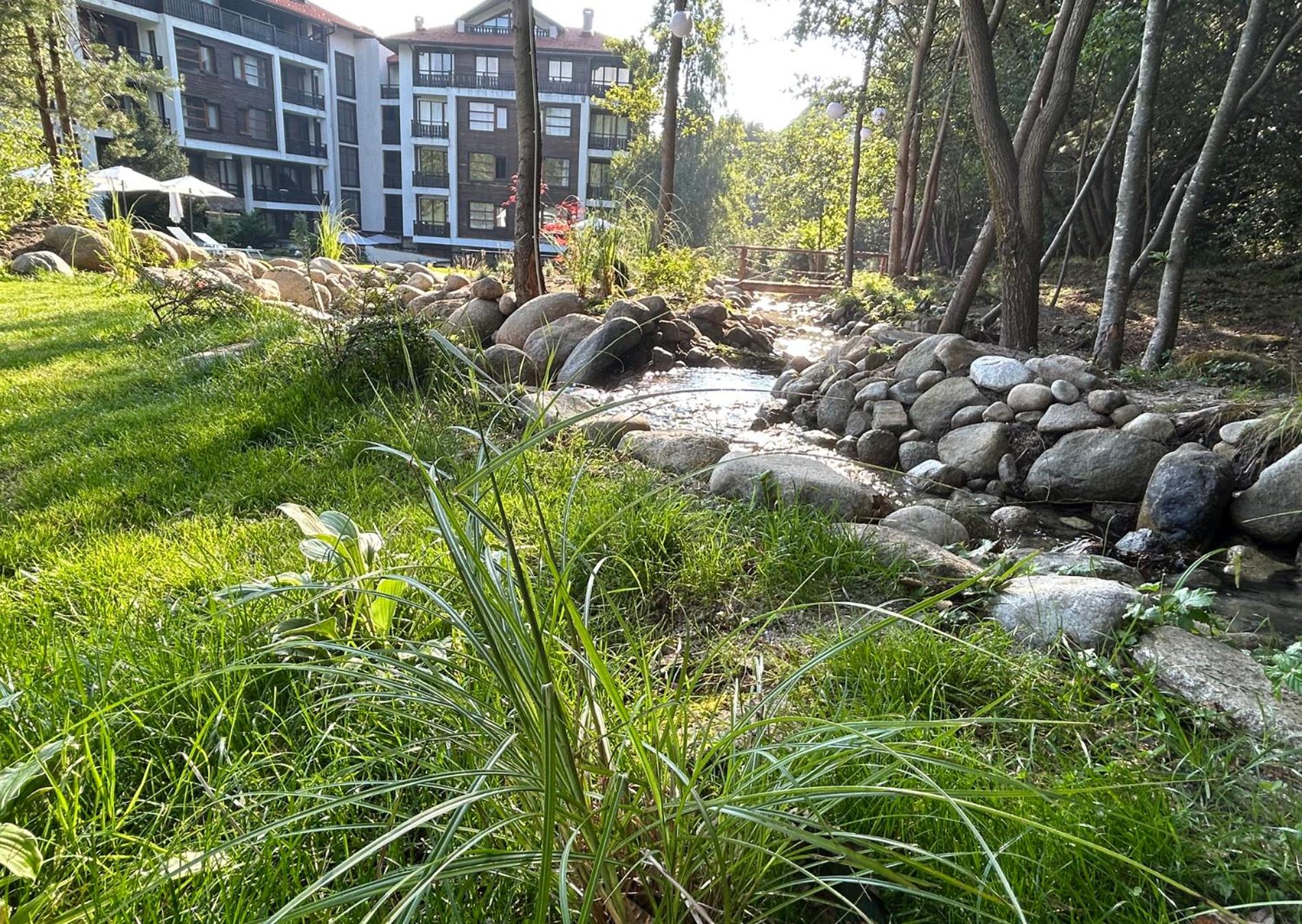Το δωματιο διαμερισμα με ιδιωτικο προκηπιο ηταν υπεροχο ακουγονταν το ρυακι