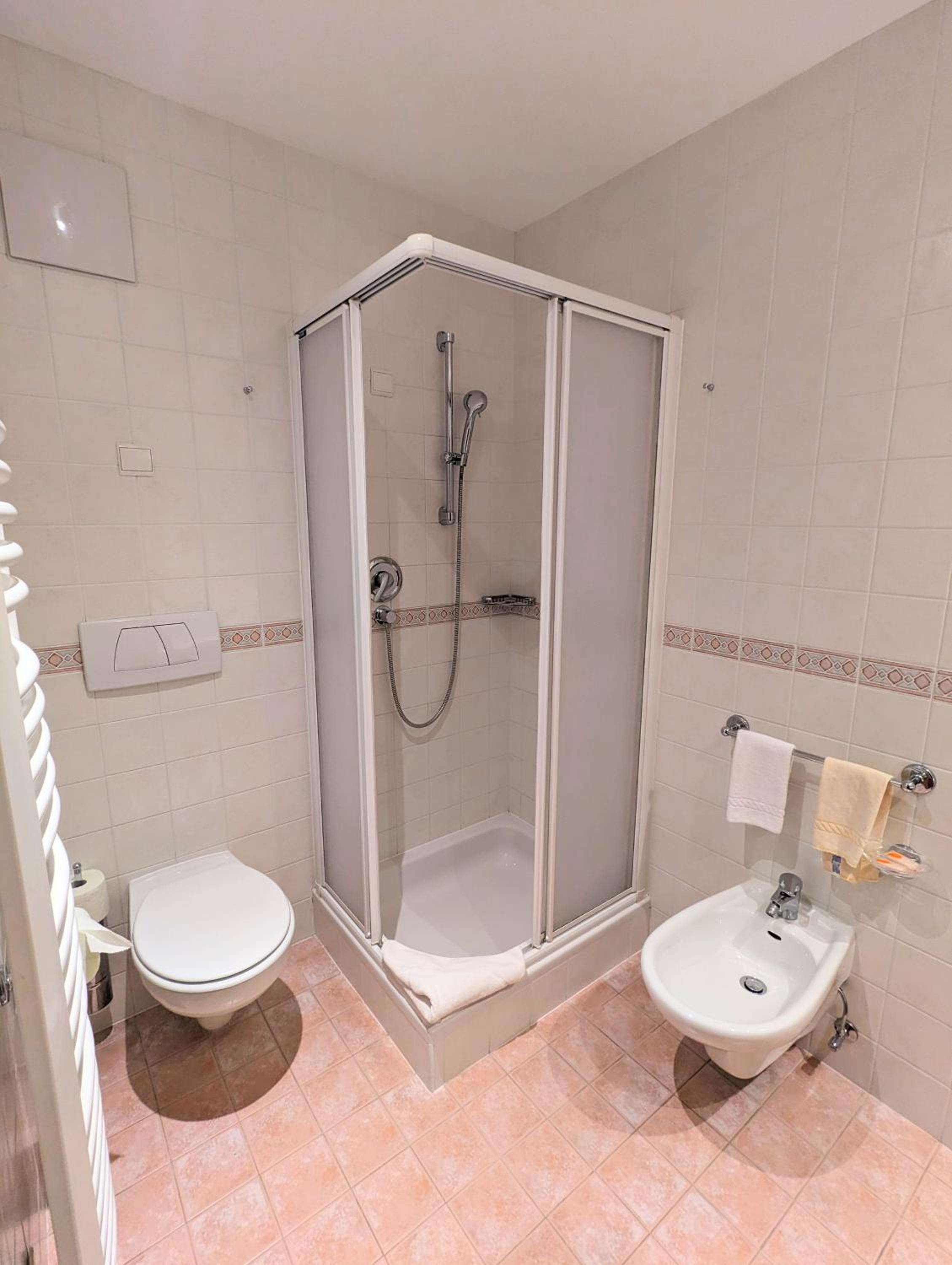 Stanza molto confortevole con ricavato un mini soggiorno e balcone. Bagno caldo e ampio, vano doccia grande, una vera goduria.