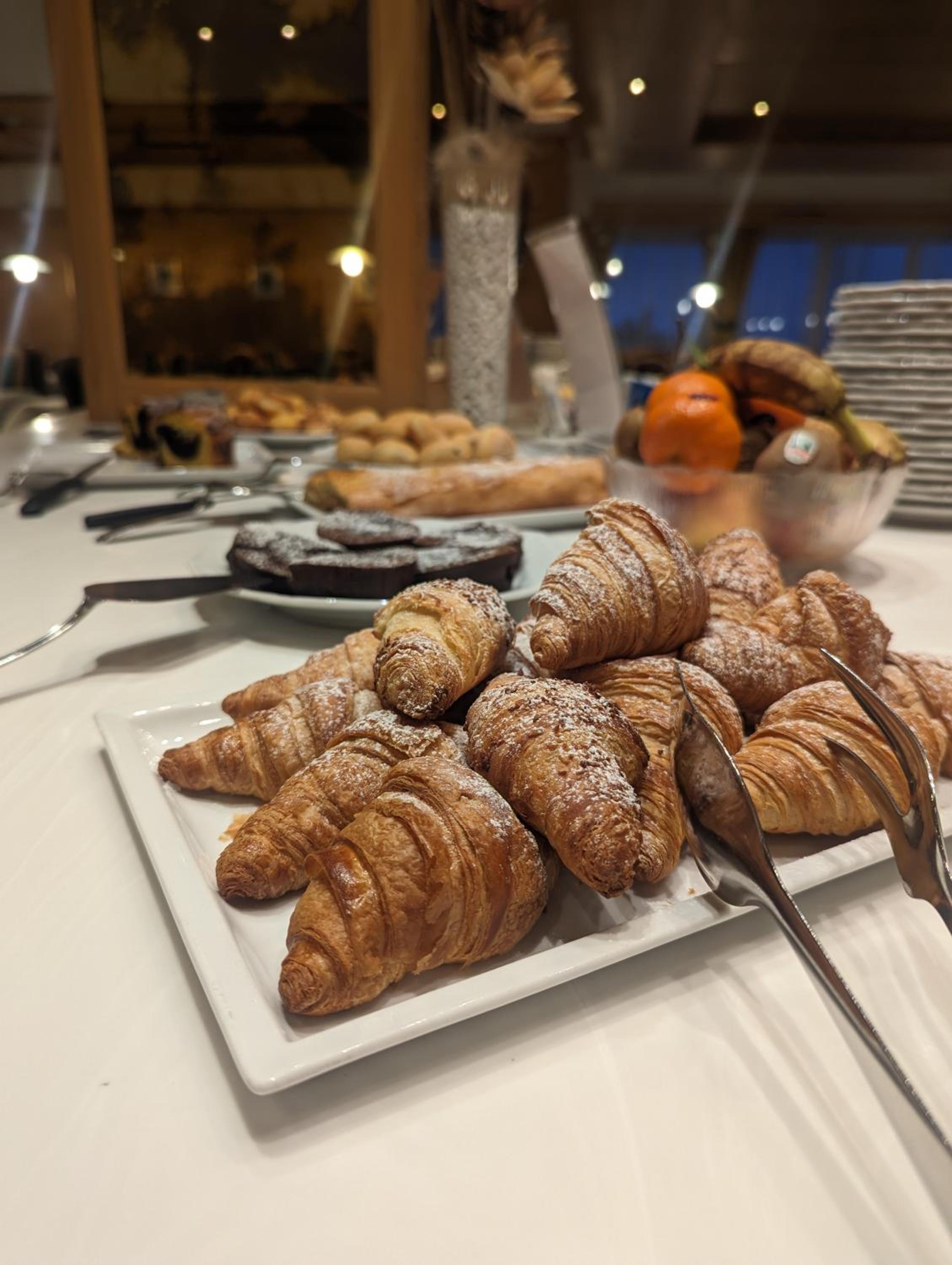 La camera assegnata era molto spaziosa e confortevole. La colazione, ricca e varia, includeva anche alcuni dolci tipici come la torta sacher e lo strudel.