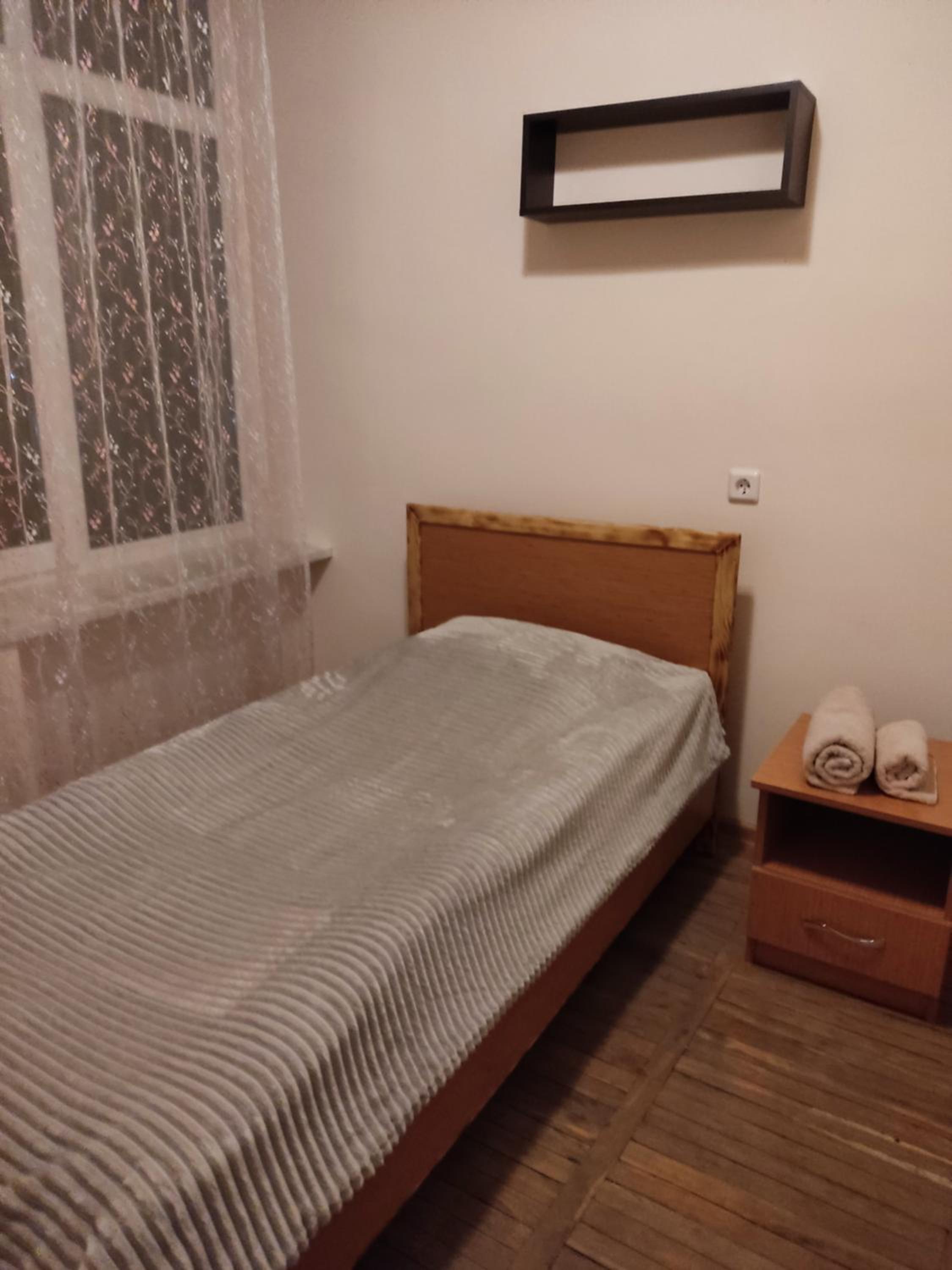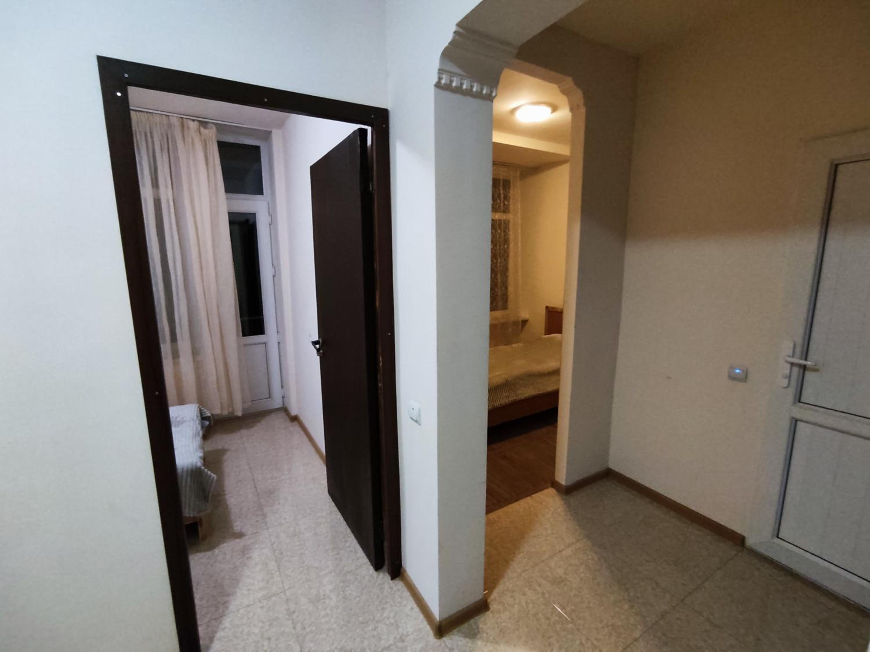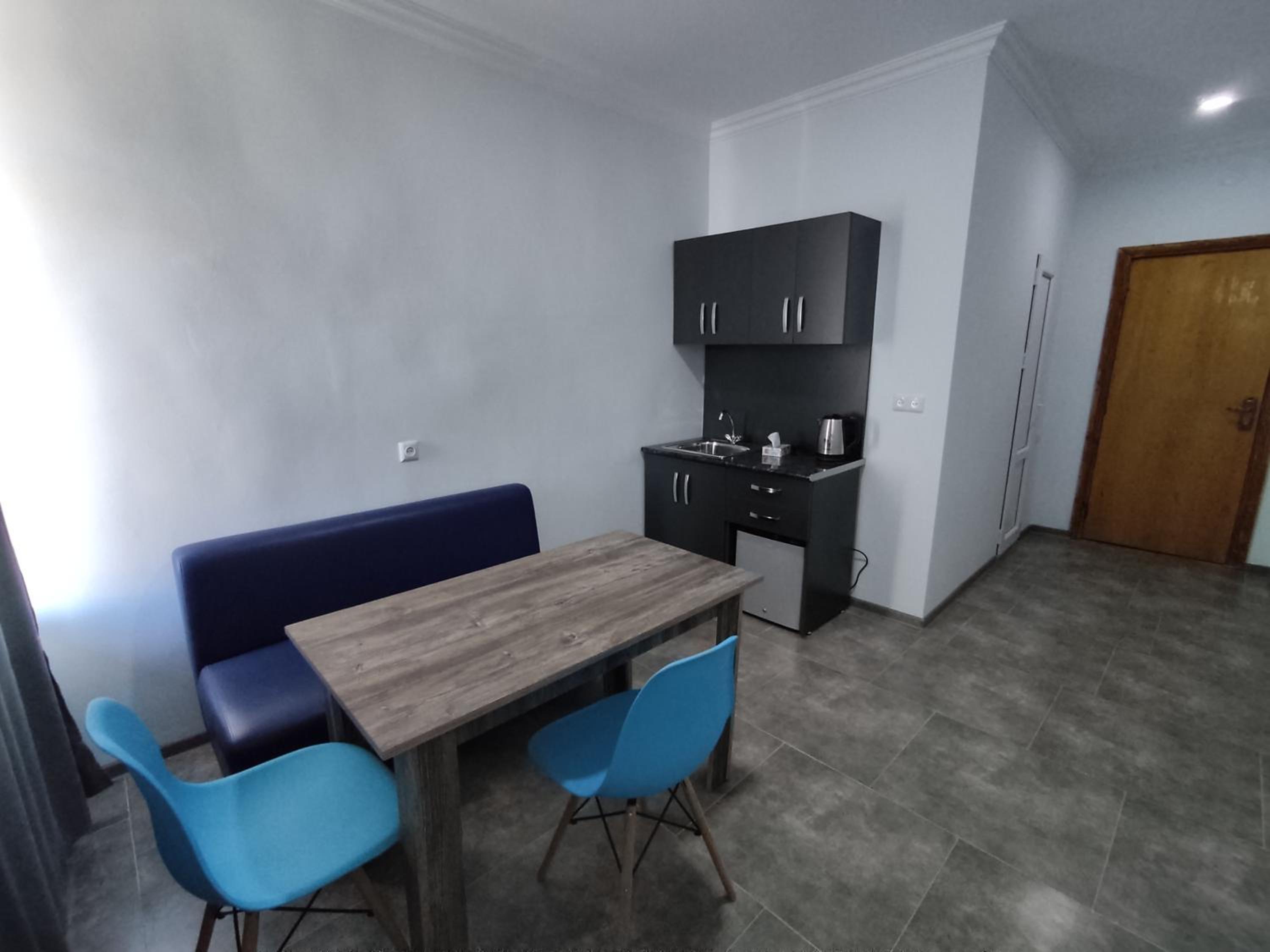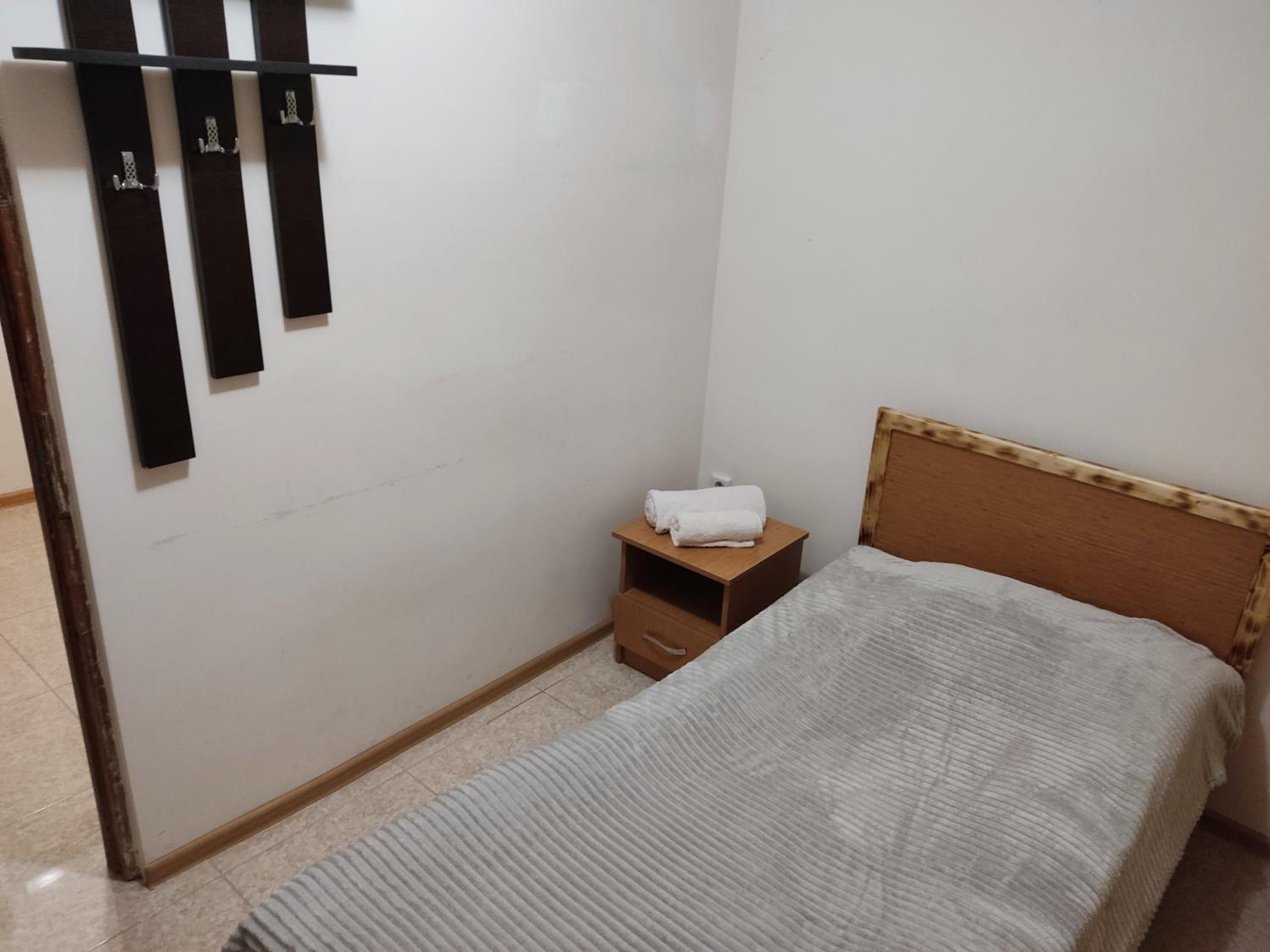 I stayed in an apartment with 2 single beds, a kitchen area (with kettle, sink, cutlery and refrigerator (no stove)) and private bathroom. There was access to 2 balconies, with views of Mount Arteni in the distance (great sunset).