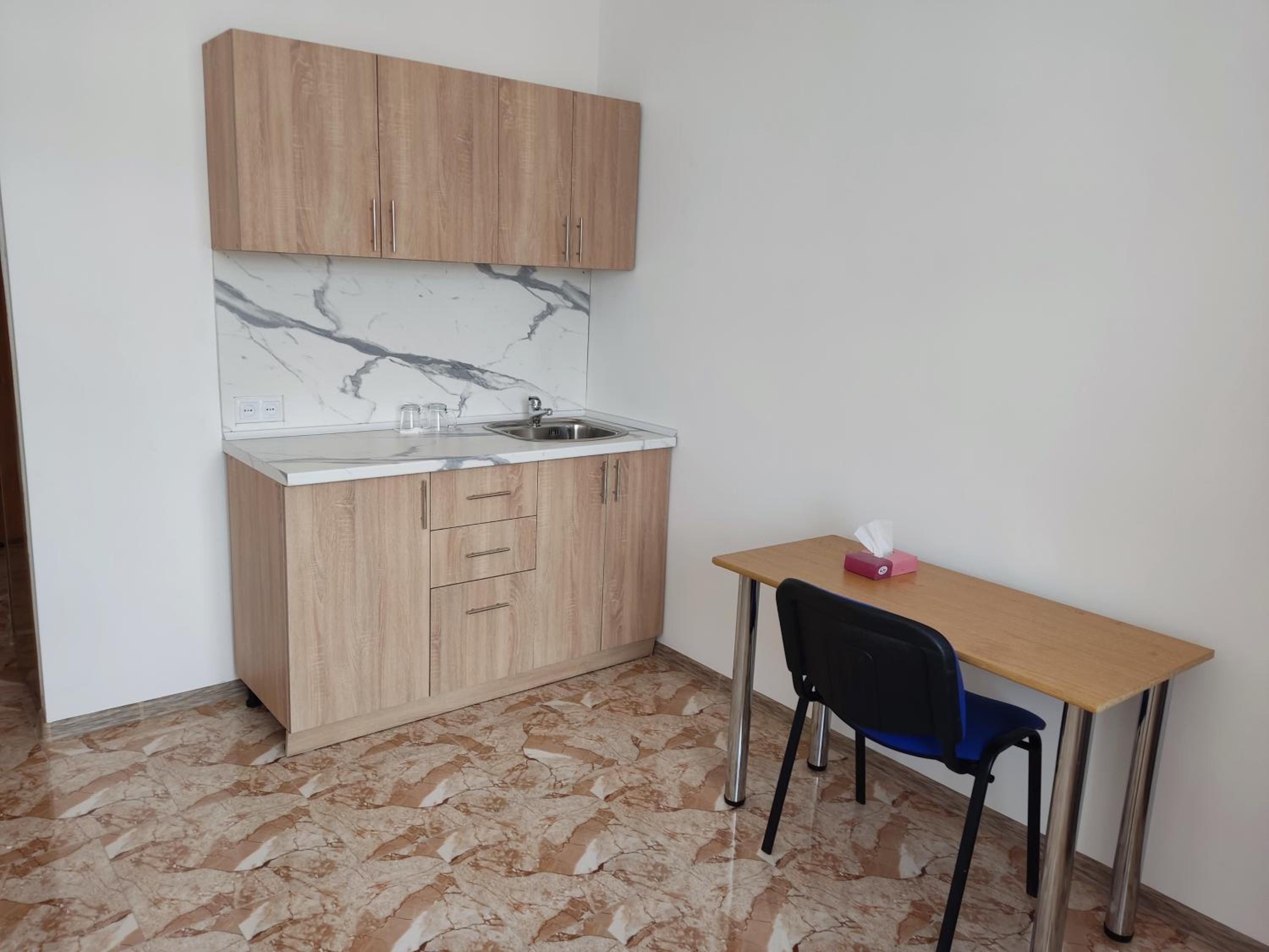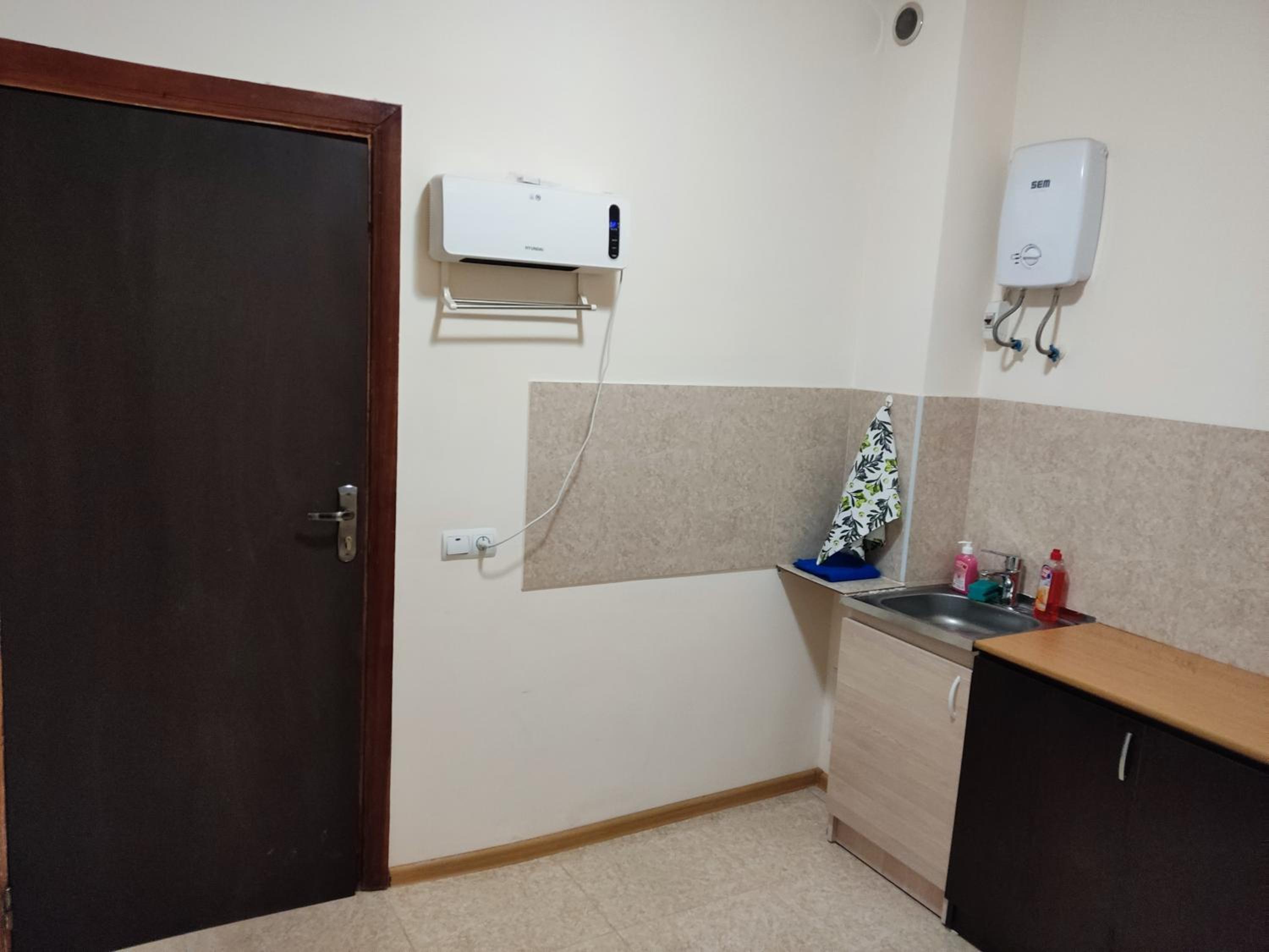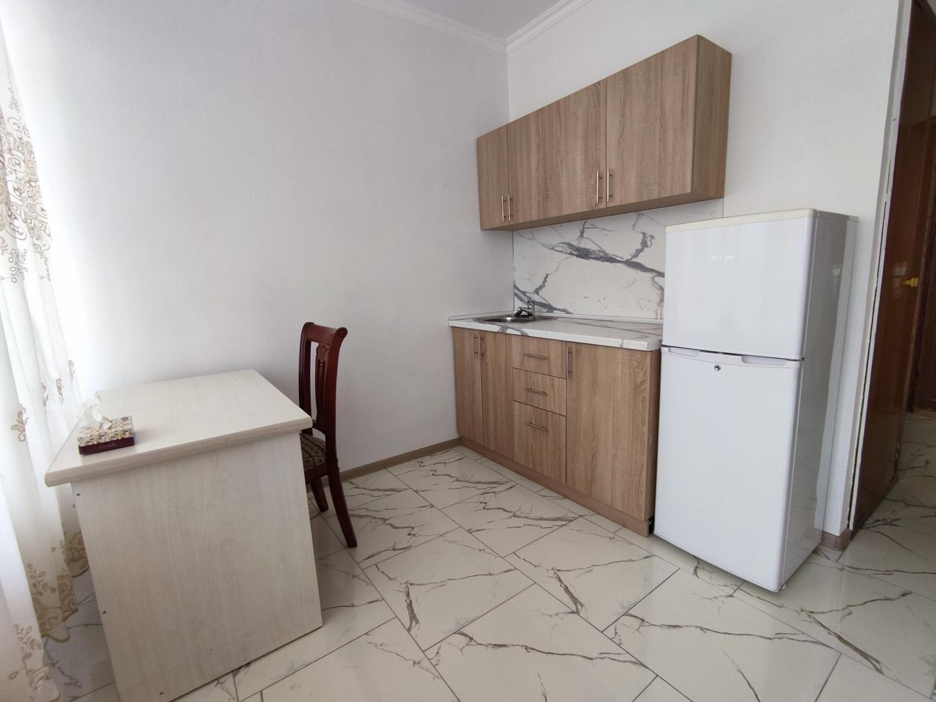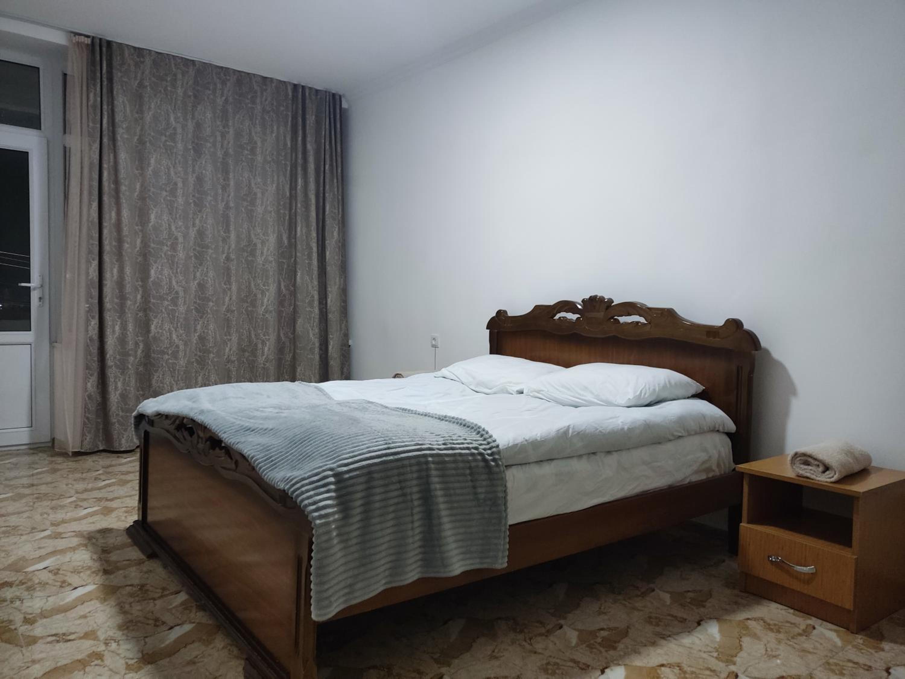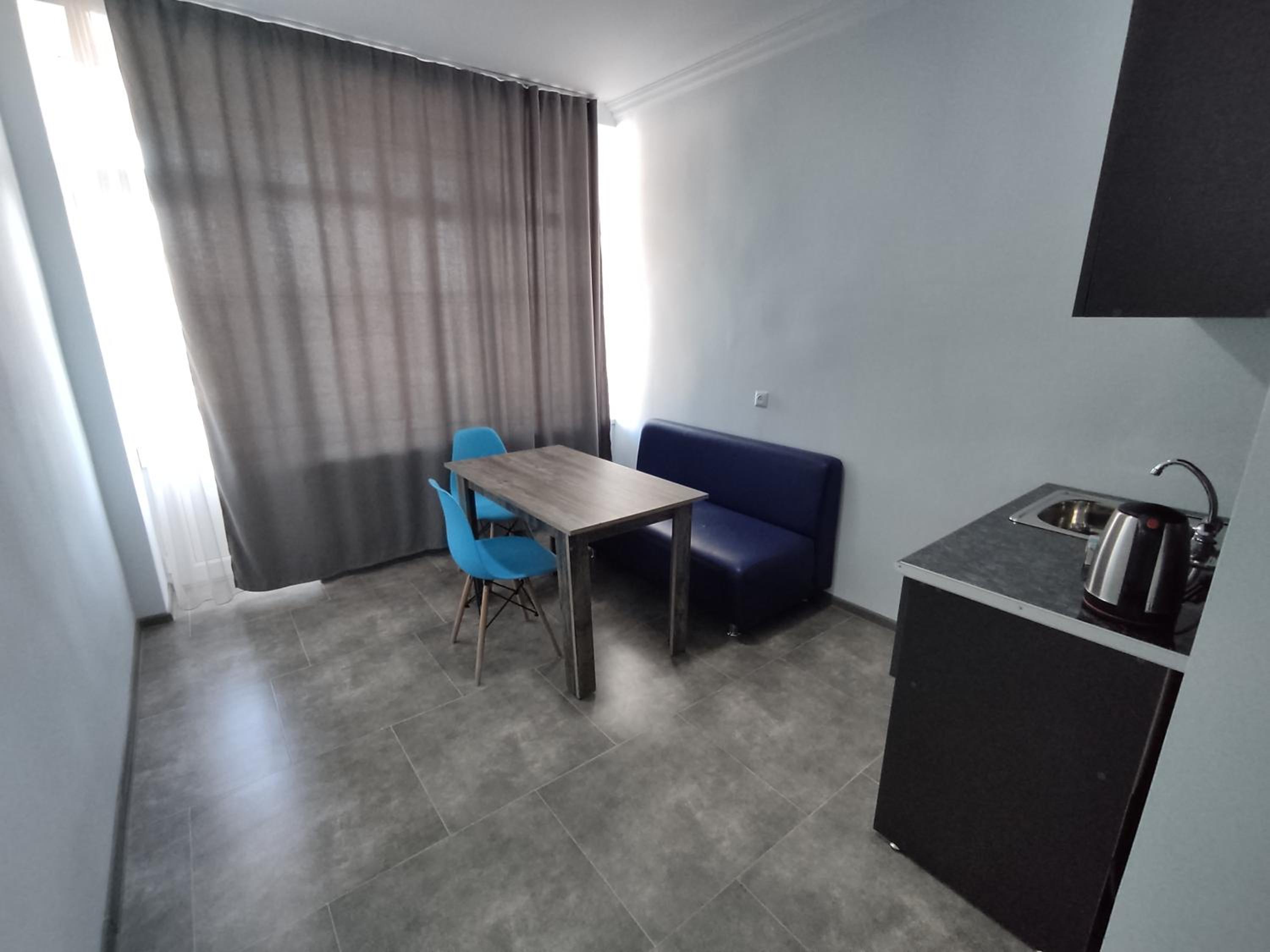 I stayed in an apartment with 2 single beds, a kitchen area (with kettle, sink, cutlery and refrigerator (no stove)) and private bathroom. There was access to 2 balconies, with views of Mount Arteni in the distance (great sunset).