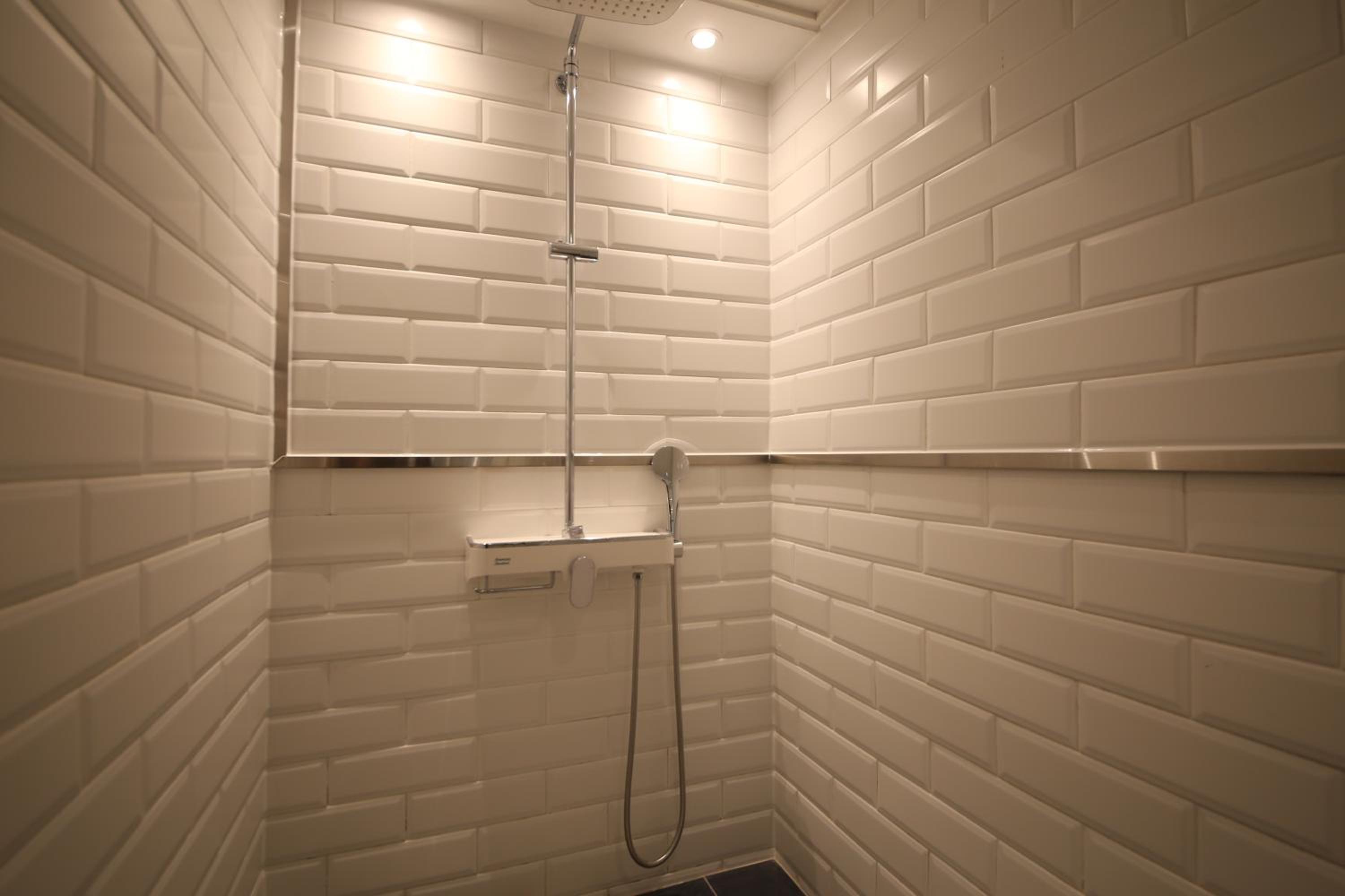 浴室門似乎有點故障,從裡面需要稍微用力壓一下才能完全關好,否則洗澡洗到一半可能會突然打開;而從外面則無法完全關上。