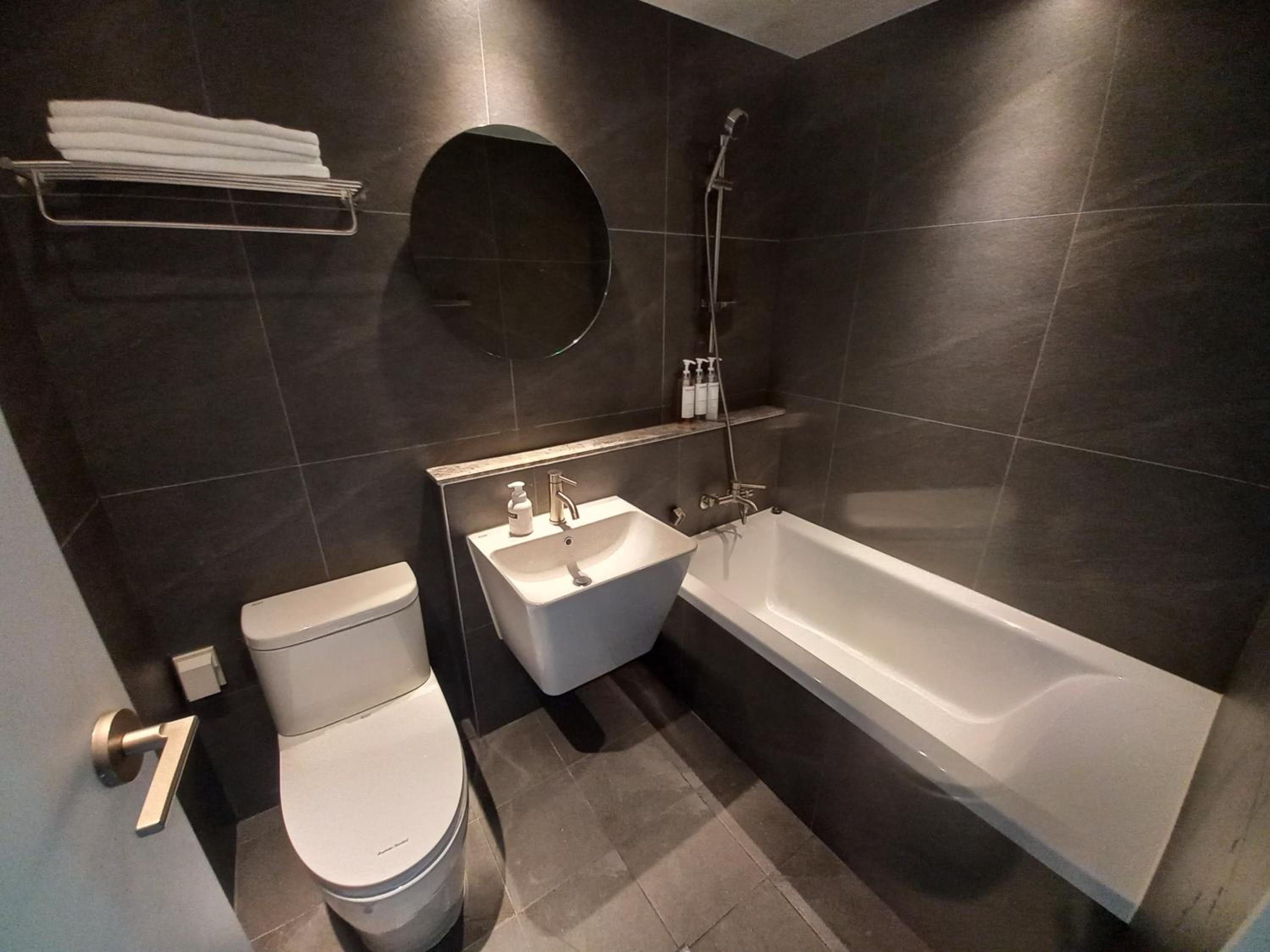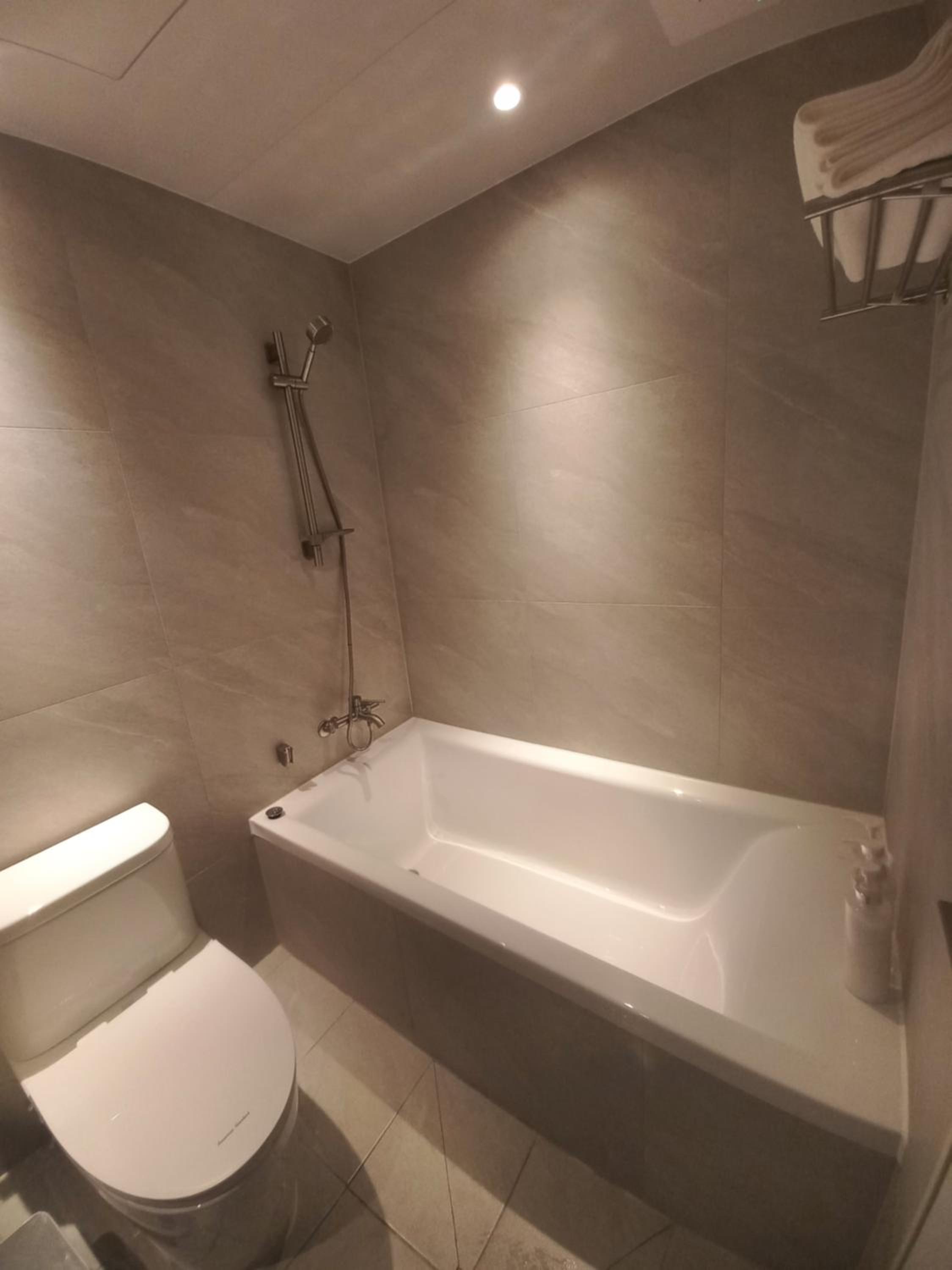 The bathtub and bed were comfortable. Convenience store was nearby.