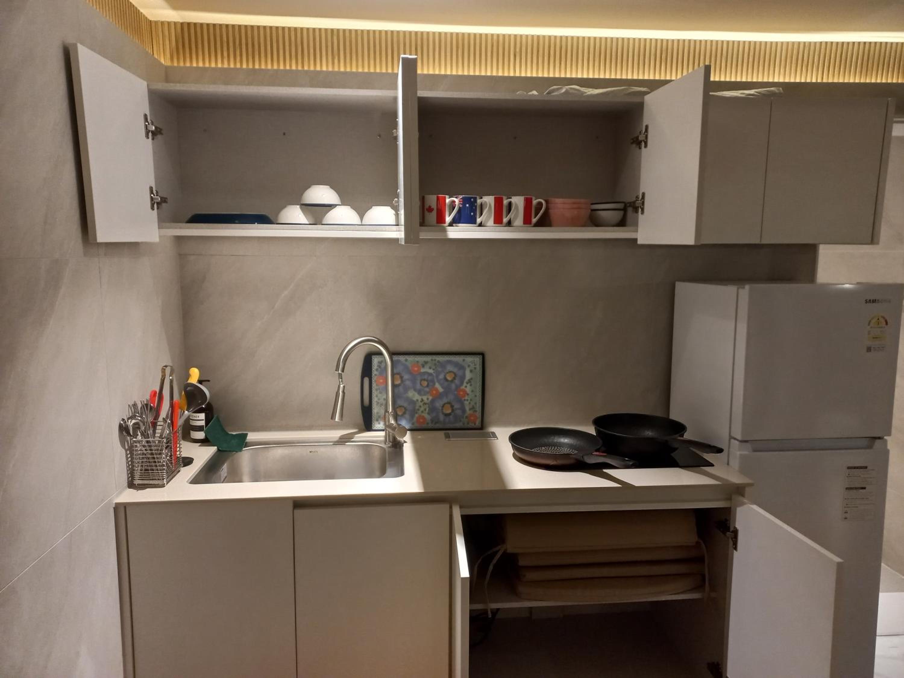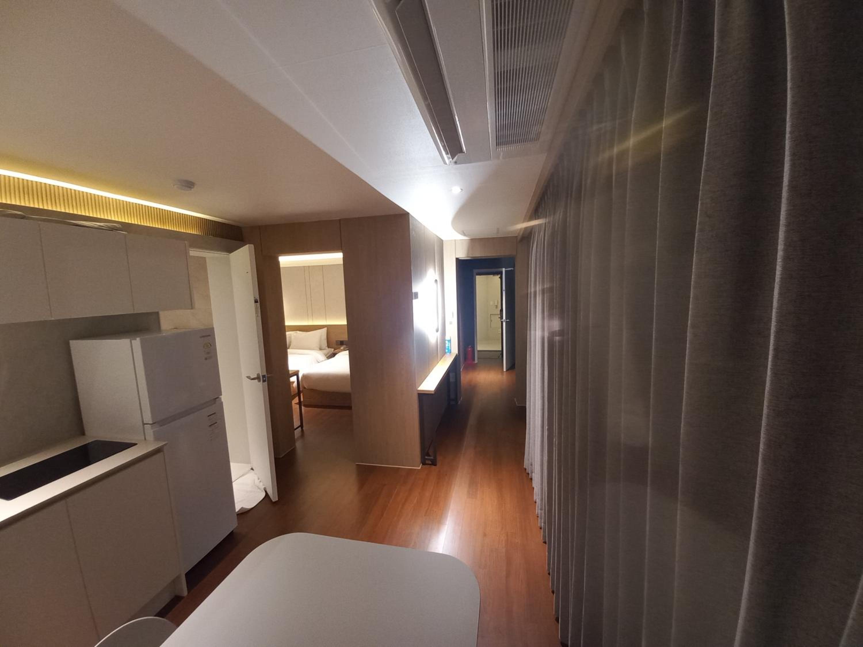 There was no daily housekeeping. We had to use the same towels for the entire stay. We didn't have enough toilet paper, so we had to ask for more at the desk every time. The self-service station with water and milk ran out early in the morning with no restocking until the next day.