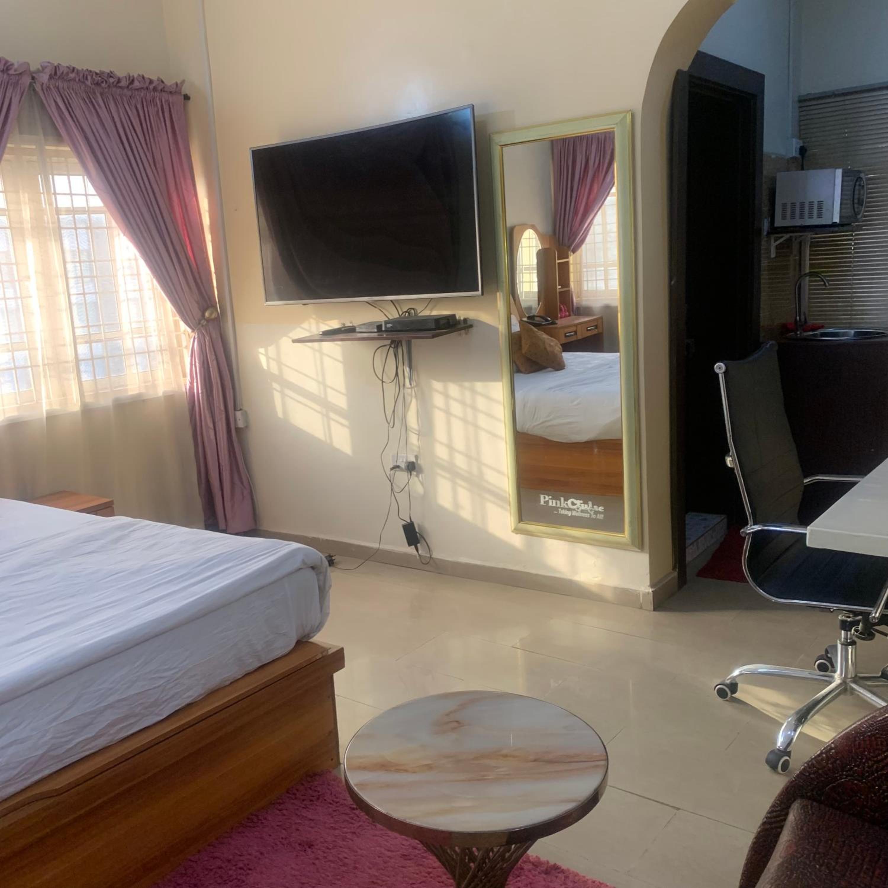 I don't like the deceit on this App in terms of room prices for the apartments, what I was charged at the place is different from what is posted as charges/prices. Please, the management should stick to their prices on the App and stop following dollar fluctuation as a determining factor to influence room prices, this will avoid people thinking you are scamming them with different price rates. The rooms sockets should be fix, I had to remove TV set wire plug to charge my phone, because the sockets in the room I booked were not working, only the standing fan and TV sockets were working.