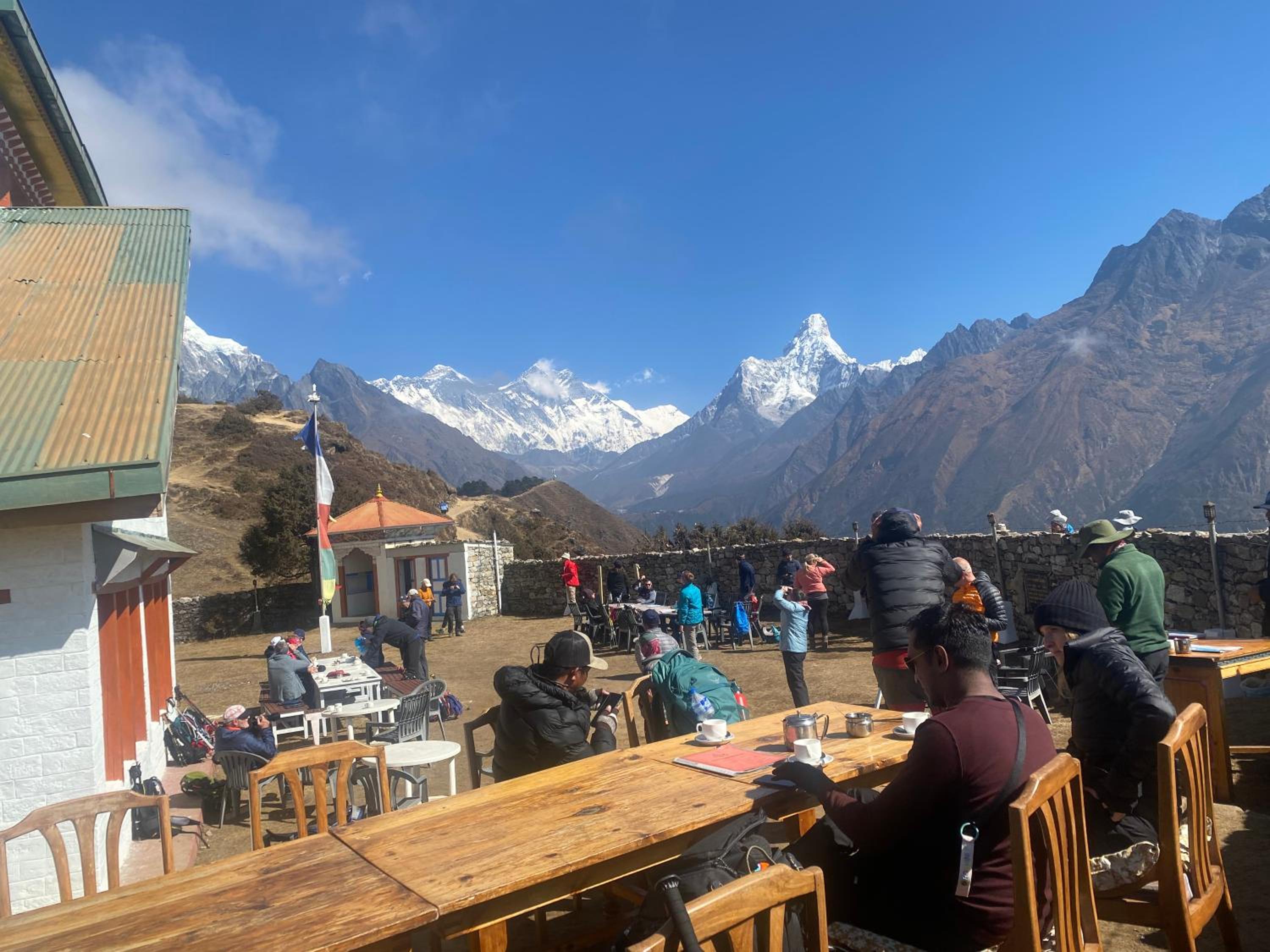 This is a wonderfully comfortable hotel set in the most awe inspiring location surrounded by snow capped mountains including Everest, Ama Dabla, Lhotse and more! Eagles soar overhead and wonderful day walks to be had if you want to take it easy or push yourself. Great yoga and meditation classes. Delicious fresh meals and great coffee with roasted Nepalese beans and an expresso machine. Pemba and his staff are very kind and able to solve any problems that might arise including health issues, helicopters and liasing with other hotels and guides if plans need to change. Located about an hour and a half from Namche Bazaar on the same trail you take to visit Everest View Hotel you will climb a steep mountainside and be rewarded by your first glimpses of Everest and the most spectacular mountain views. A great affordable place to stop …I stayed for 7 days and just loved it!! Great if you want to spend time ‘being’ in the mountains rather than ‘doing’ the mountains.