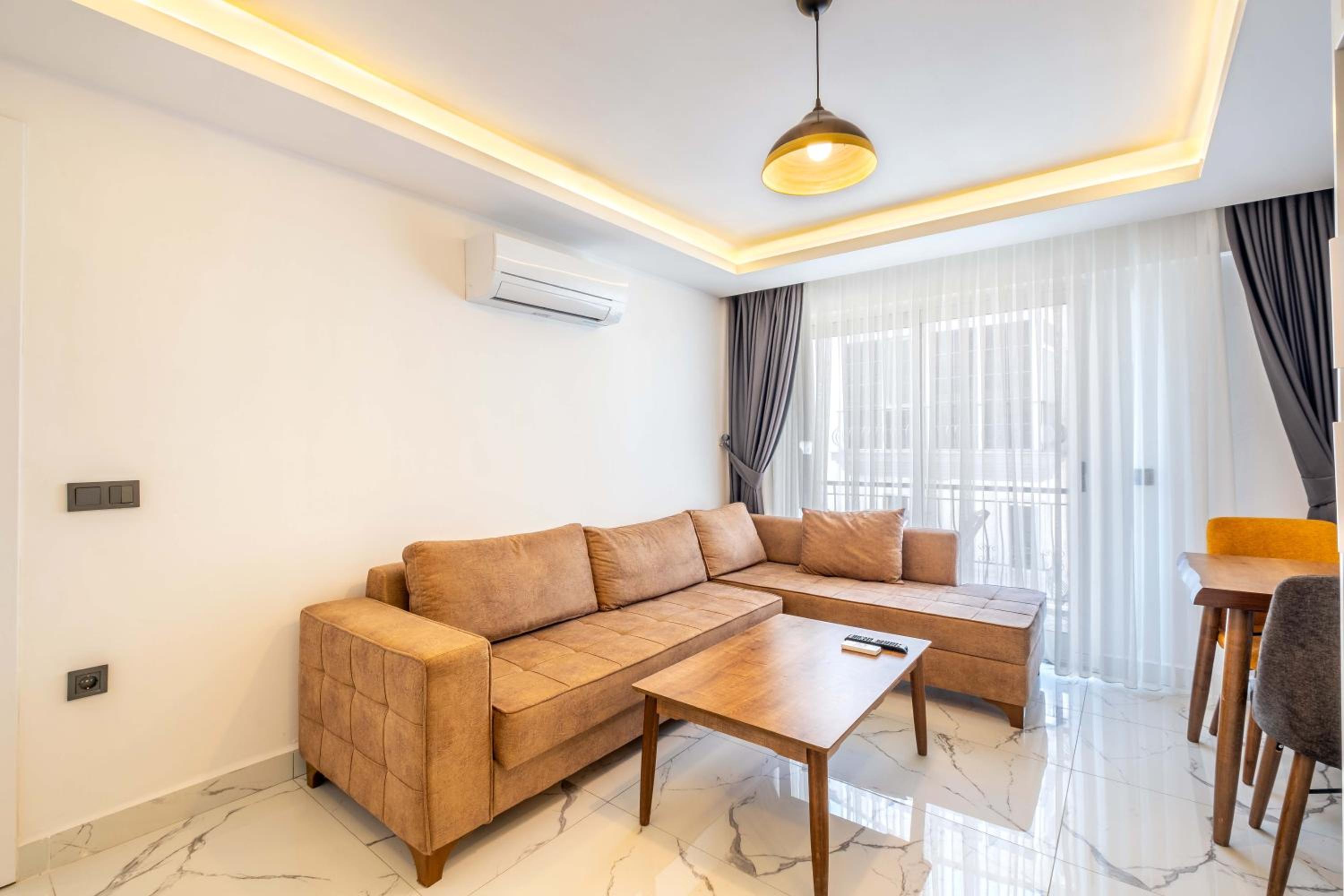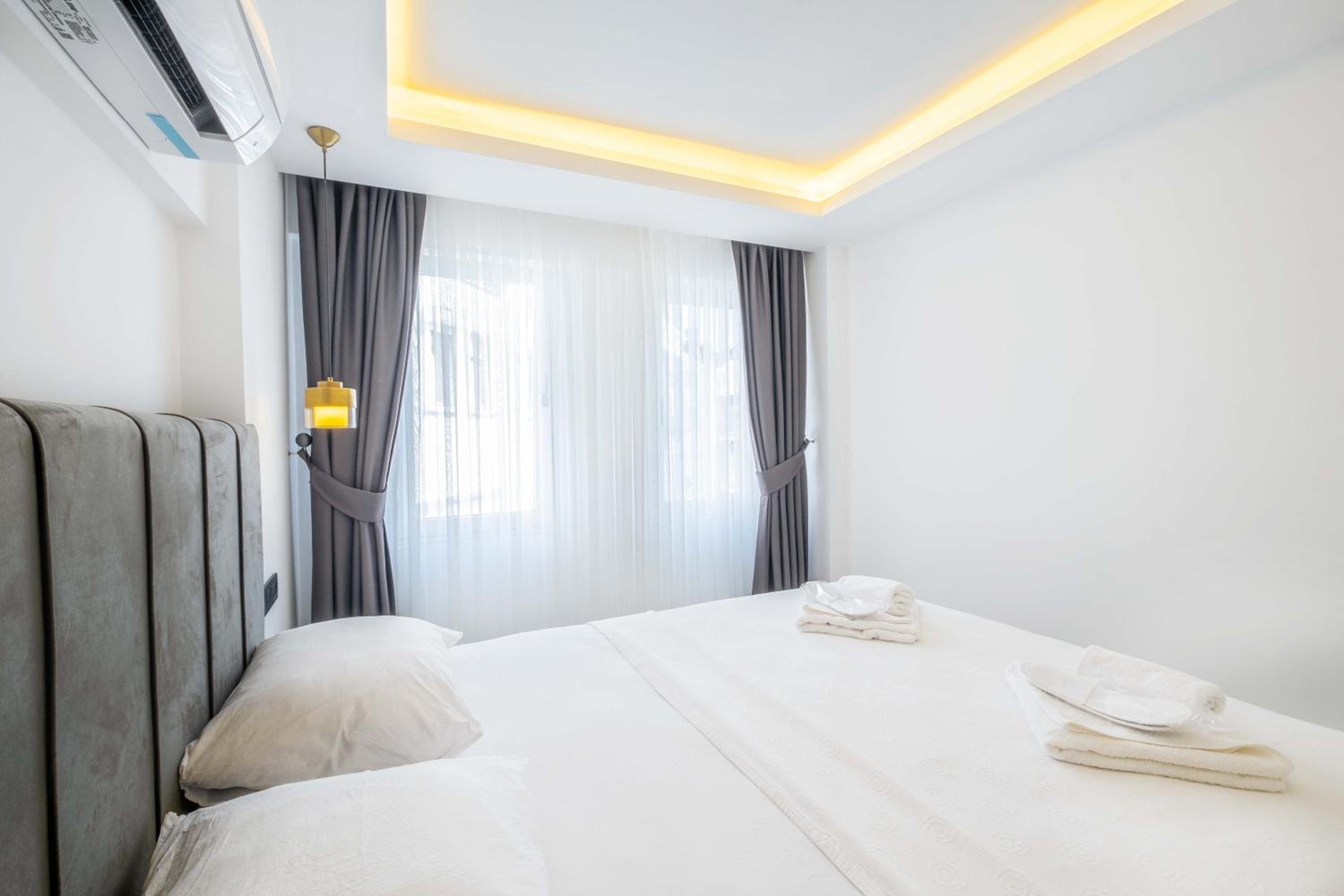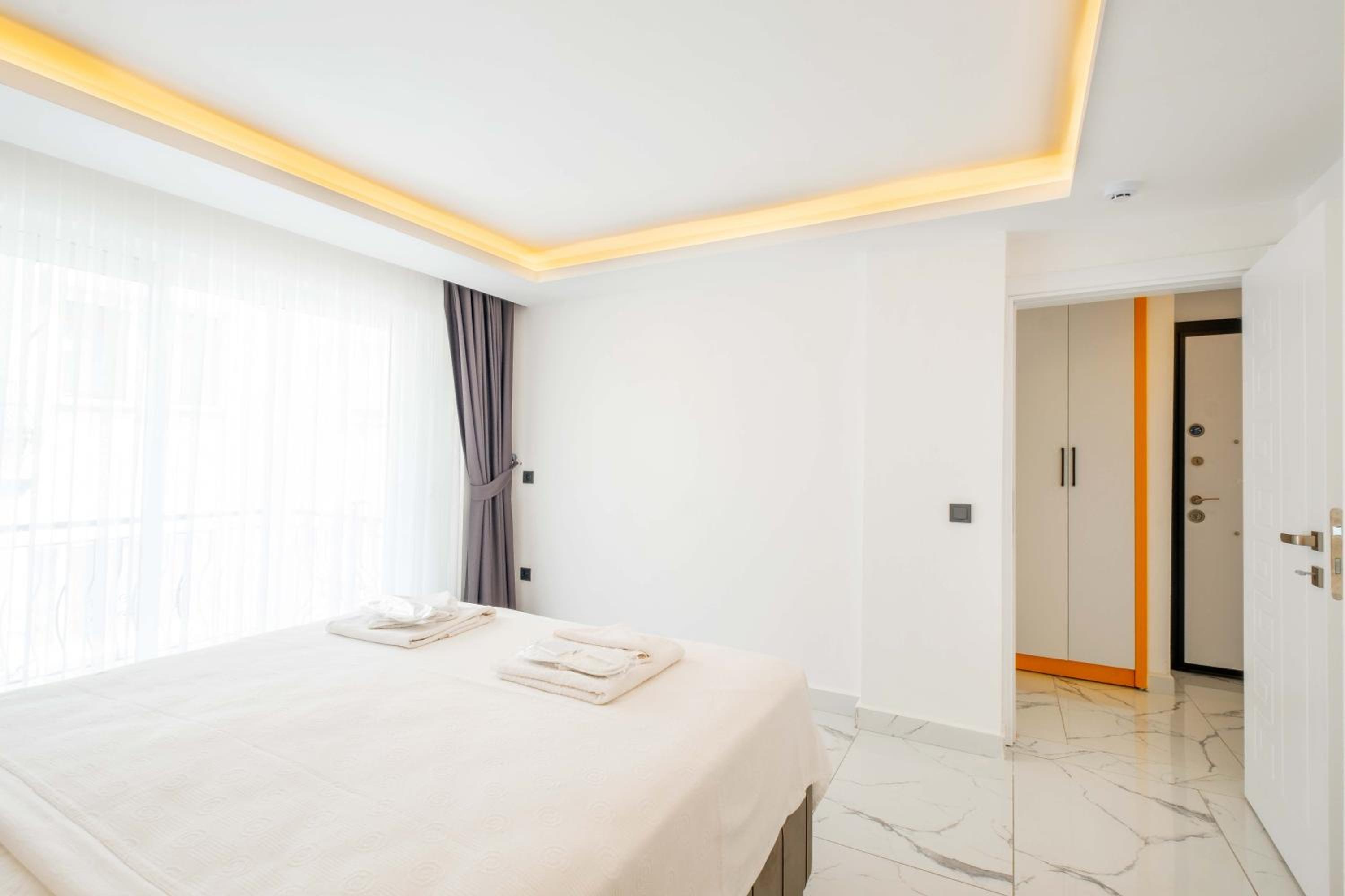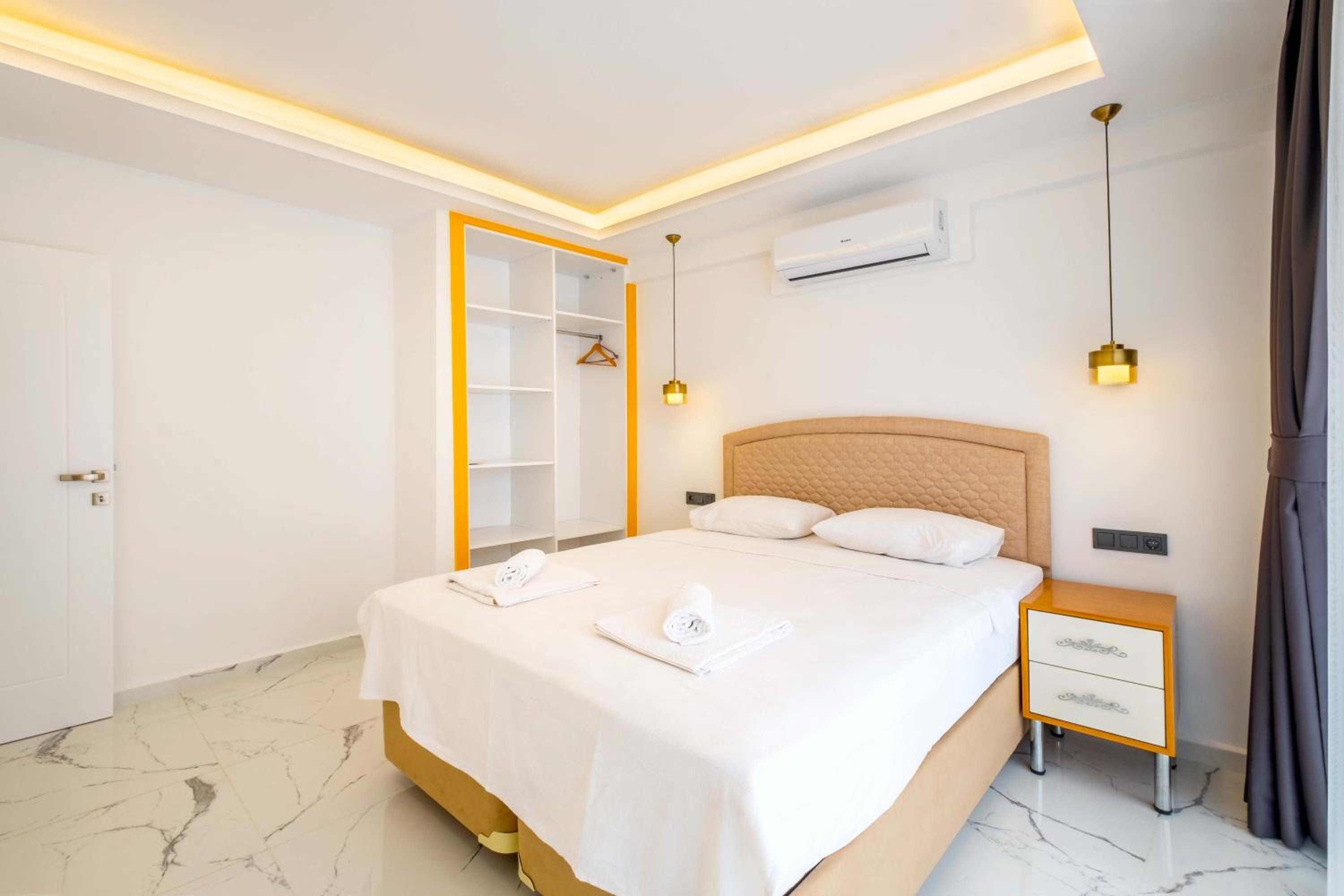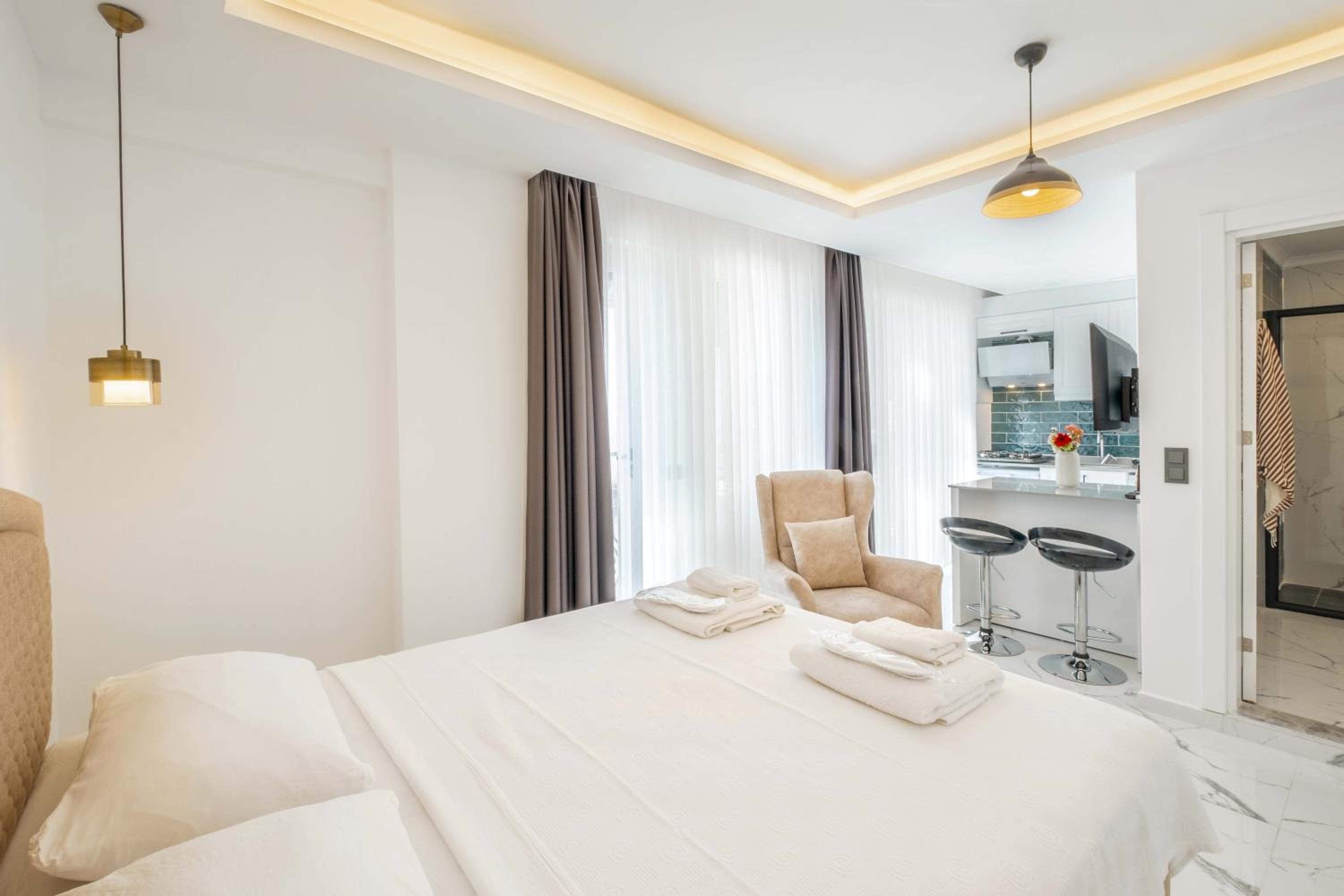Мы заселялись в районе 01.00 ночи. Нас заселили без проблем. Хозяин нам даже отправил видео,как пройти к нашему номеру. Аппартаменты очень чистые и уютные. Есть чайник, плита, вся необходимая посуда, стиральная машина, утюг. Был стиральный порошок и средство для мытья посуды, губки и т.д. В холодильнике вода на первое время. Мы жили на первом этаже. Был выход на улицу, со столиком и стульями.там красиво, растут лимоны и бананы. Сушилка для белья. До маленького пляжа недалеко, метров 300-400. Там можно покупаться. Обратно надо идти в гору(как и везде в Каше), но не очень крутую. До центра 5 мин. пешком. В пешей доступности супермаркет "Muhtar". Там есть все необходимое. Пляж "Халк" где-то в 2-х километрах. До него можно доехать с малого автовокзала на маршрутке. Ходят каждые 30мин, но это не точно). Выезд до 11.00. Но багаж можно оставить на ресепшене и пойти купаться и гулять, если трансфер у вас позже. Персонал приветливый и доброжелательный. Все улыбаются. По соотношению цена/качество аппартаменты на 10.
