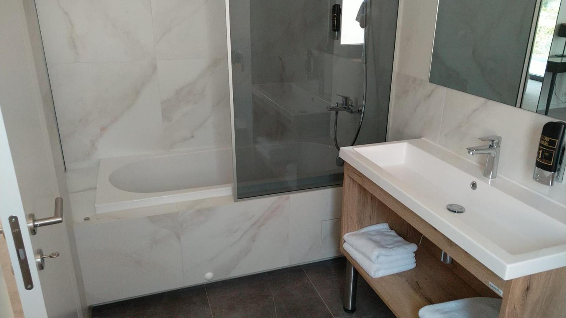 Charming, quiet hotel with a lovely garden and a small pool near the Split airport. They let us check in early as I was not feeling well and I collapsed into the comfortable king bed while my husband worked on the porch attached to the room. Very grateful for the large, modern bathroom with the heated floor, too!