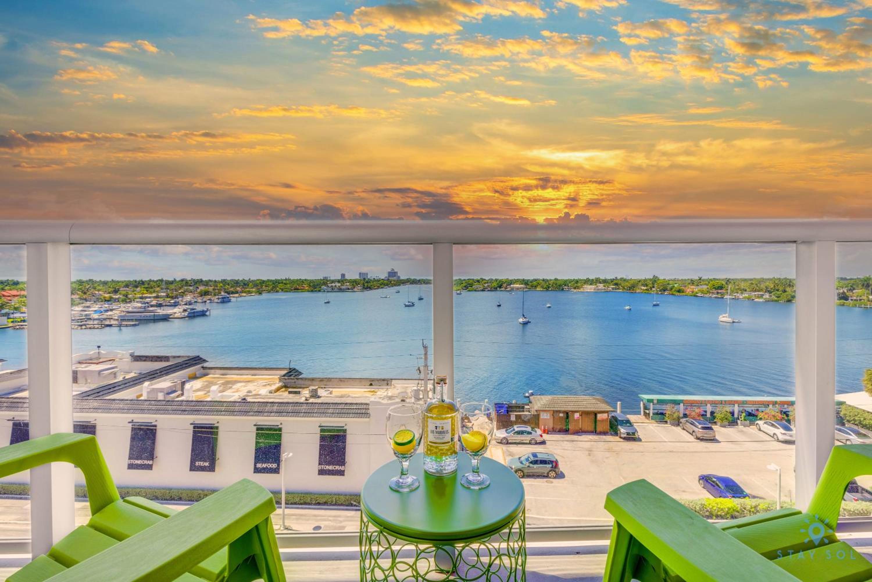 La vue sur le canal offre un magnifique couché du soleil.