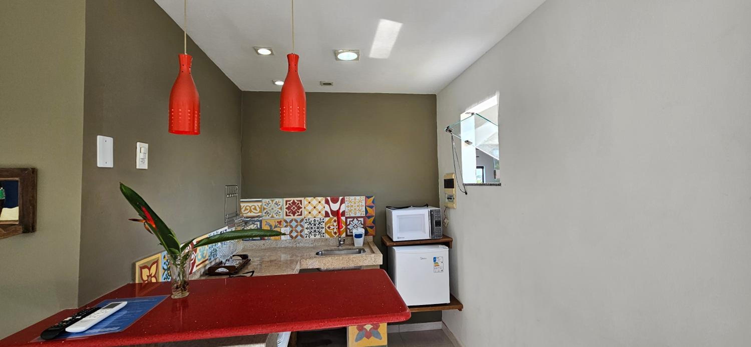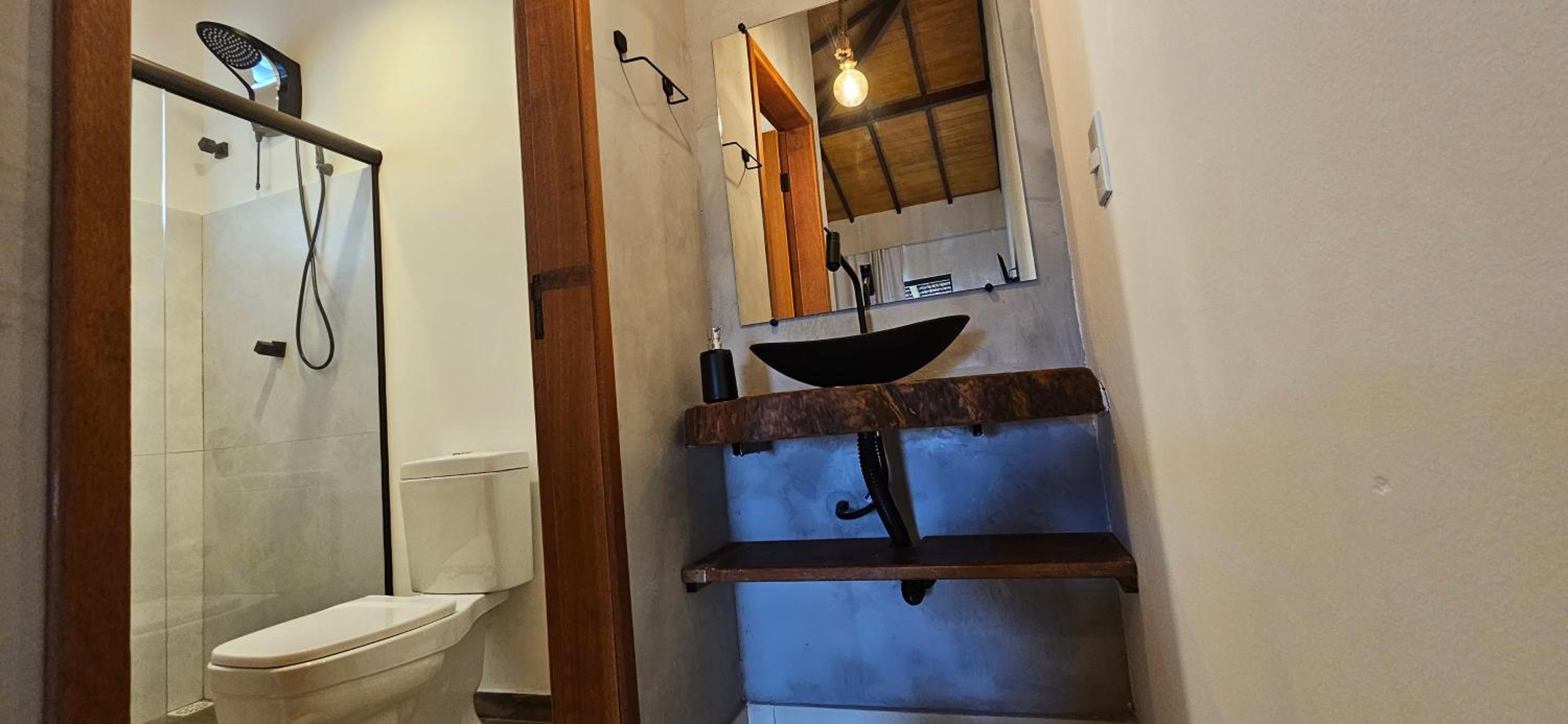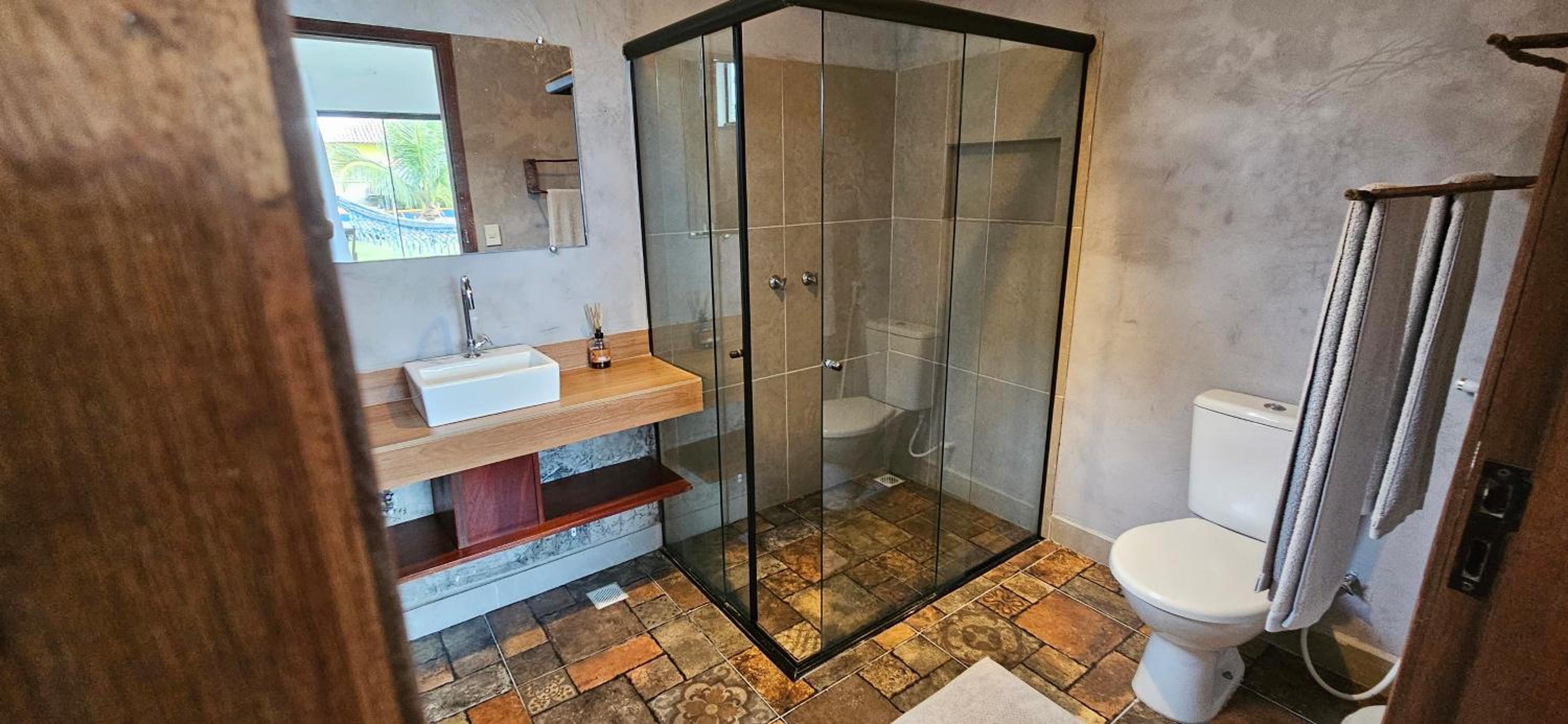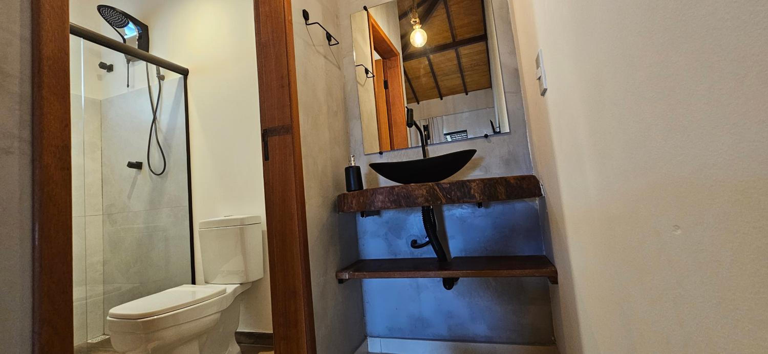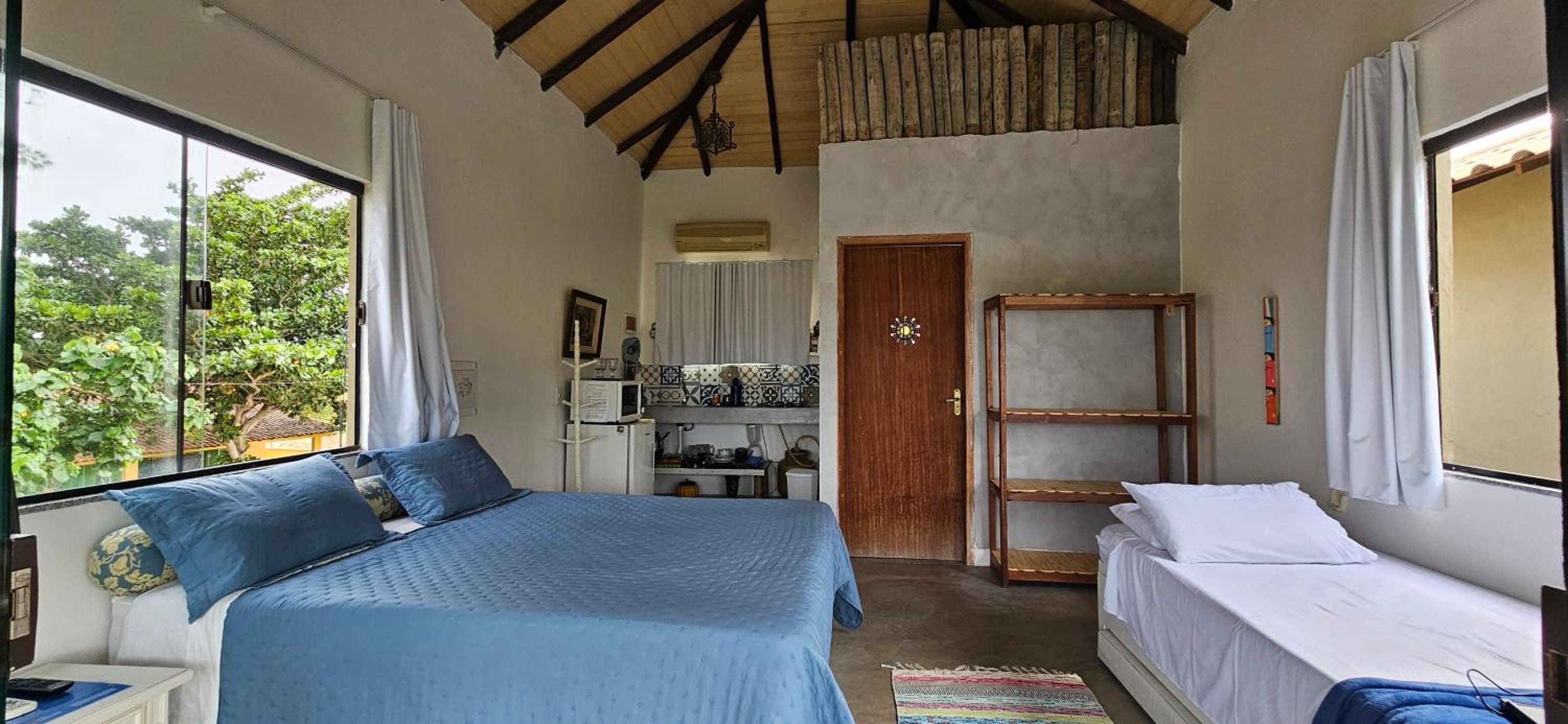 Quarto bem equipado, extremamente aconchegante, muito limpo, ar condicionado muito bom. Banheiro com chuveiro elétrico com bom volume de agua e excelente ajuste de temperatura. Pousada com clima de vila a 2 minutos da praia (da lagoa) e com muita segurança.