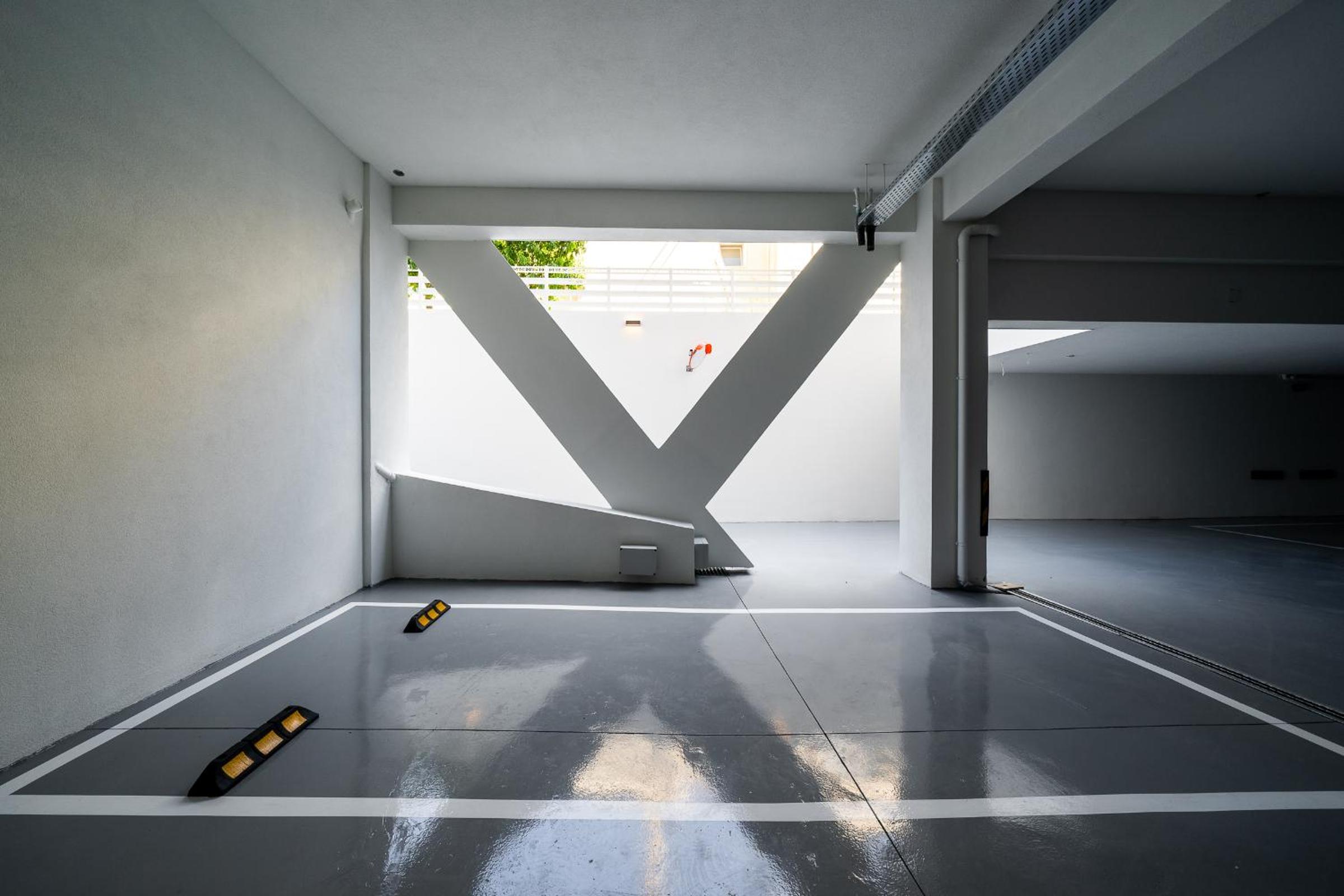 Entrance of the indoor garage is too narrow for larger cars.