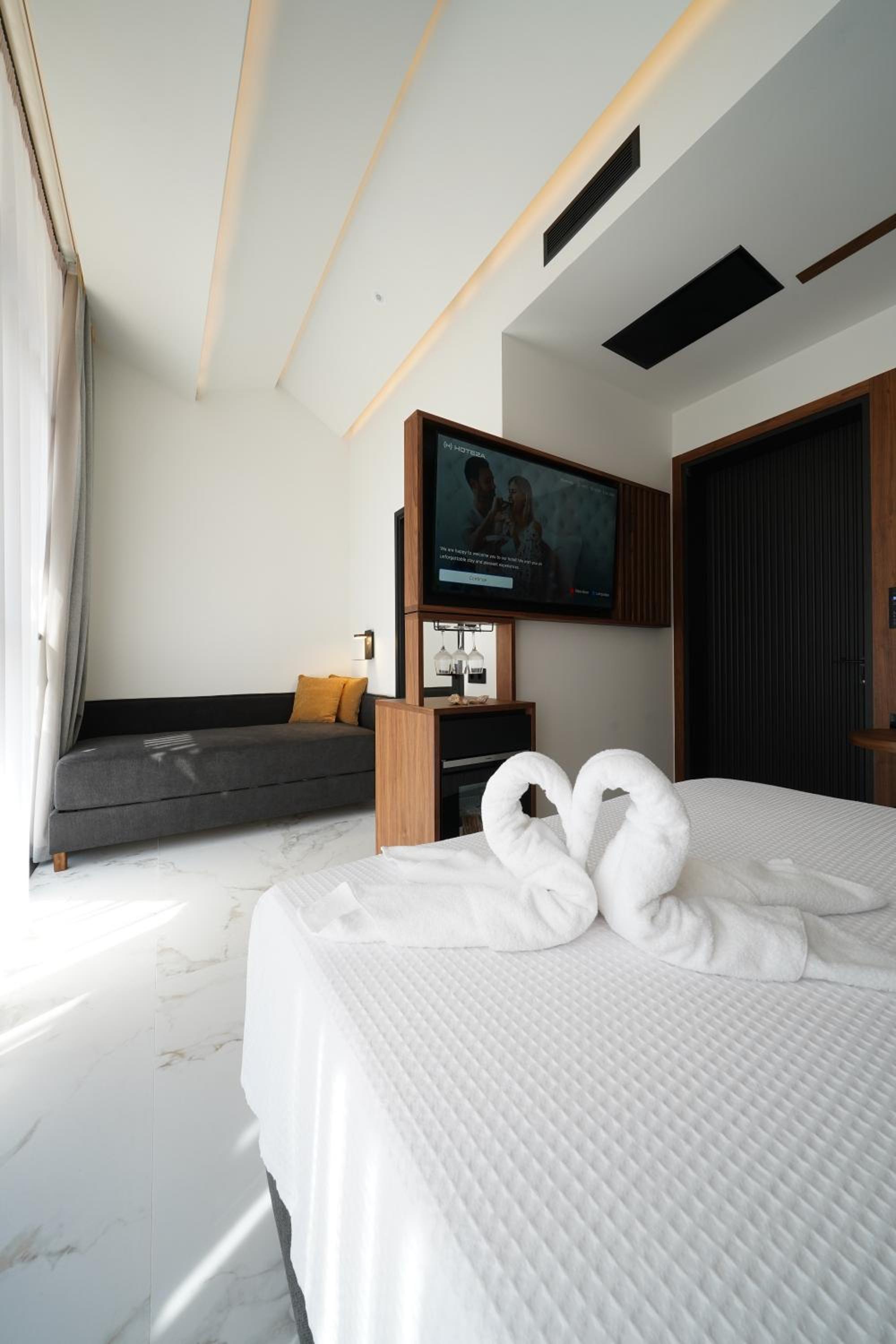 Luxurious Accommodation: Experience comfort and style in our air-conditioned rooms with modern amenities. Enjoy a flat-screen TV and private bathroom in each room.