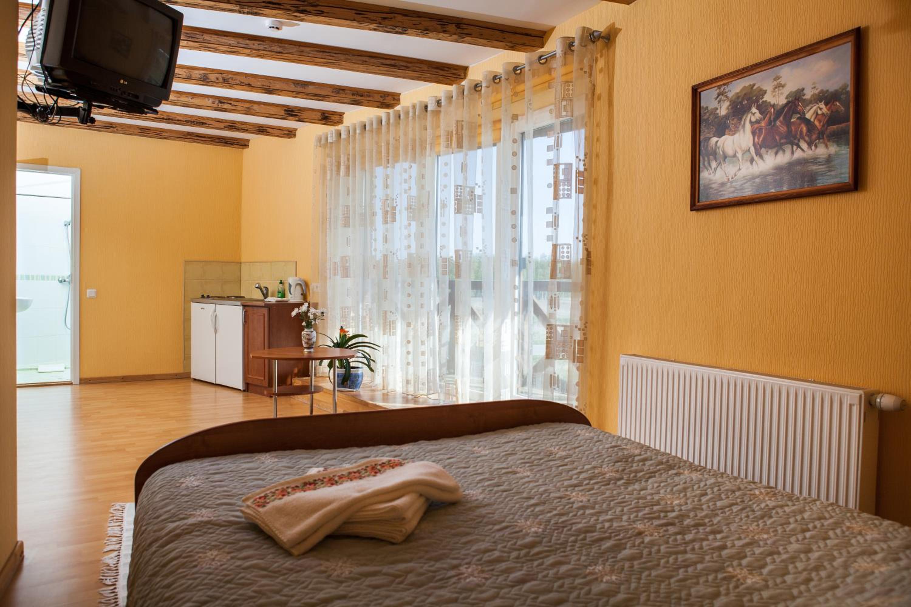 The kitchenette was a bit too small for us, there was just an electric stove (2 lids) and a kettle, a microwave would of be great help. Also, there were only 2 chairs in the room, luckily for us the weather was excellent so we ate outside at the pergola.