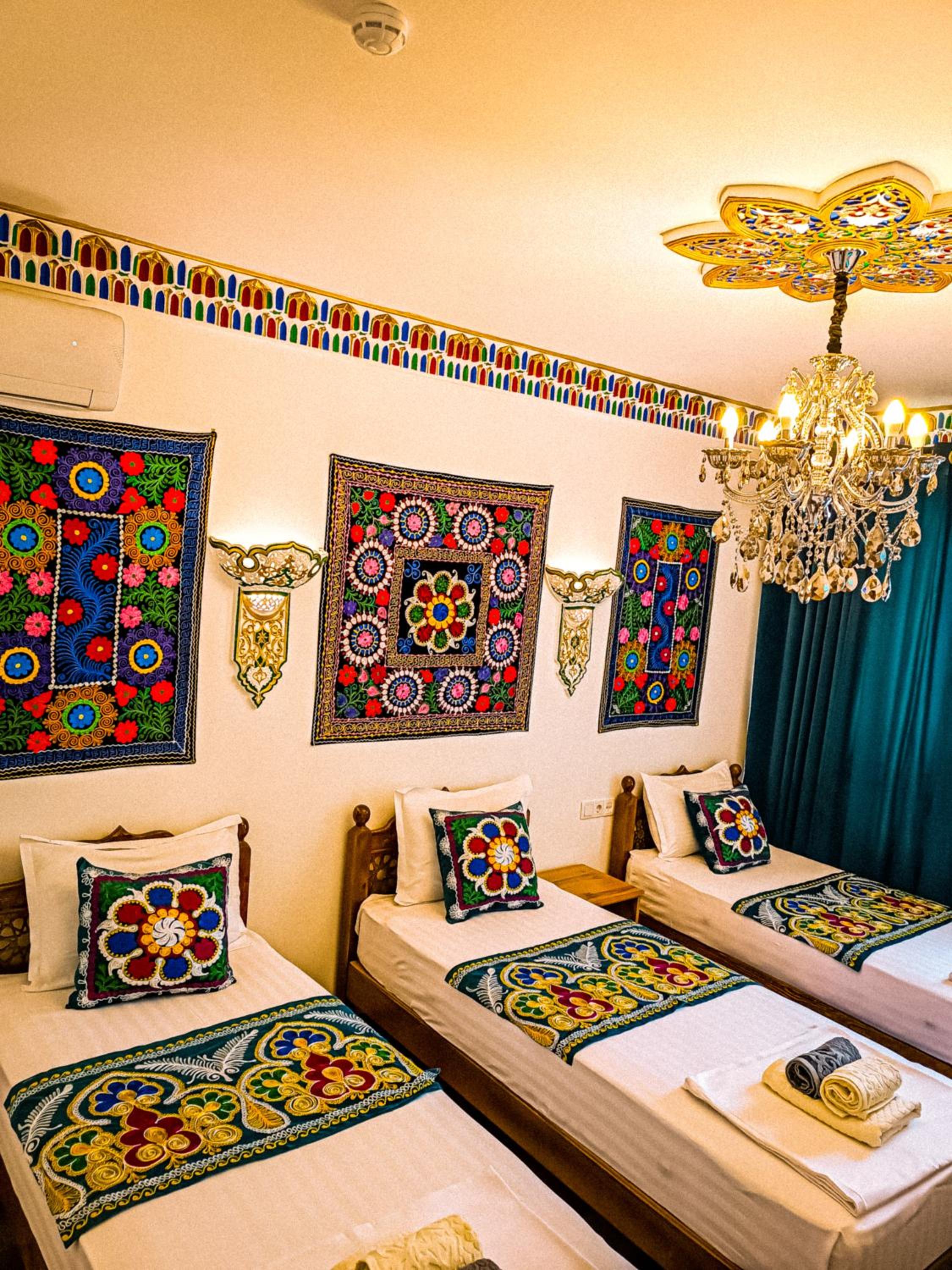 Лучший отель за всё наше путешествие по Узбекистану. Очень чистые и калоритные номера, хороший завтрак, доброжелательный и внимательный хозяин и вечерний администратор. Расположение тоже очень удобное. У нас было 2 номера, и оба отличные.