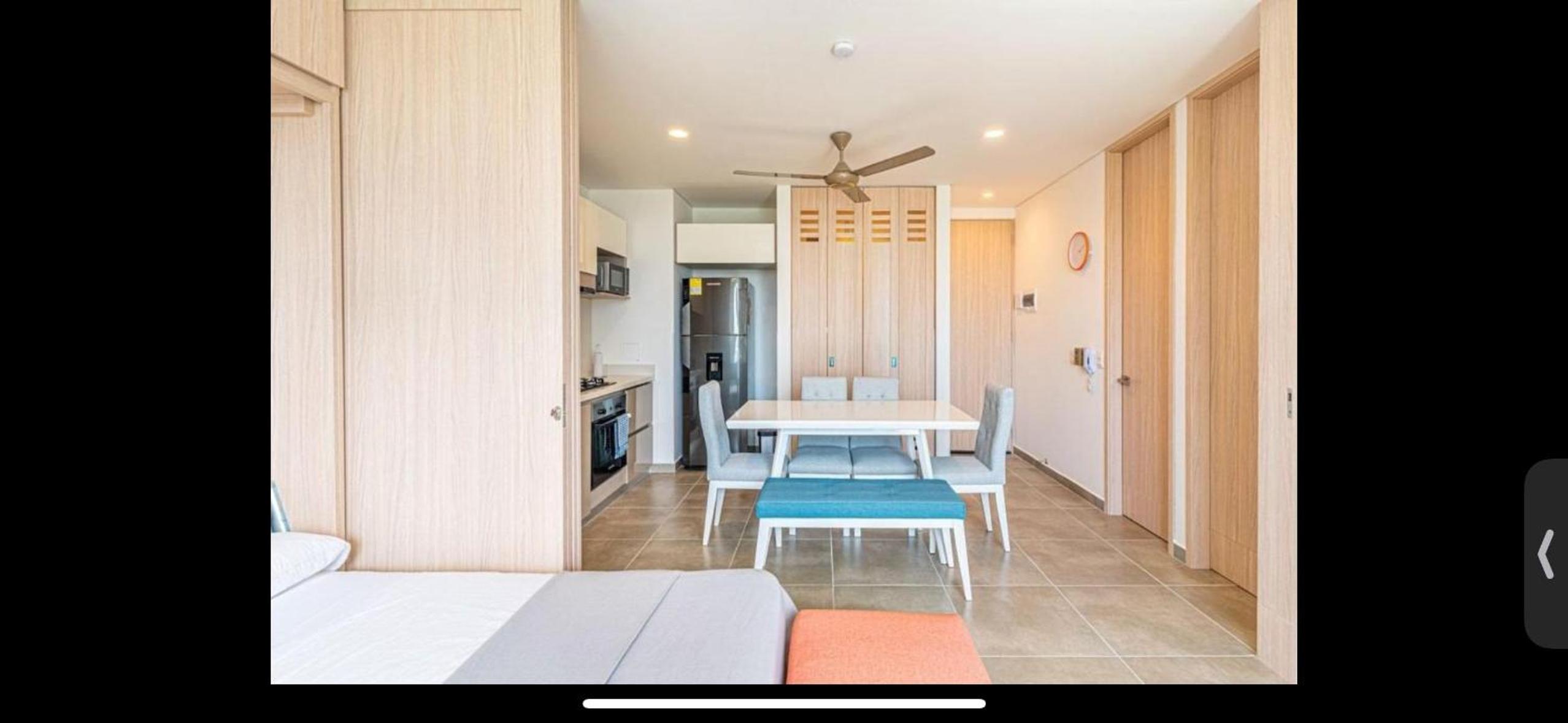 El edificio es casi nuevo. Está muy bien cuidado. Todo el apartamento estaba limpio, es pequeño pero bien distribuido y la vista es muy bonita.