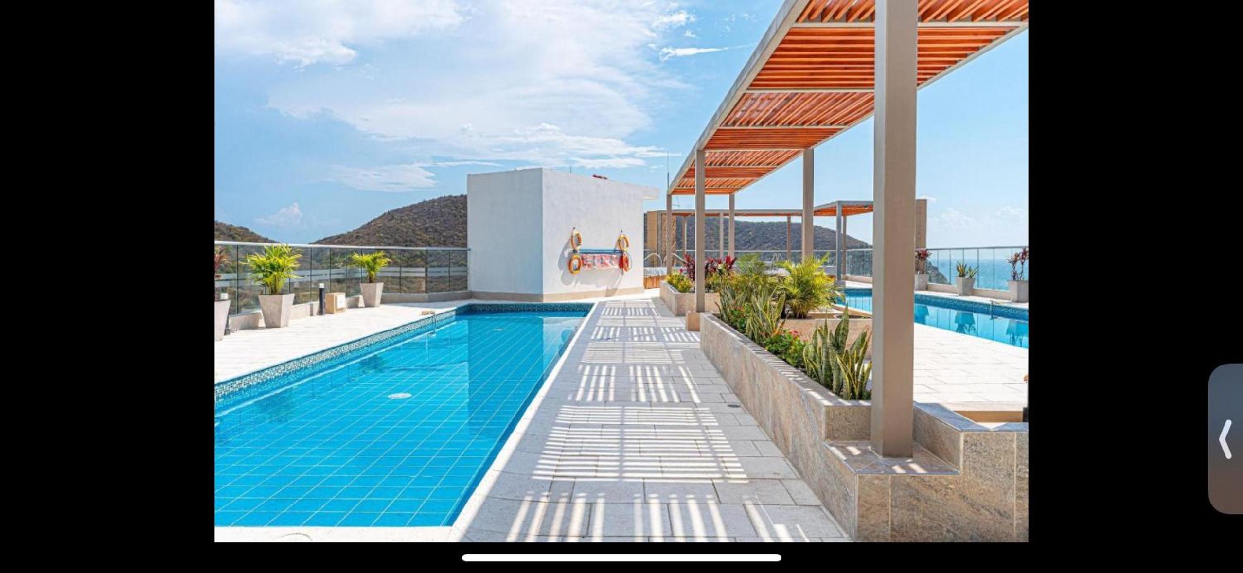 Tienen servicio de restaurante en el último piso y te lo pueden llevar al apto. La vista desde la piscina en el último piso es espectacular.