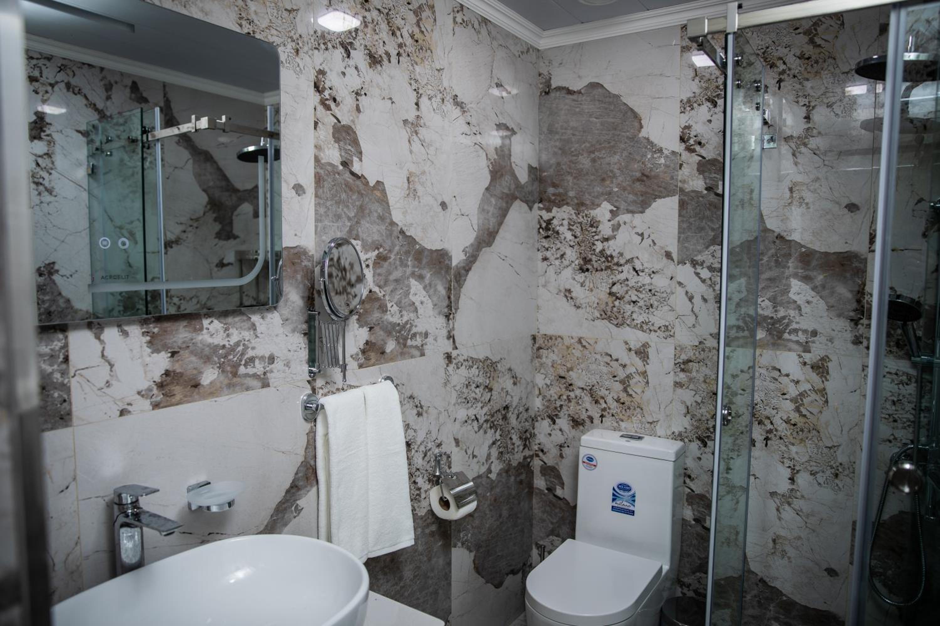 We were picked up from the airport in the middle of the night. Very friendly and helpfull staff. Comfortable and super clean room. Loved the breakfast.... fresh fruits , salads and a great assortment of usbecan cusine.