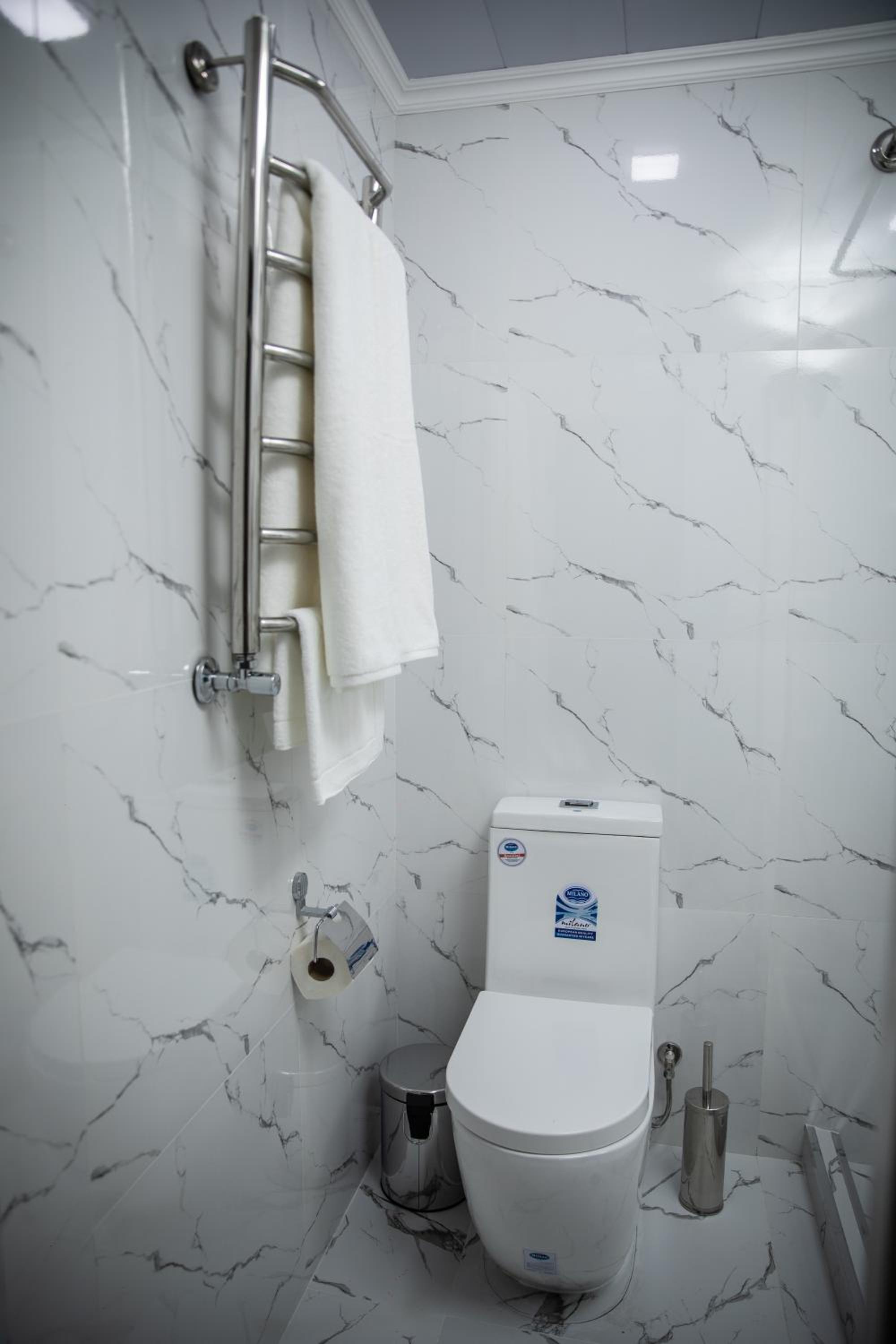 Esta a pocos metros del aeropuerto desde la puerta de llegadas se ve el edificio. El desayuno excelente. Muy limpio y por fin un colchón cómodo en Uzbekistán!!!!