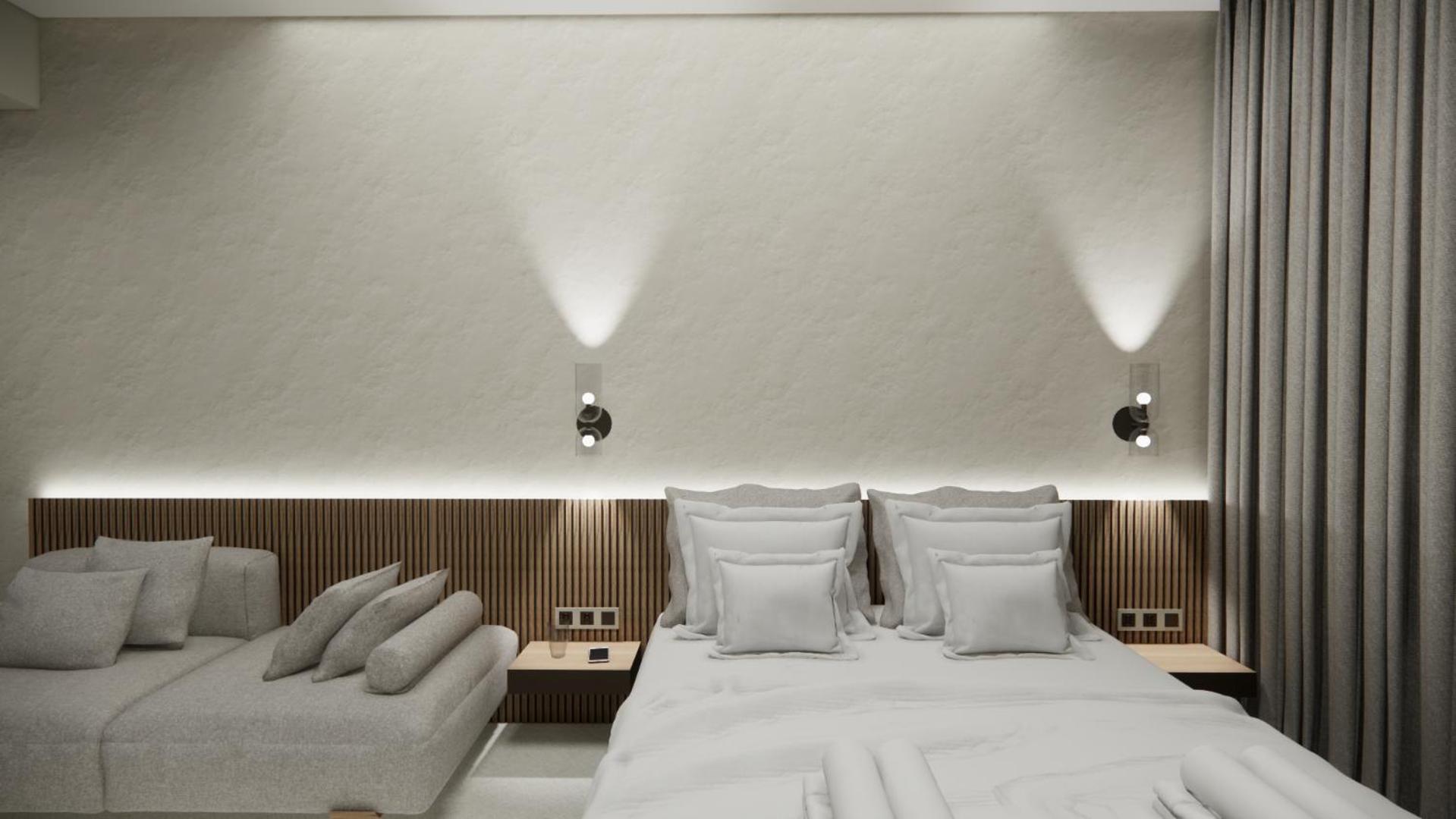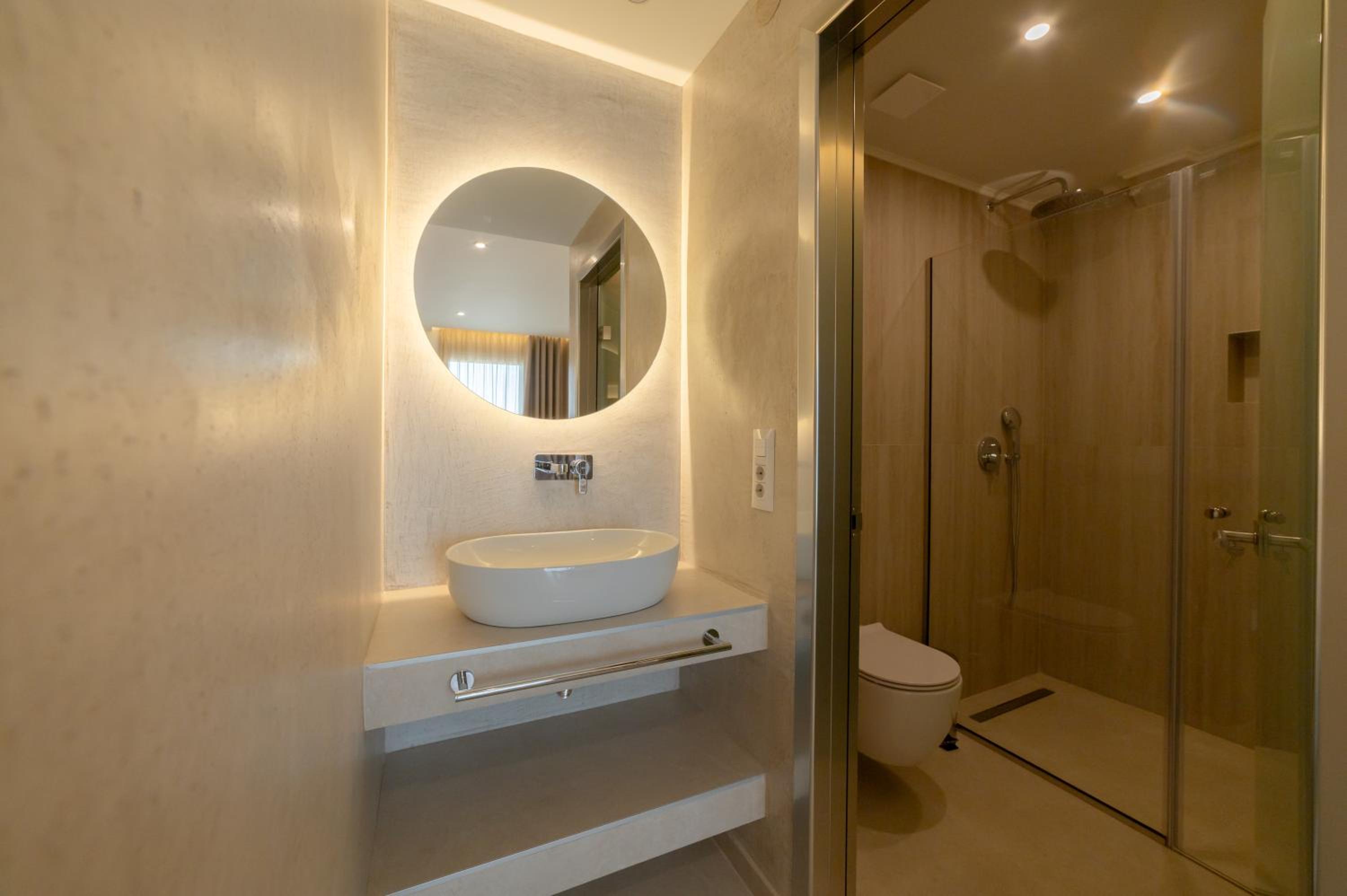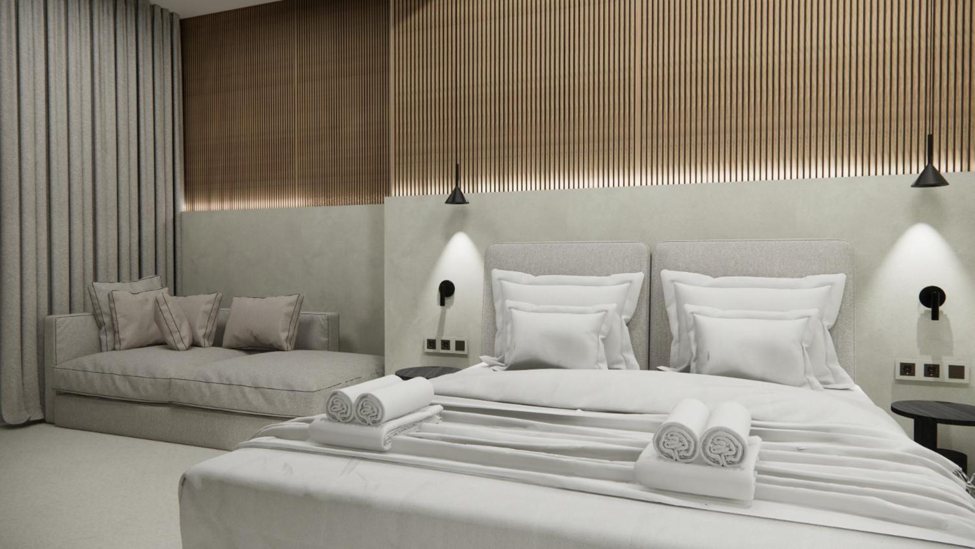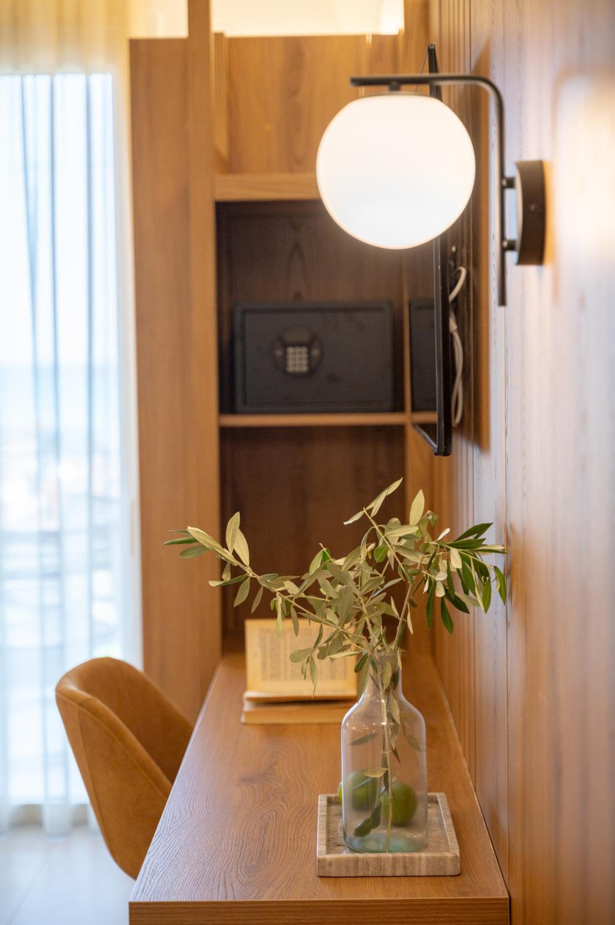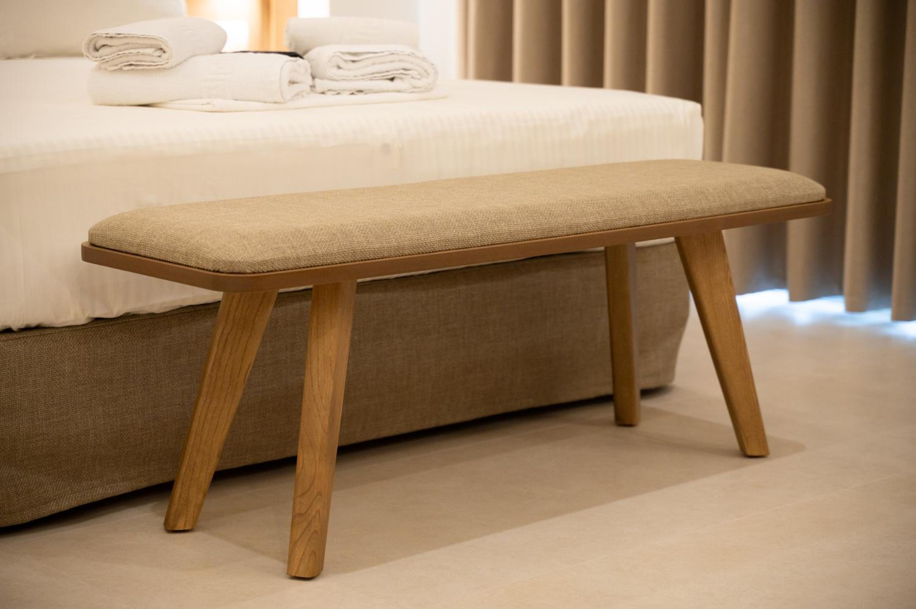 The hotel, room and furniture were very new and clean. Location was perfect, the golden beach and lots of taverns are in a few minutes of walking distance. Room was small but had a nice balcony. If you want to have some snack in your room or a drink before dinner, a well working refrigerator is also in the room.