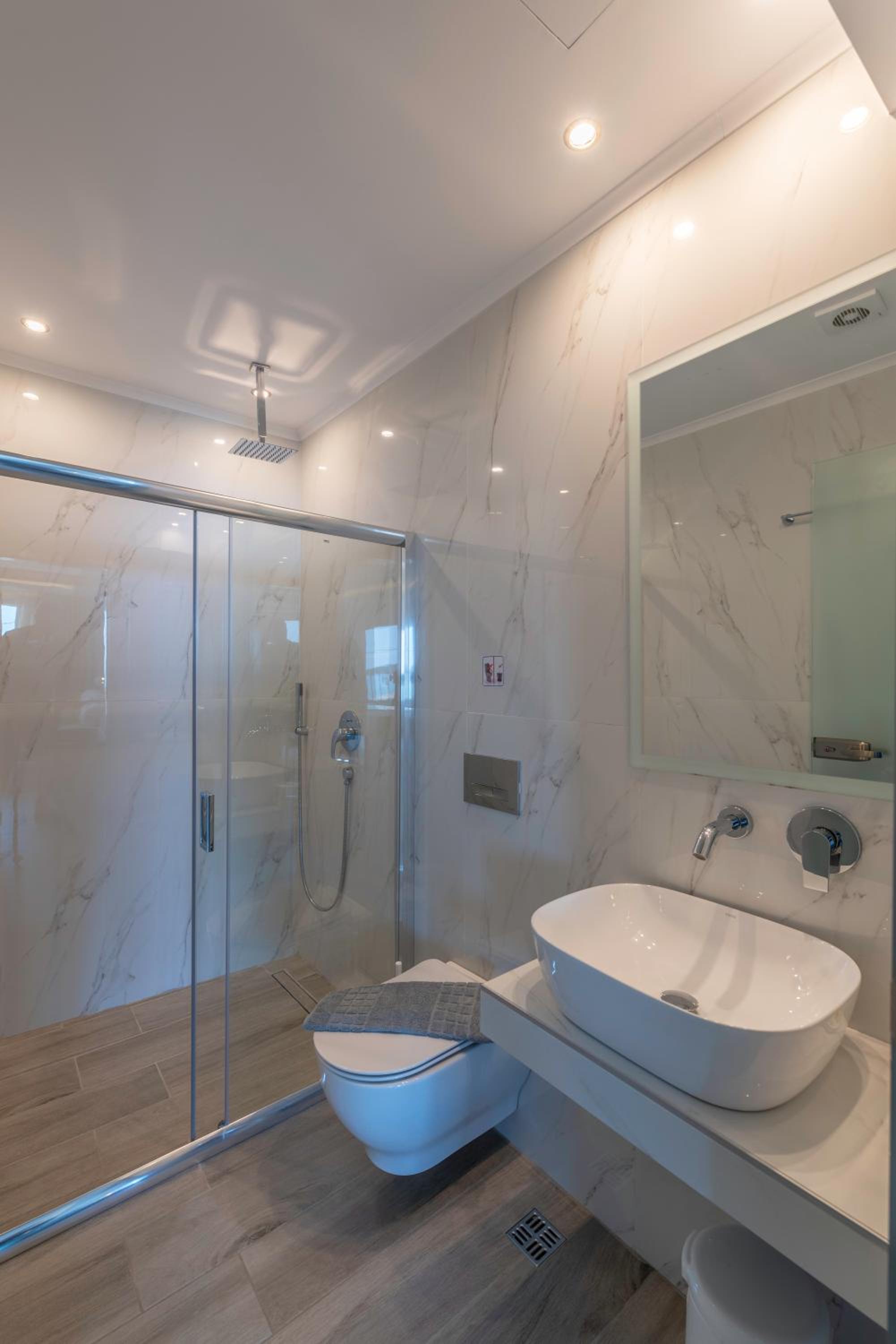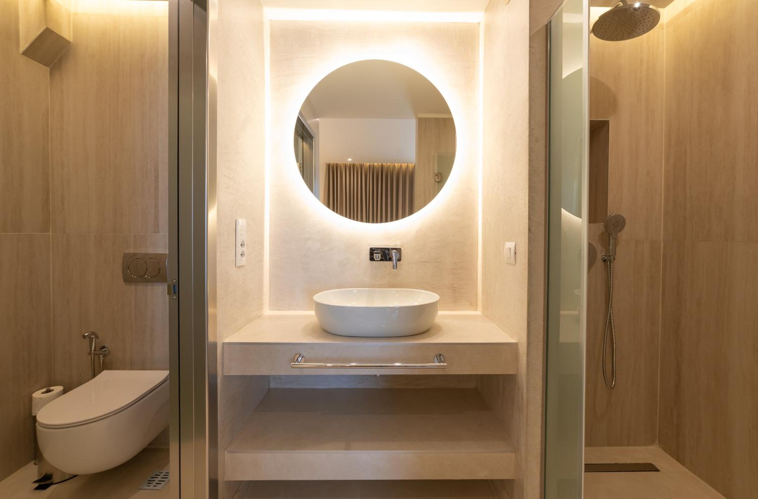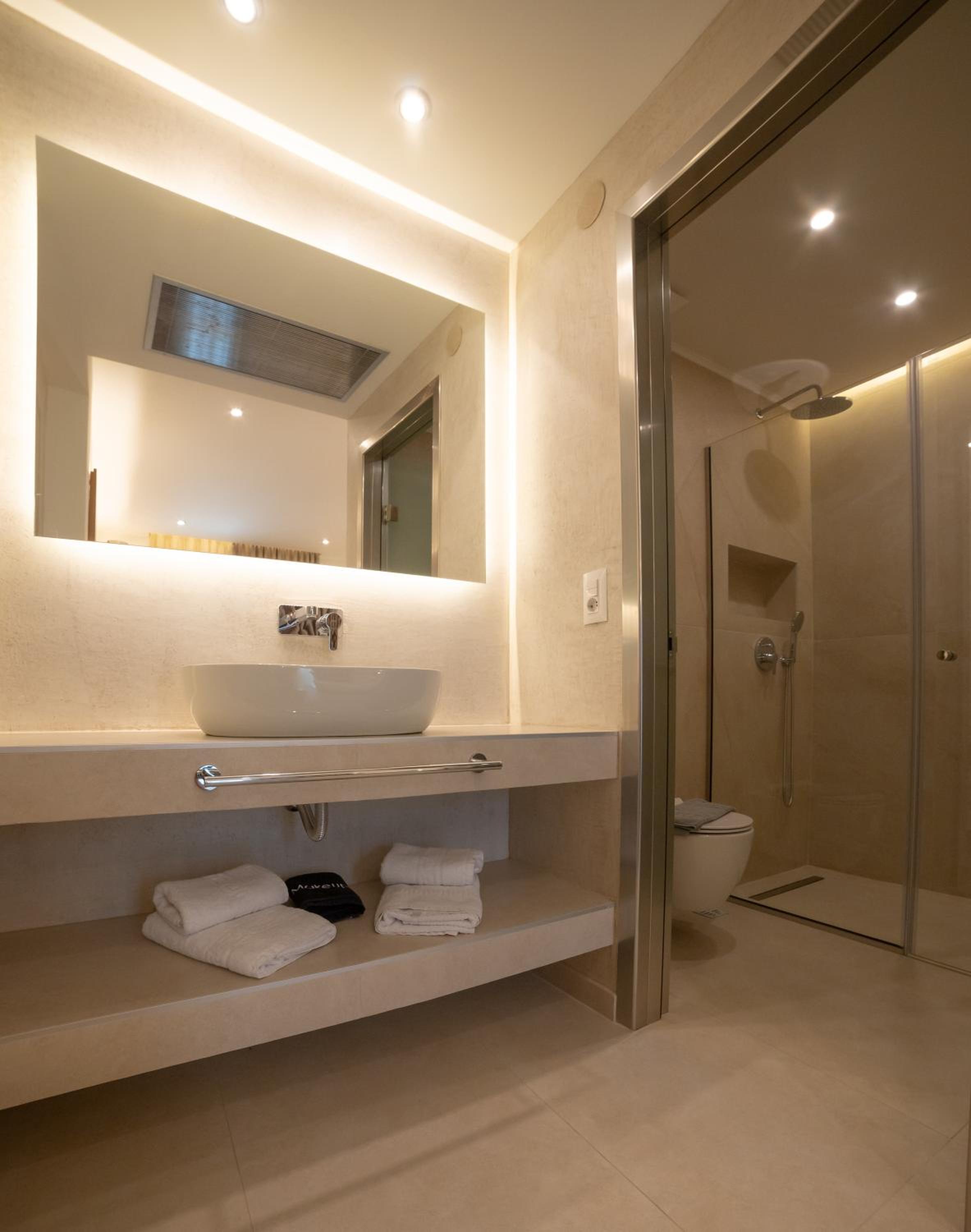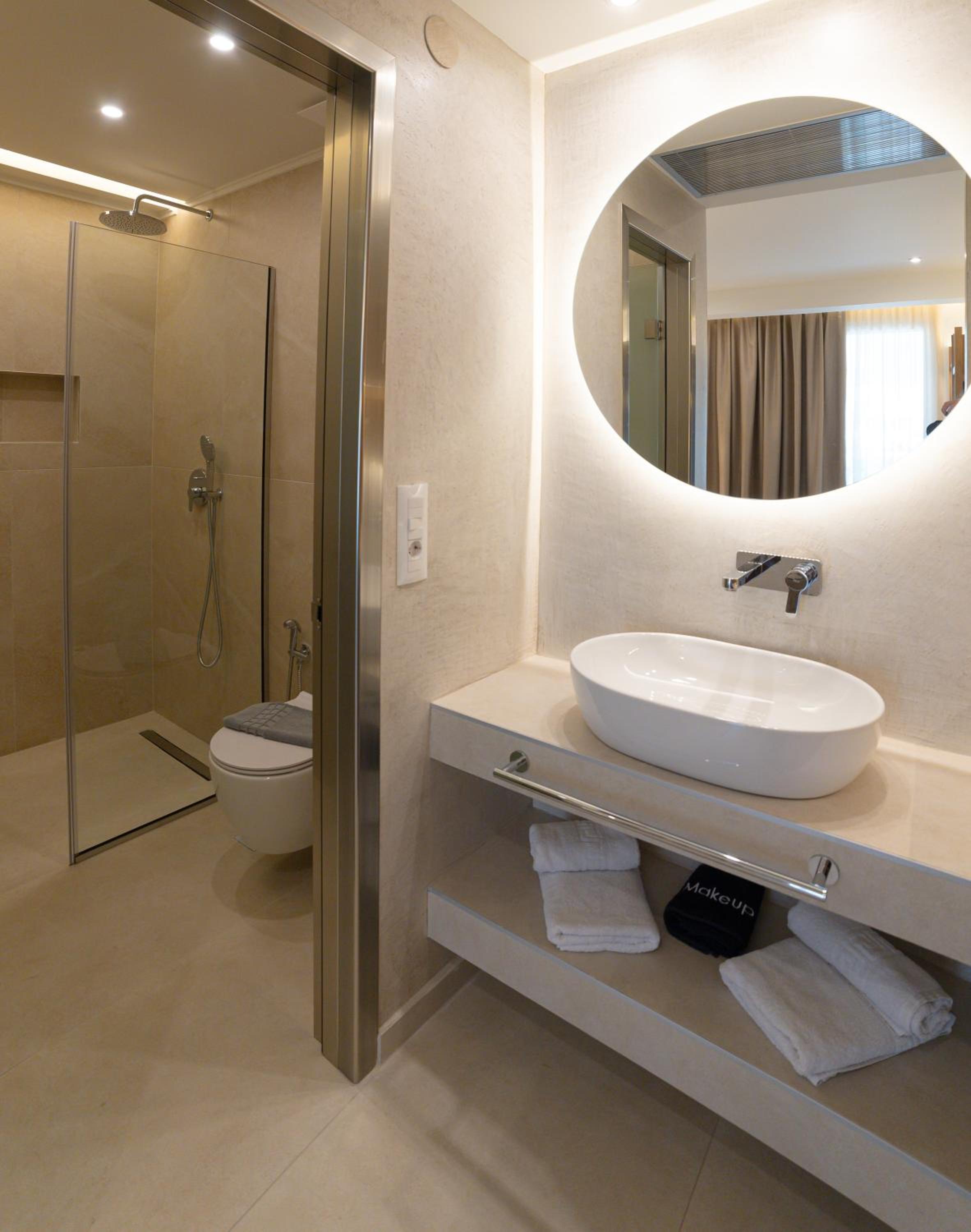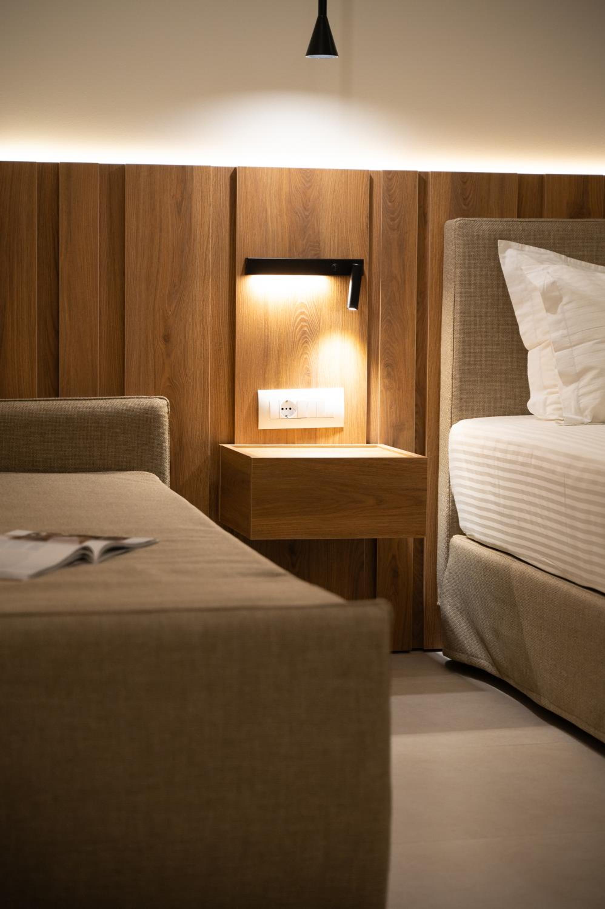 The hotel, room and furniture were very new and clean. Location was perfect, the golden beach and lots of taverns are in a few minutes of walking distance. Room was small but had a nice balcony. If you want to have some snack in your room or a drink before dinner, a well working refrigerator is also in the room.