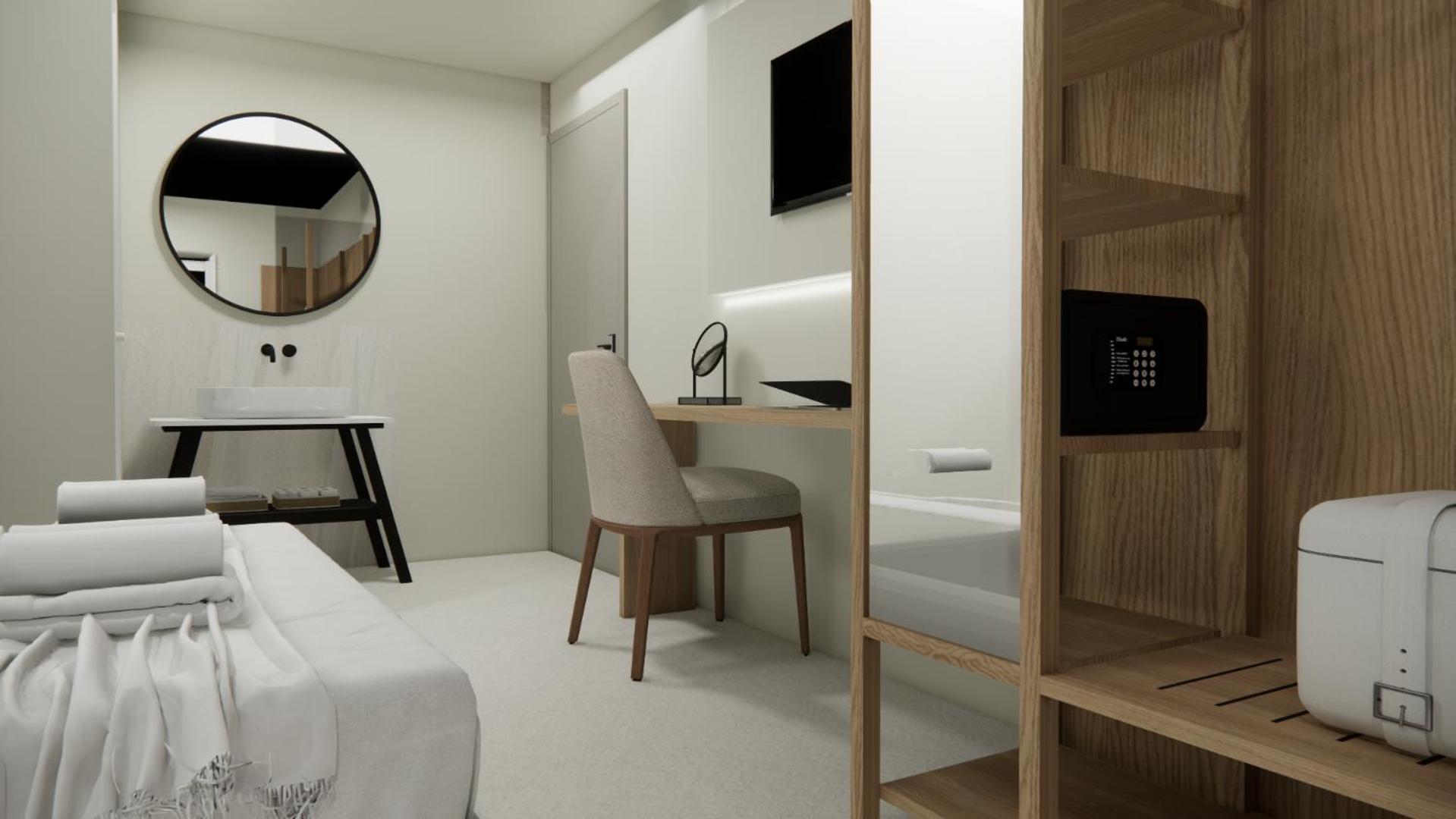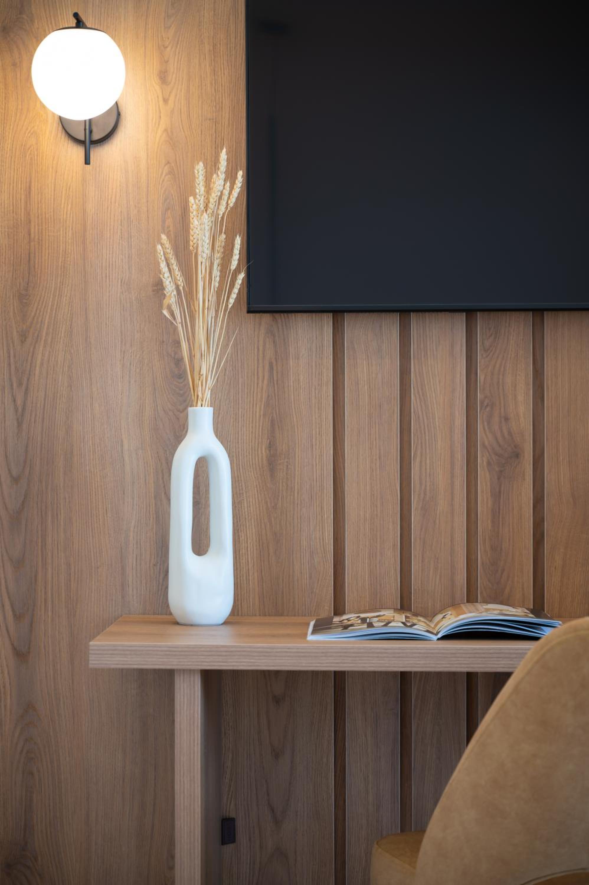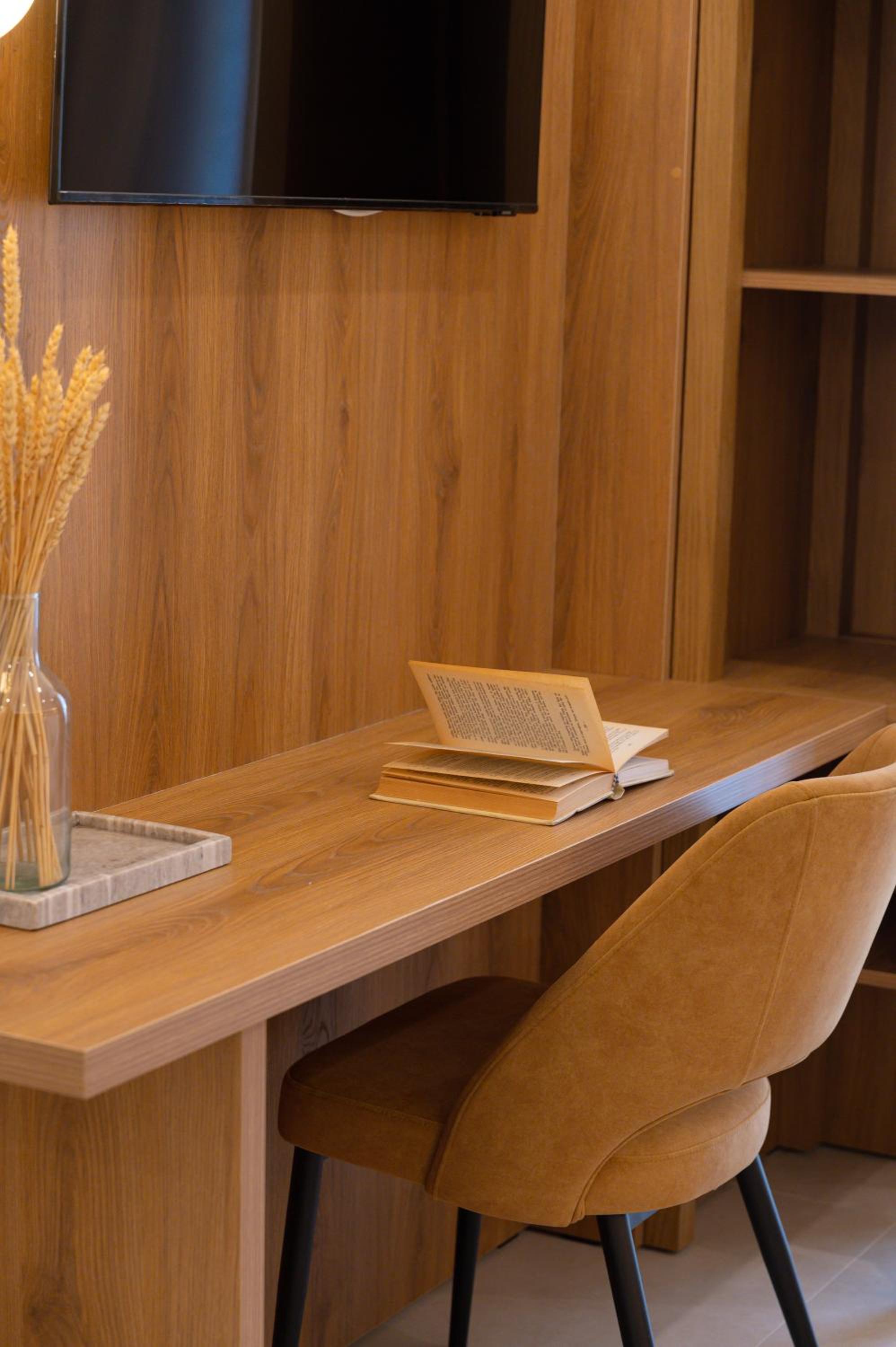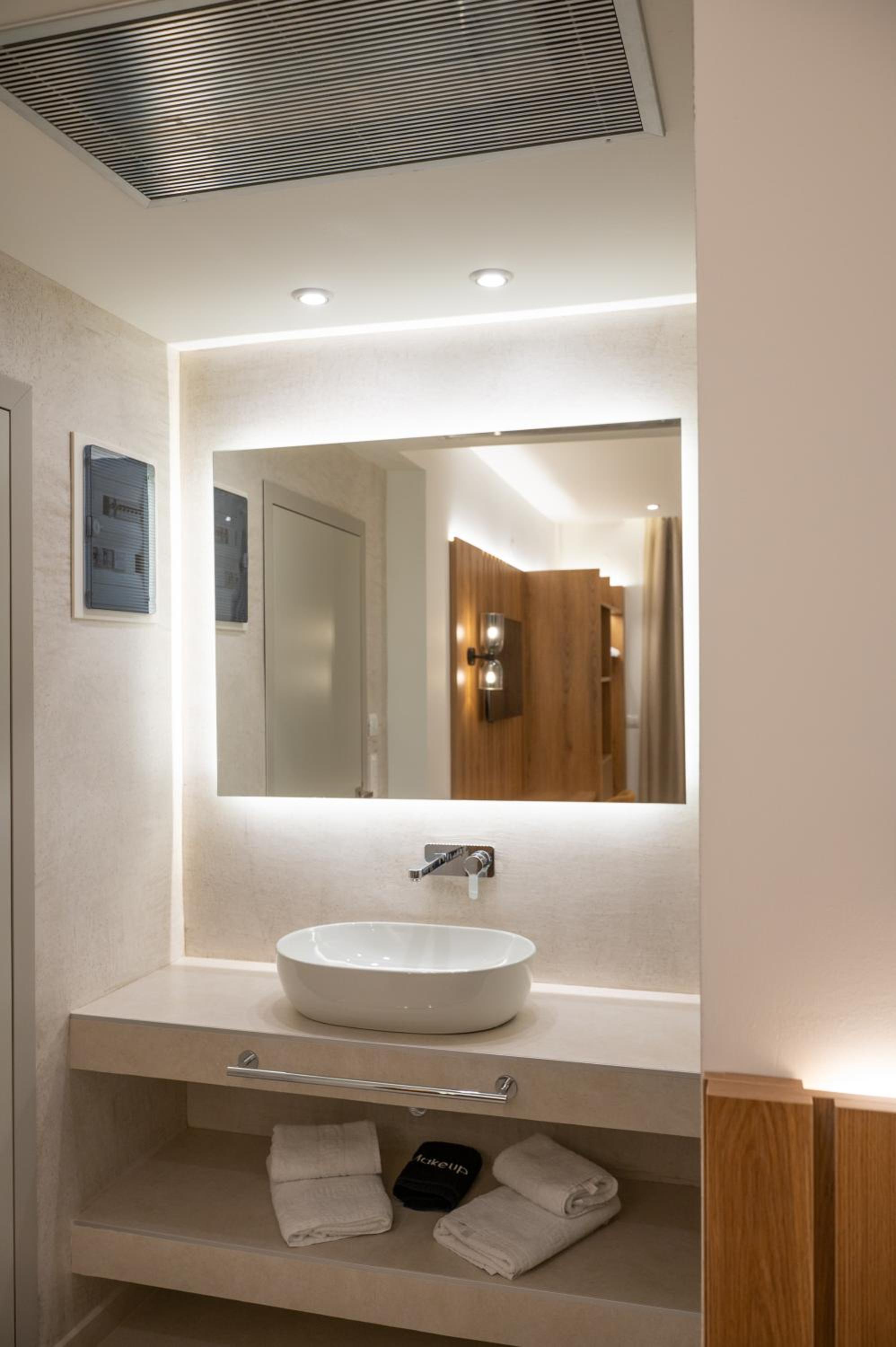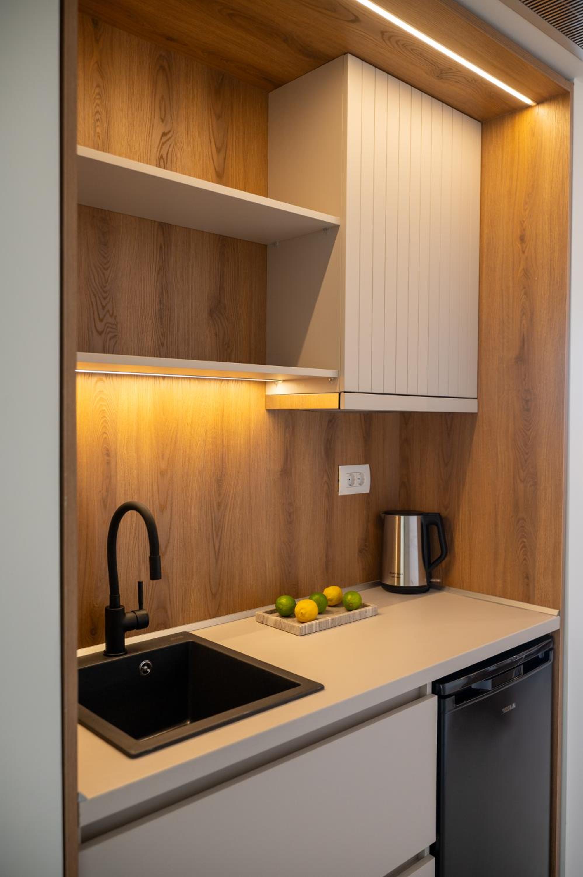 The hotel, room and furniture were very new and clean. Location was perfect, the golden beach and lots of taverns are in a few minutes of walking distance. Room was small but had a nice balcony. If you want to have some snack in your room or a drink before dinner, a well working refrigerator is also in the room.