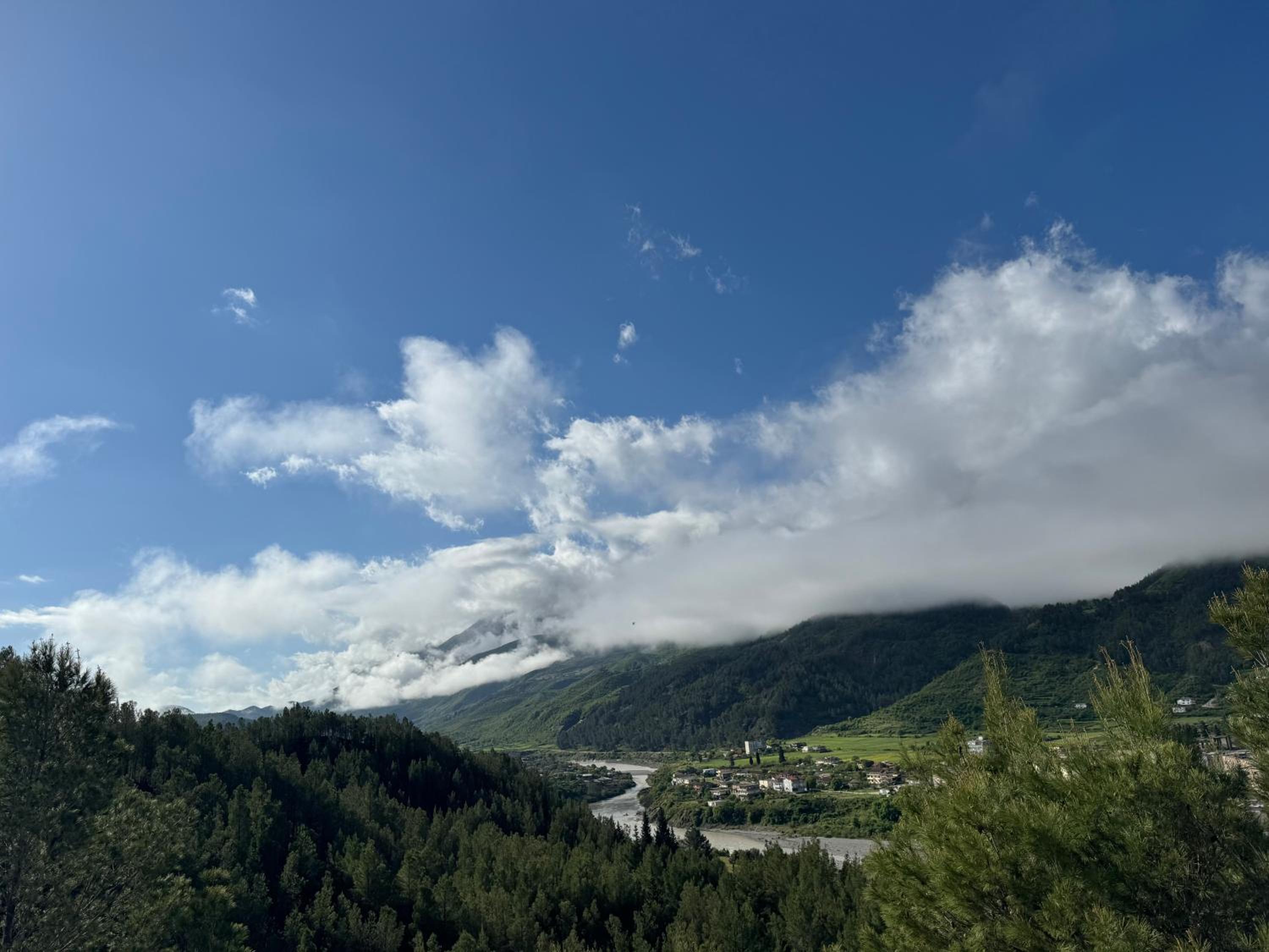 La localisation face aux montagnes et à la ville, l immense terrasse ombragée , l accueil très attentif de nos hôtes qui nous ont fait partager l amour de leur région, la nourriture goûteuse .