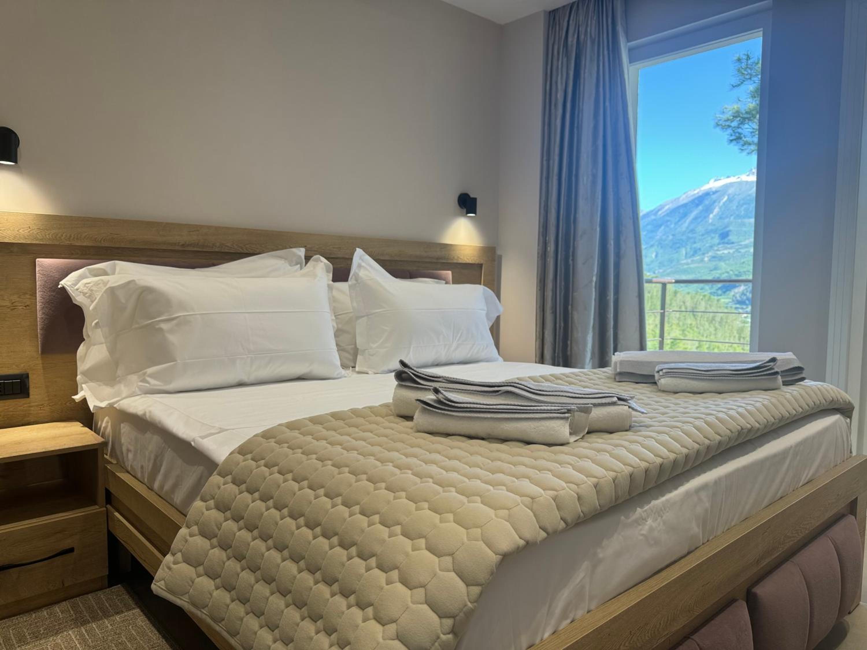 Très bel hôtel en montagne dans un emplacement calme avec une belle vue. La famille qui tient l’hôtel est aux petits soins, on nous a fait un cadeau à l’arrivée. Le petit déjeuner est au top, on nous cuisine tout le matin selon nos désirs. La chambre était très belle et spacieuse.