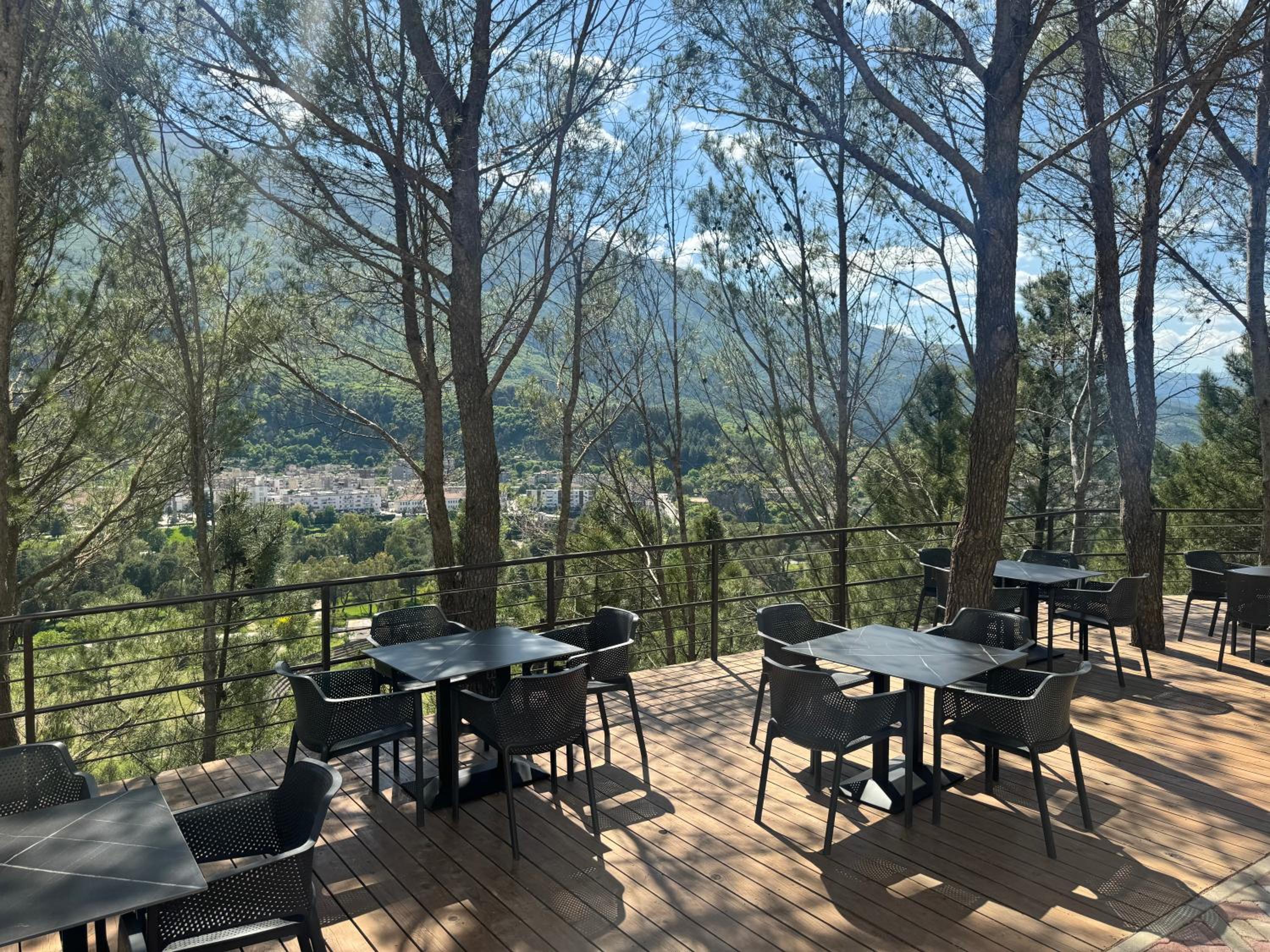 Dîner sur la terrasse ombragée qui domine la ville.