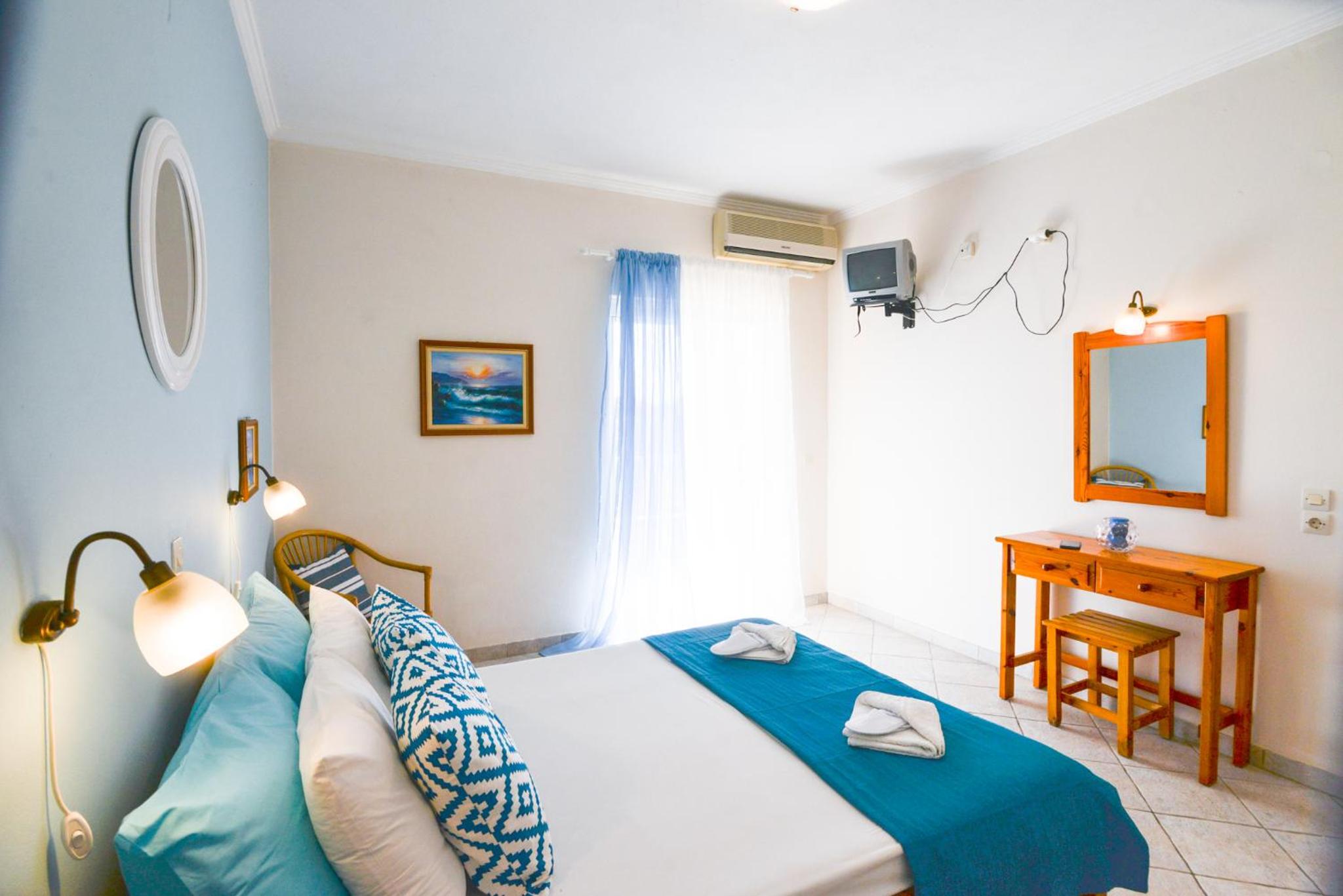 Each room at Villa Myrto is beautifully furnished with air conditioning, a private bathroom, and a terrace or balcony providing panoramic views. Guests can also enjoy a well-equipped kitchen, flat-screen TV, and complimentary WiFi.