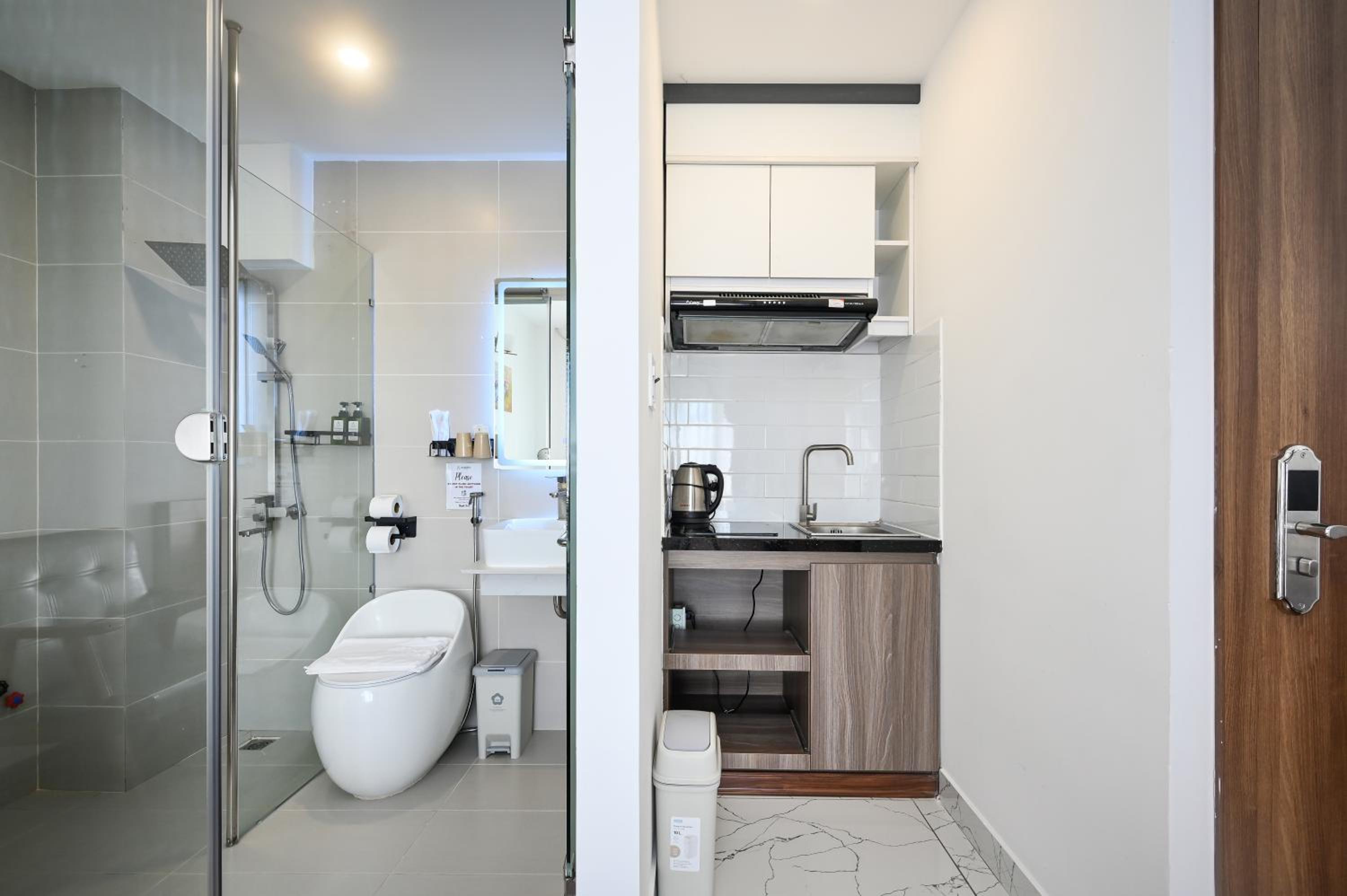 Fridge and kettle in the room are useful.