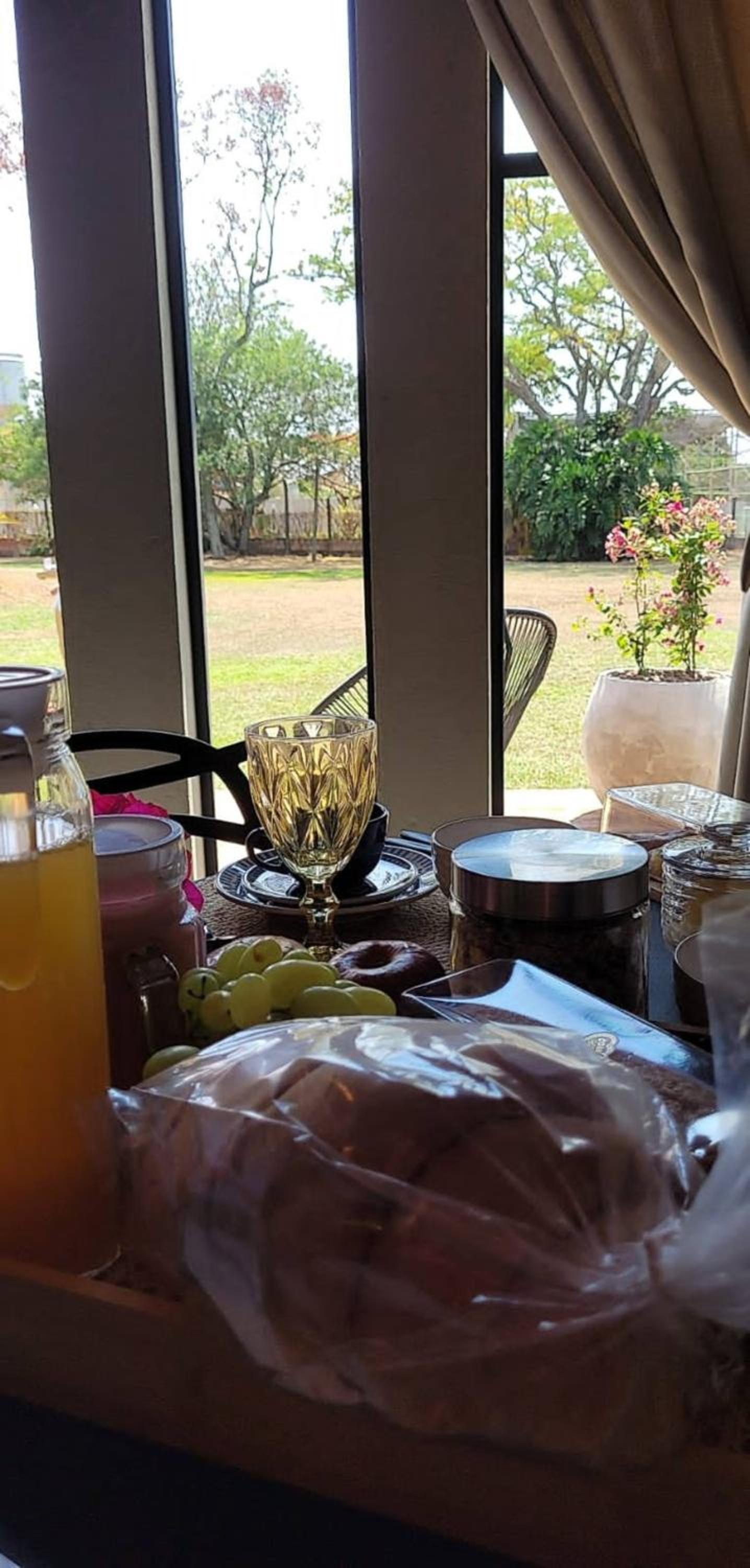 A proprietária dona Precilda preparara uma cesta de café da manhã deliciosa, a chácara é num local bem tranquilo,
