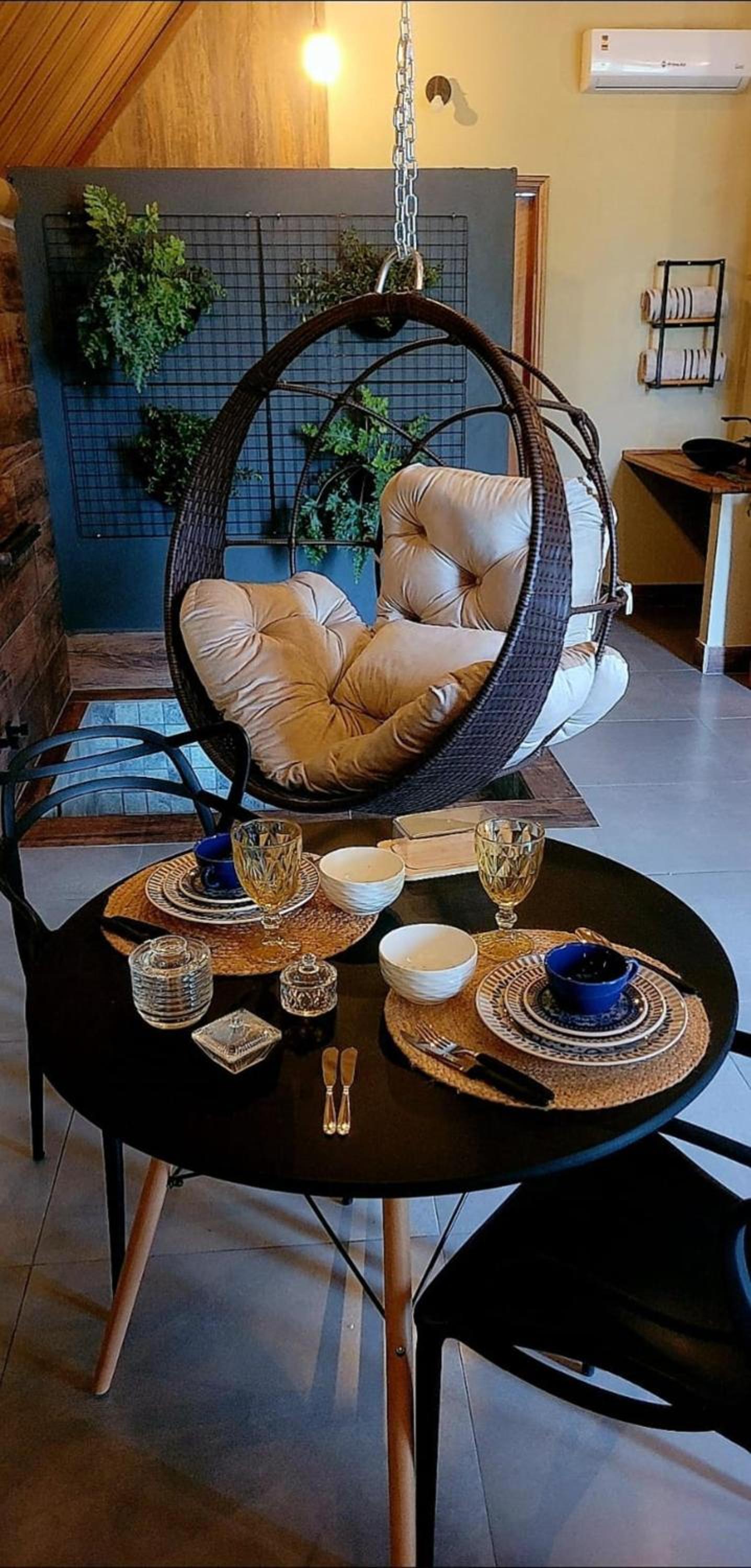 Área comum aconchegante, chalé completo, muito bem equipado e cuidado! Limpeza e atendimento impecável.