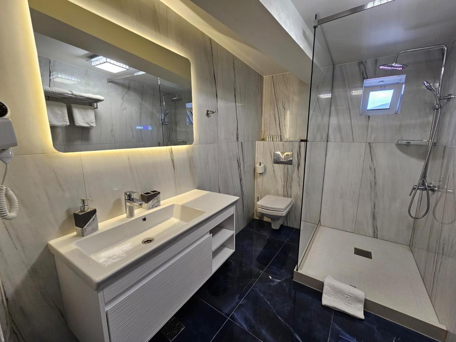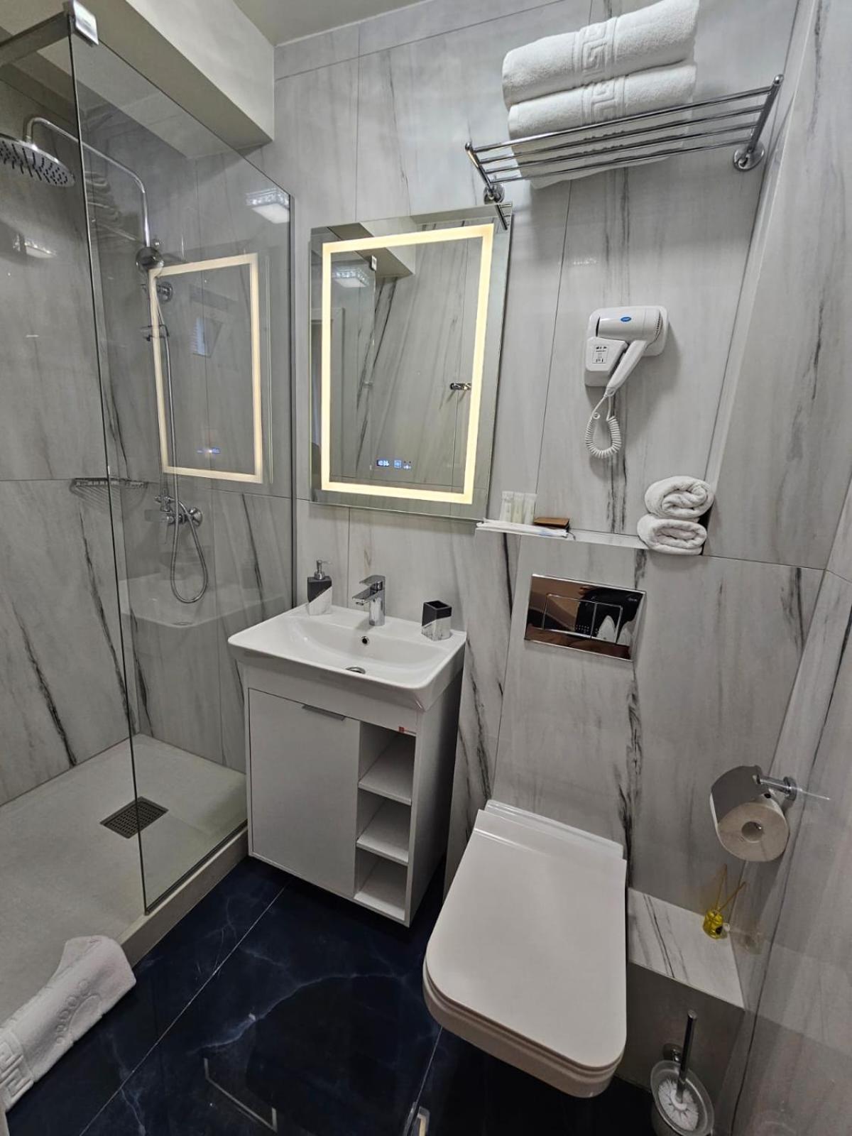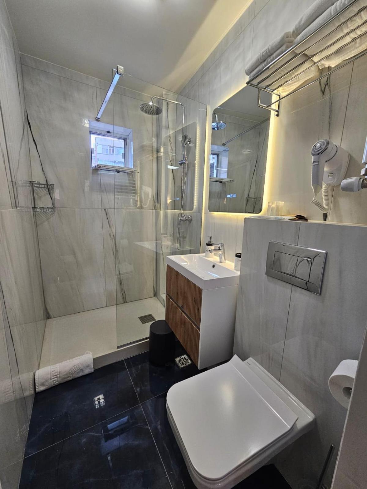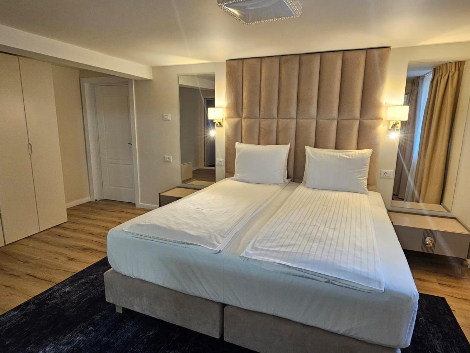 Locatia hotelului este foarte buna, respectiva in zona mall-ului. Camera a fost foarte spatioasa, cu un pat foarte mare si comod, dulap incapator, noptiere si un minifriger. Baia a fost foarte cozy, curata si placuta si a continut multe articole de folosire . De asemenea a fost foarte multa liniste. Recomand cu mare drag si cu siguranta voi reveni cu placere!