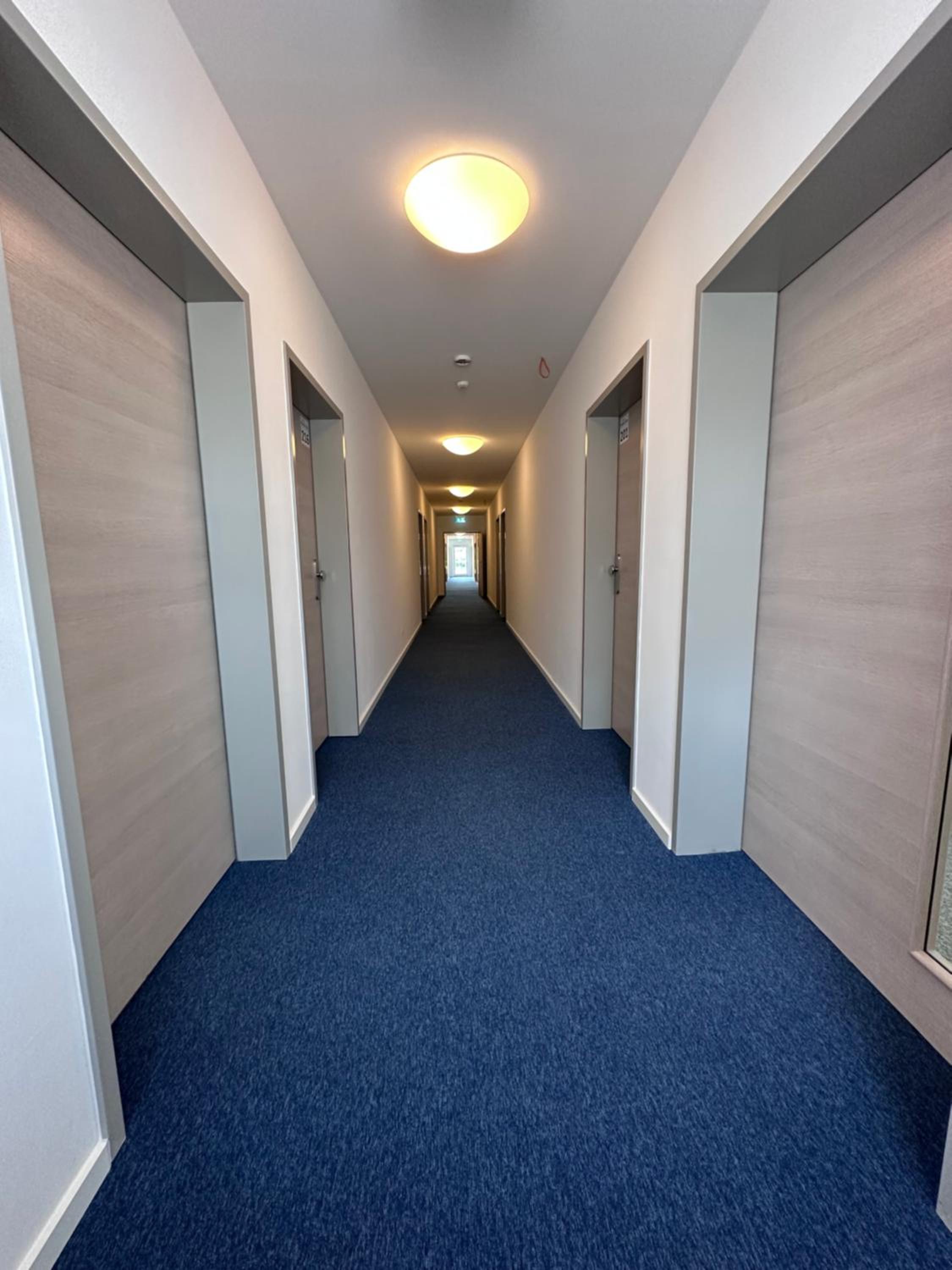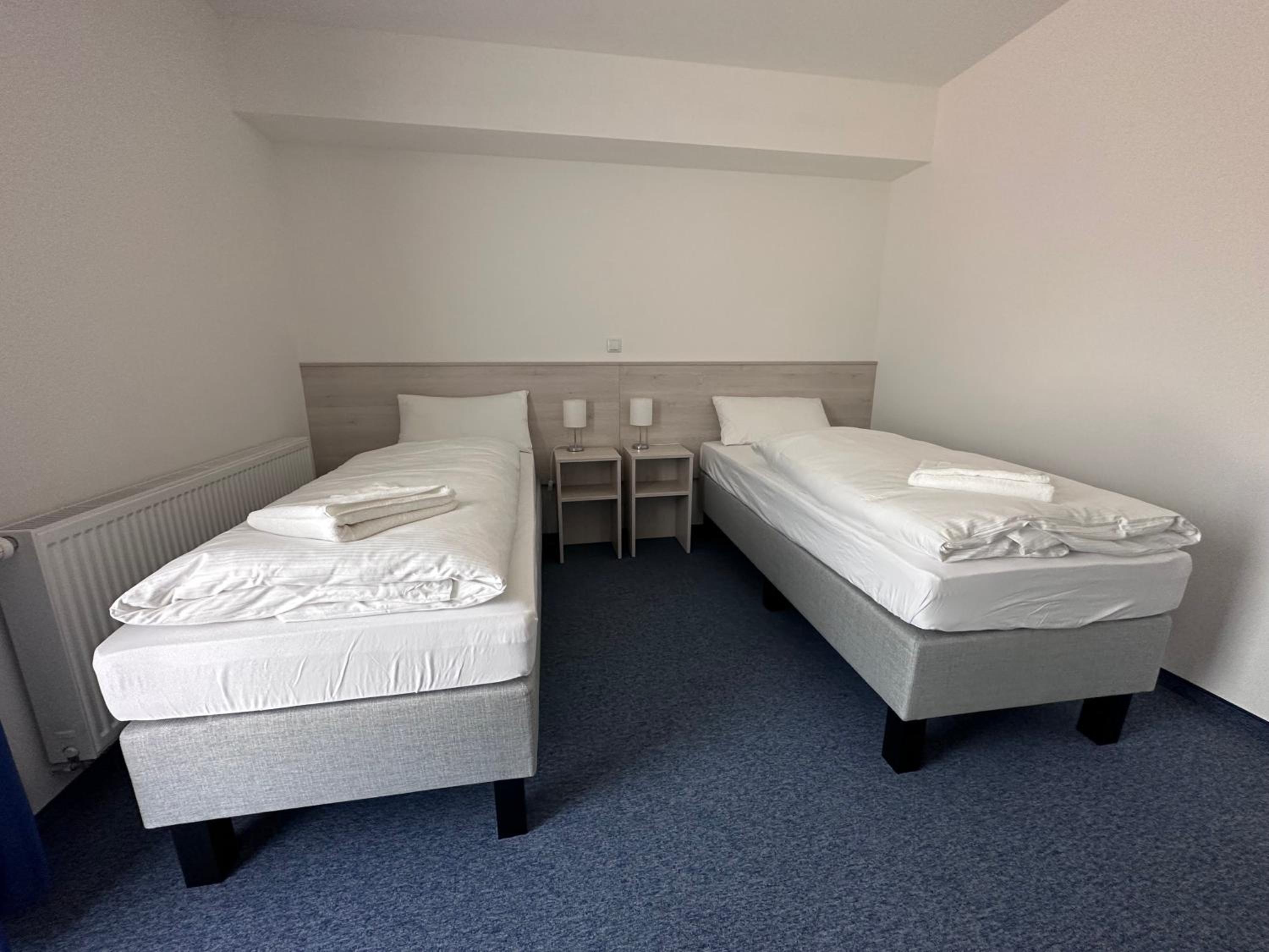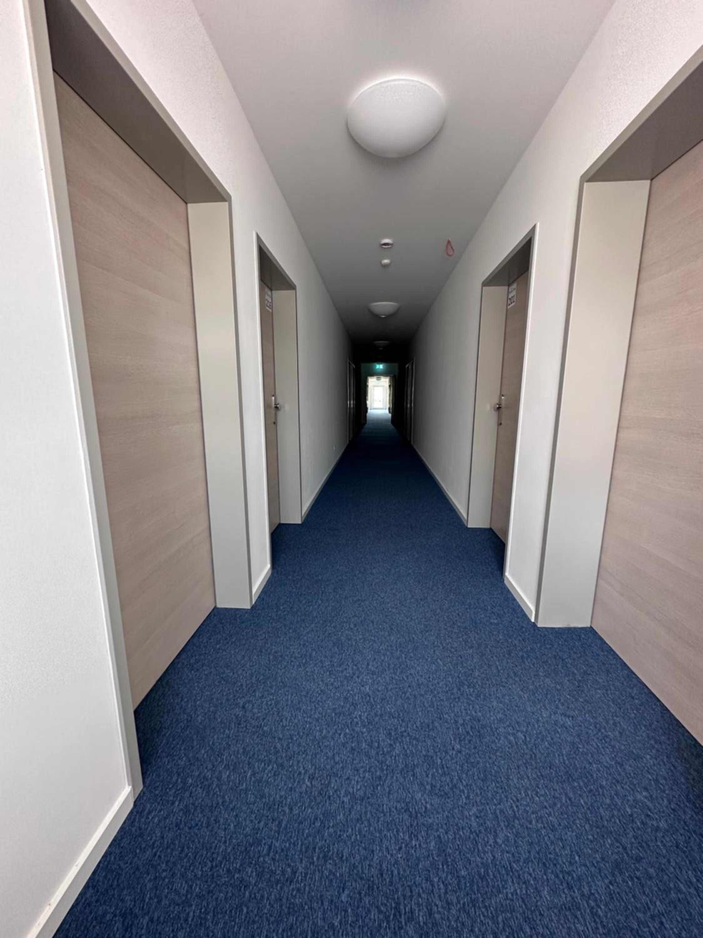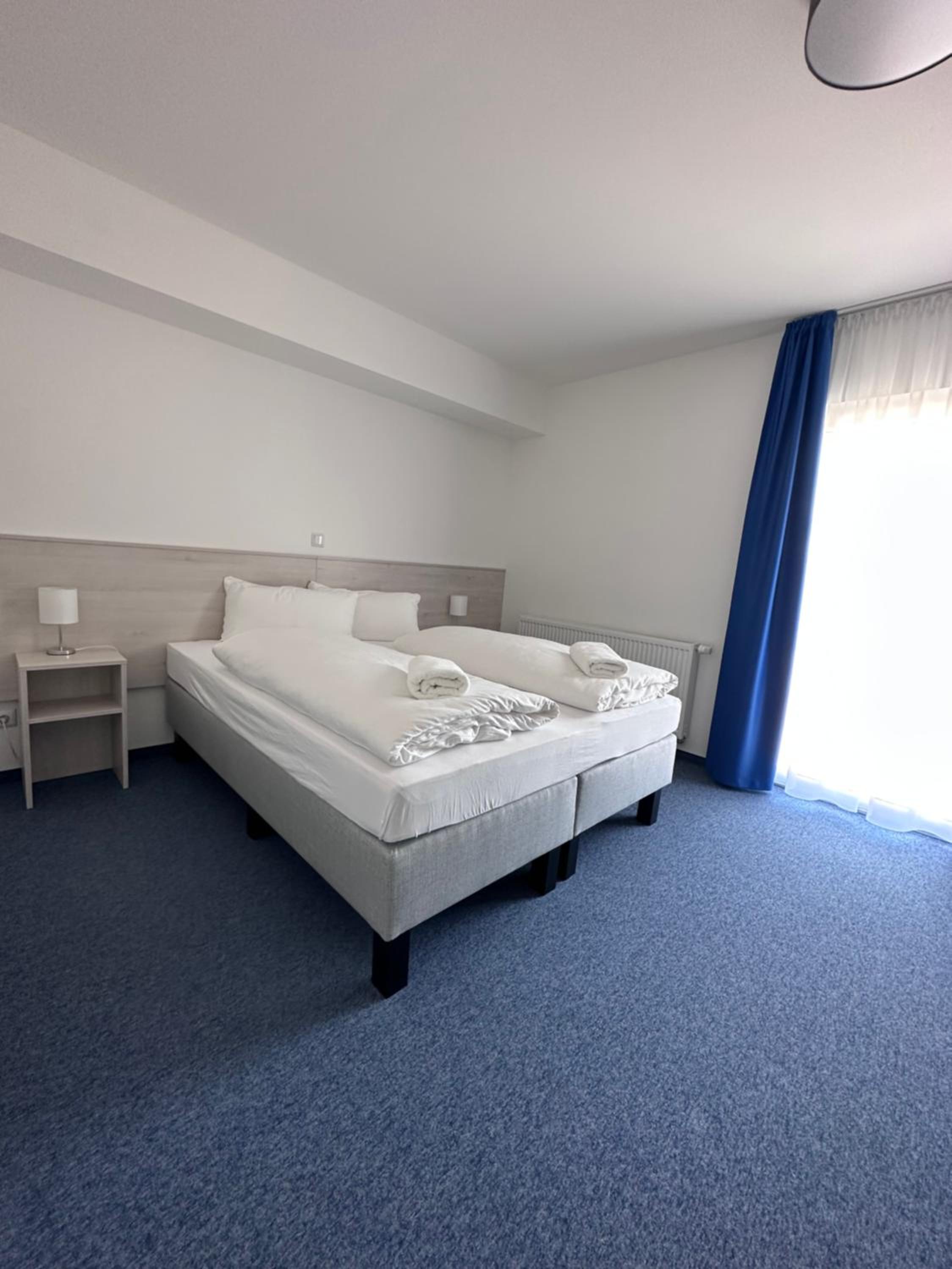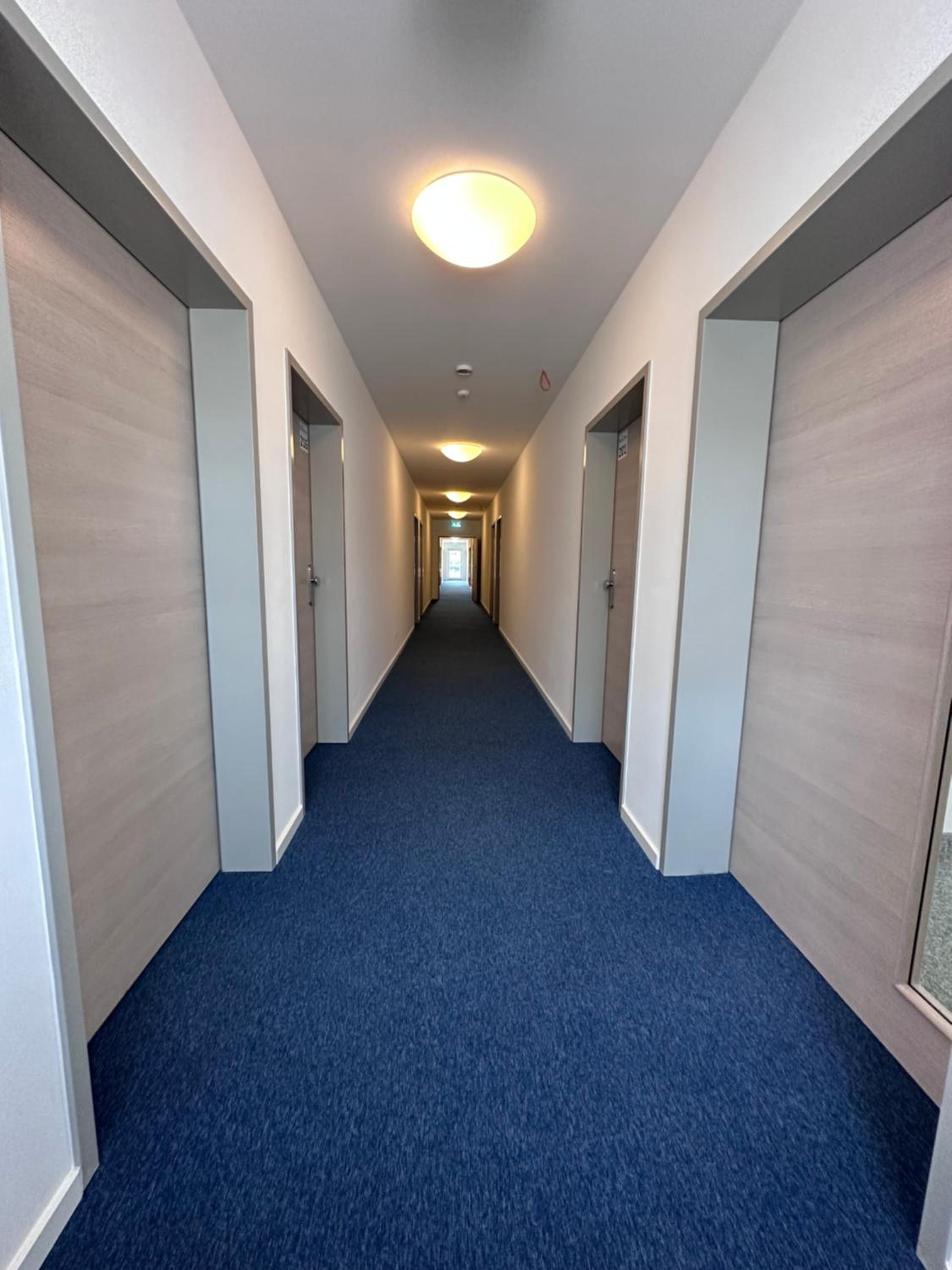 Die Zimmer sind sehr nüchtern, kahl sowie zweckmäßig eingerichtet.