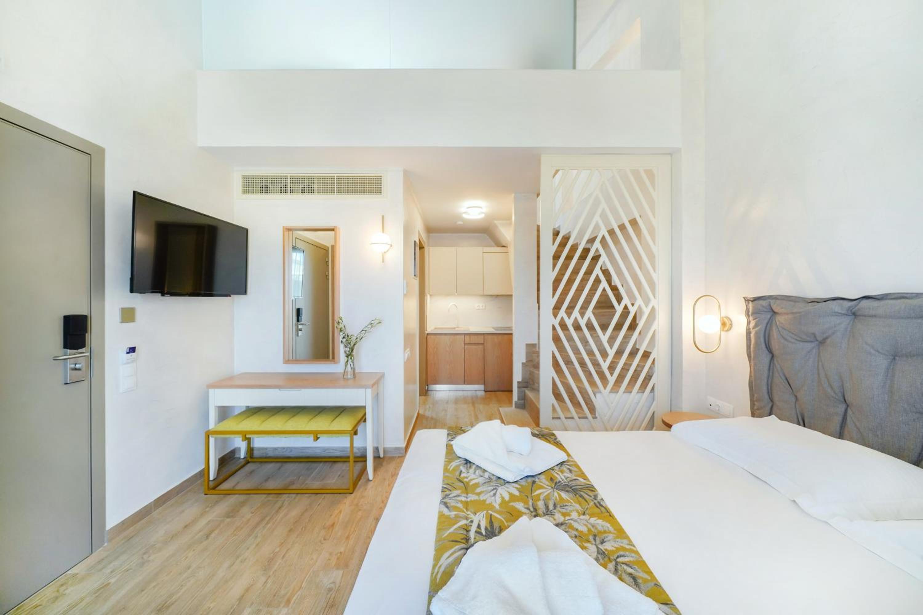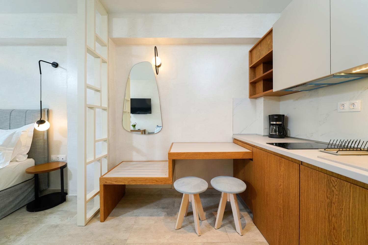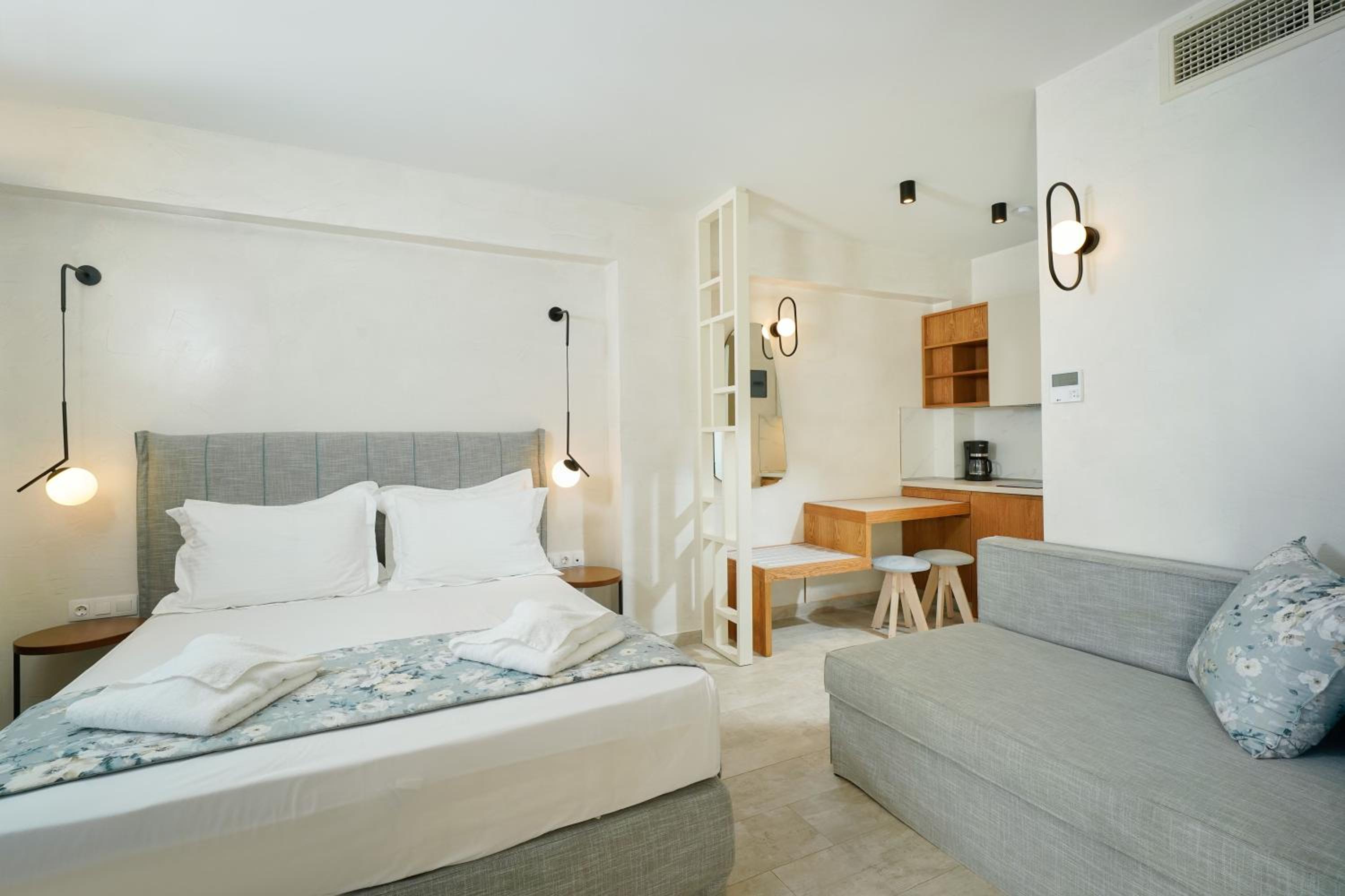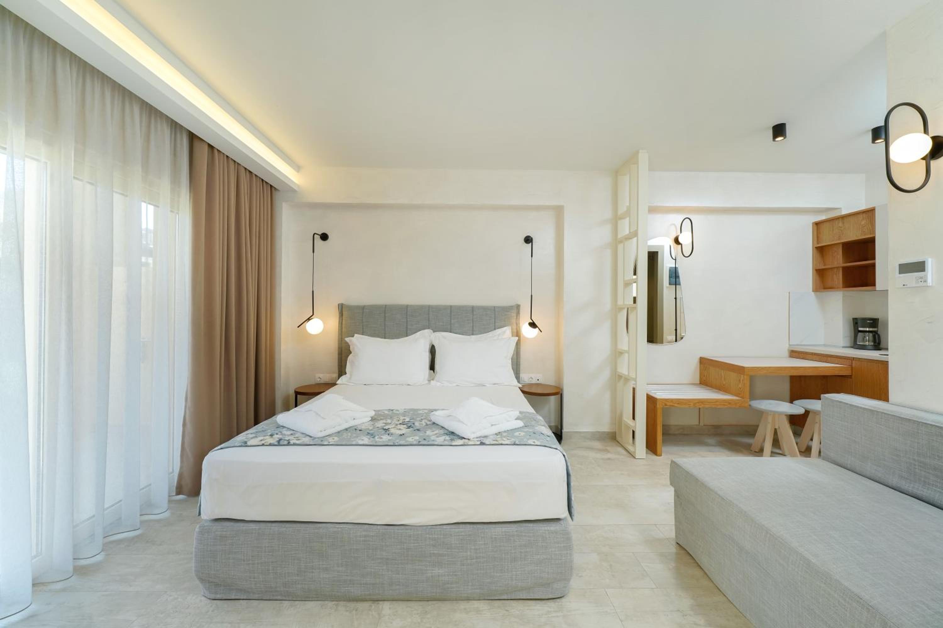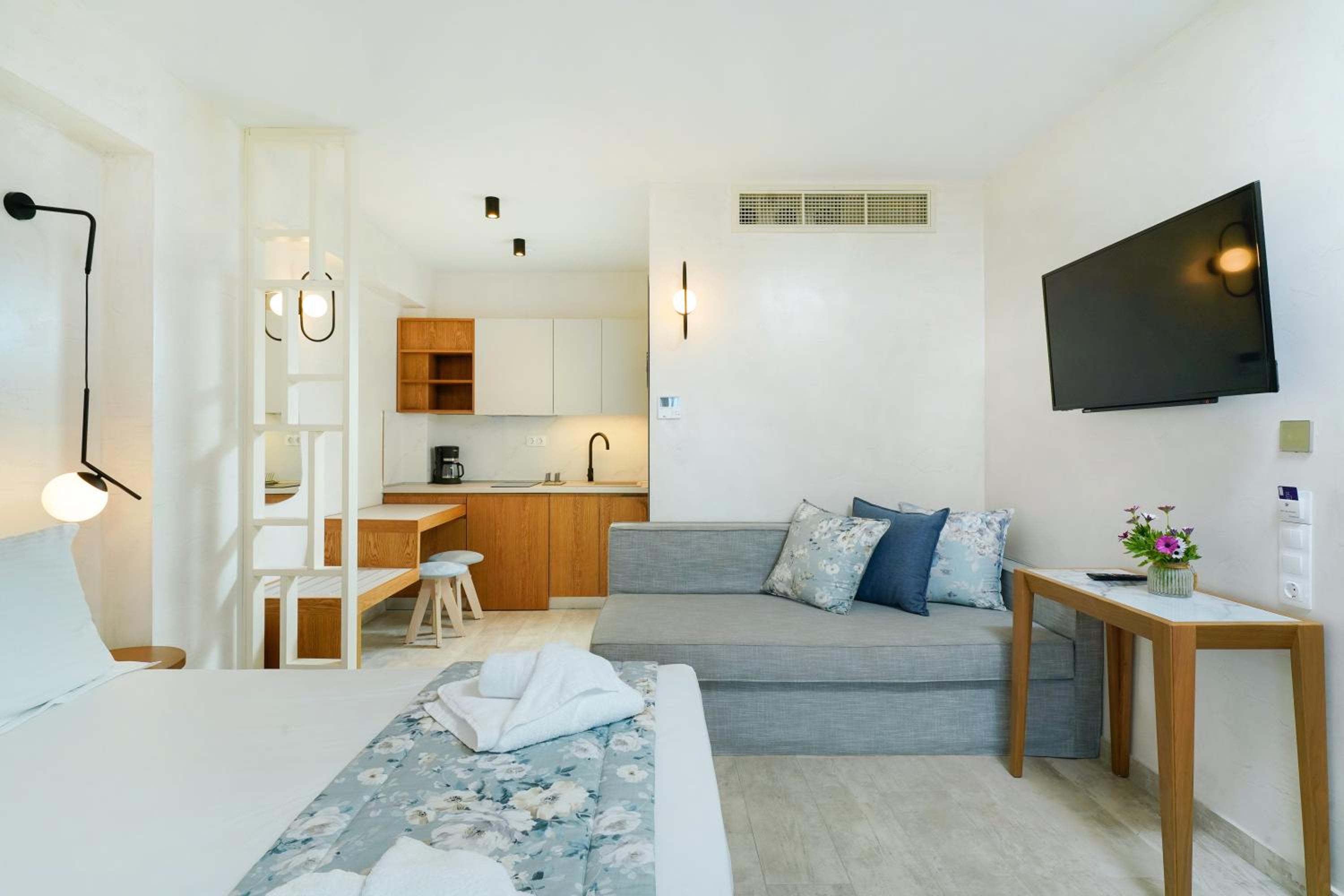 The suites have great location, right in front of the Beach. They're also very nicely decorated and very modern, having everything needed for our holidays. The manager was very nice and always ready to make our stay better