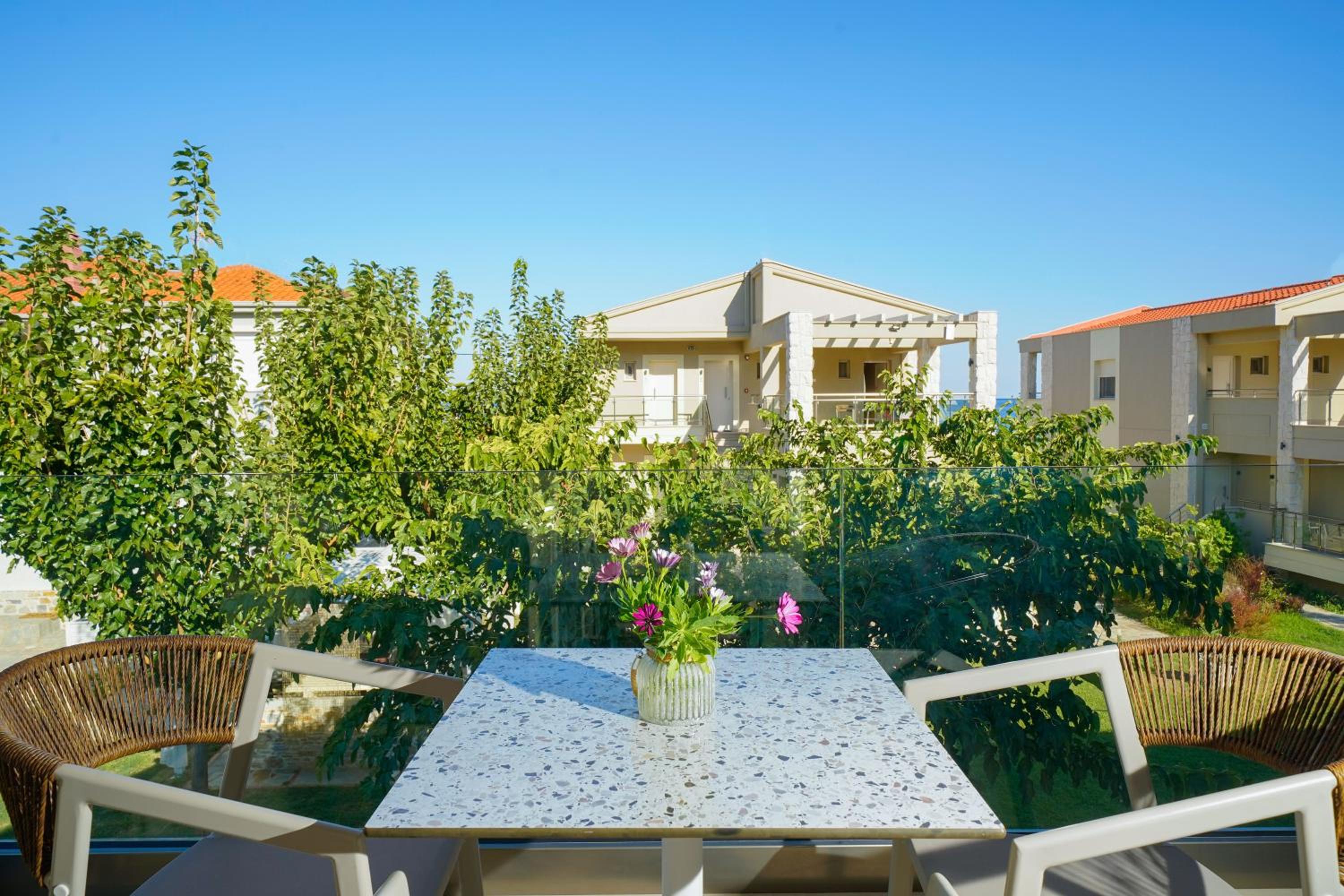 Страхотна локация, близо до плажа, крайбоежната алея за разходки, таверни. Нови, съвременно обзаведени мезонети, даже с гледка море от терасата. Паркинг и чудесна градина с места за почивка и детски кът на открито. Препоръчвам!