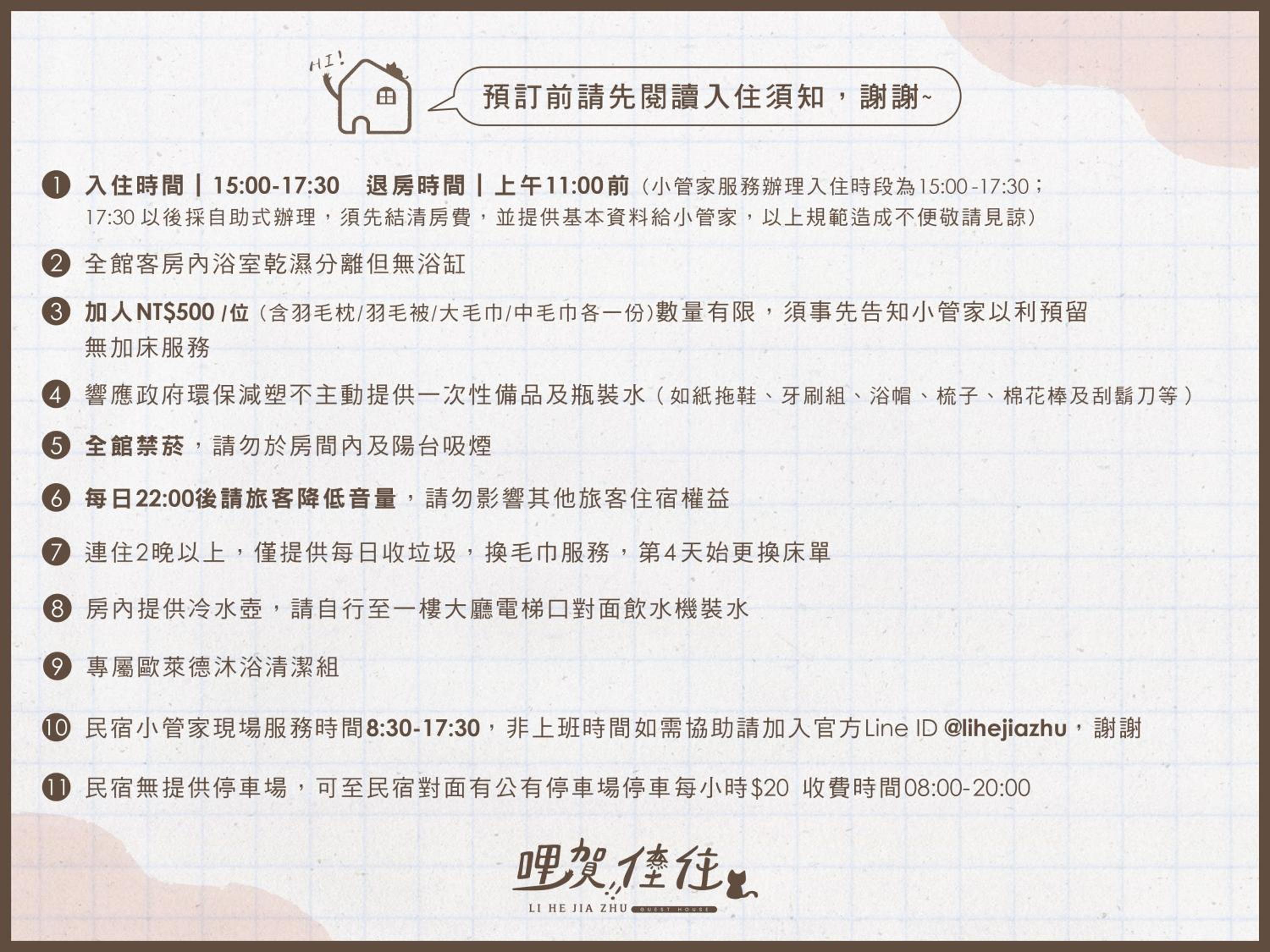 小小小缺點,沒有自己的停車場,但是民宿對面就有停車場🅿️20:00-8:00不收費,我們20:00以後停到10:30收了20元,還能接受!