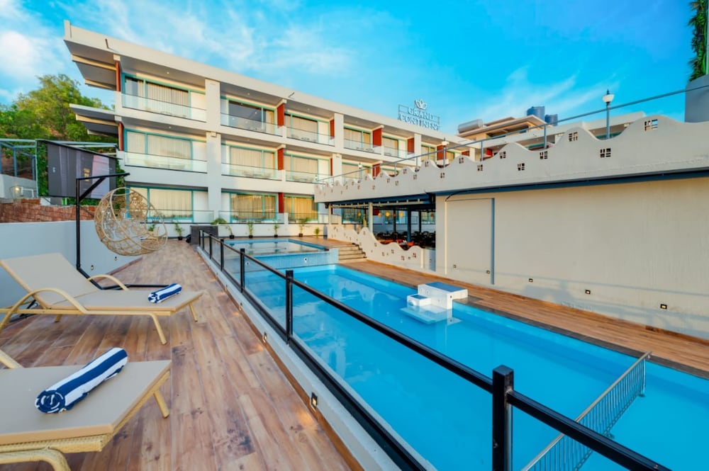 Indulge in the outdoor pool or relax in the garden while enjoying the serene surroundings of Grand Continent Morjim.