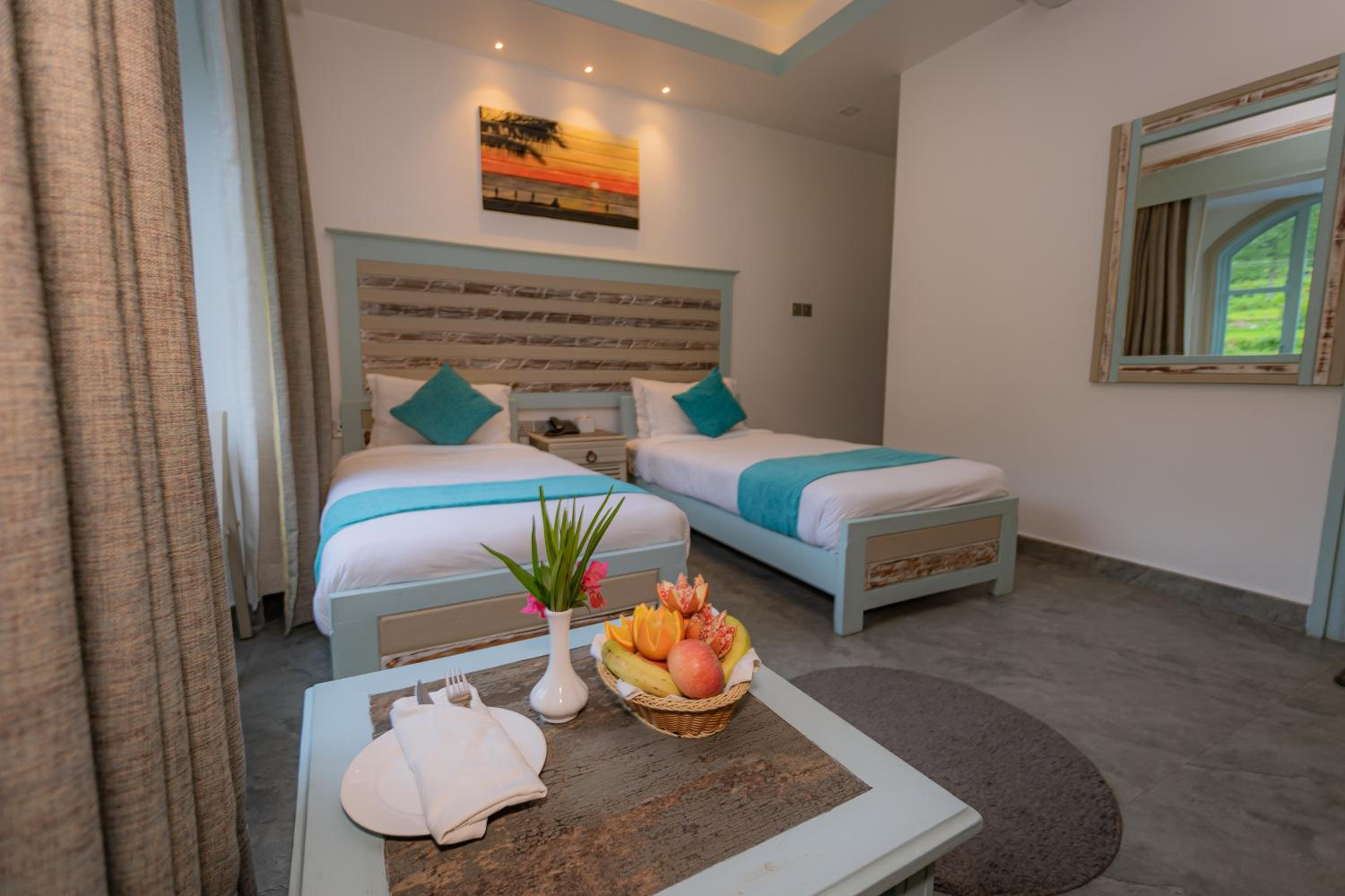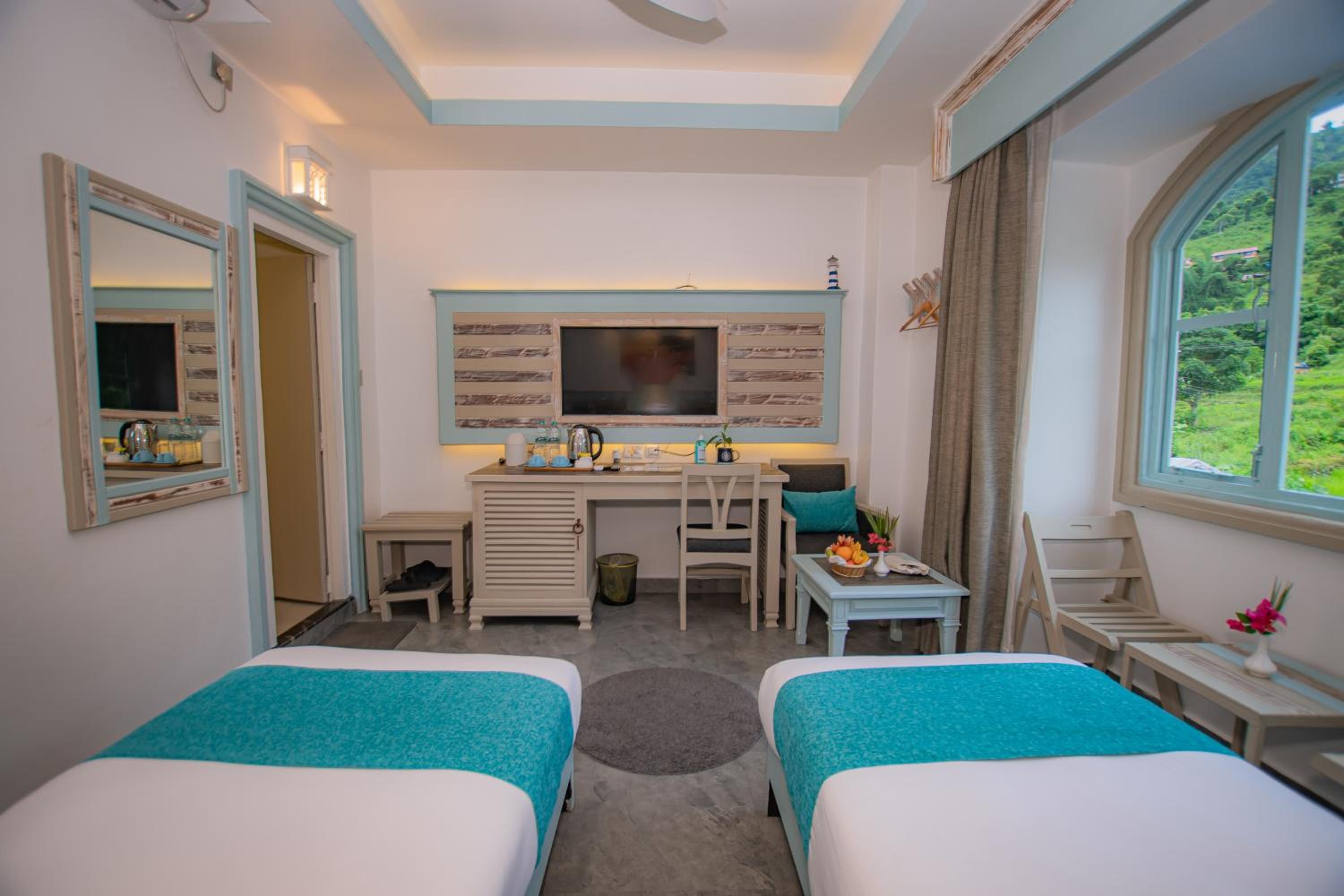 Indulge in breathtaking views of the lake from your private balcony in our air-conditioned rooms, complete with all modern amenities for a comfortable stay.