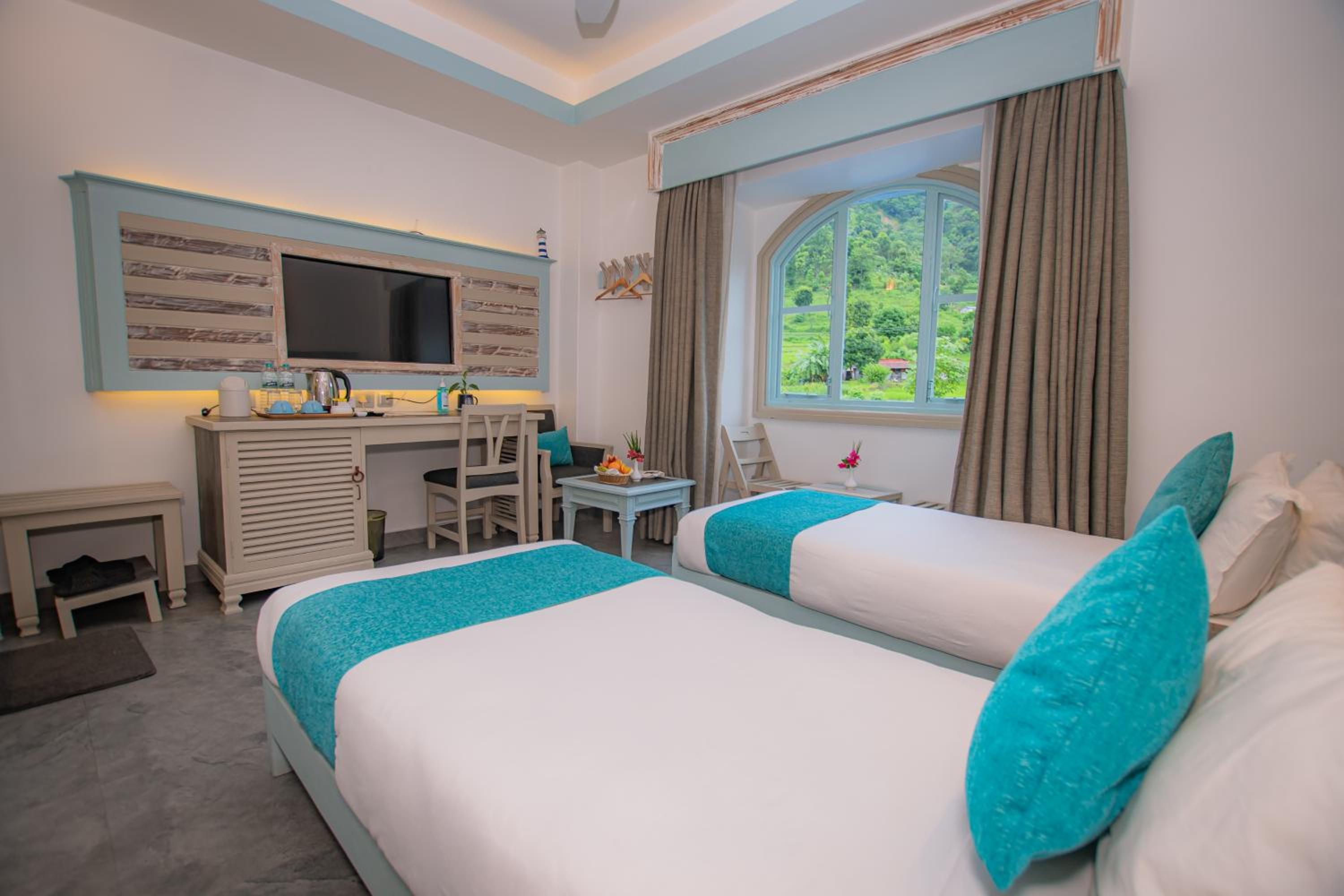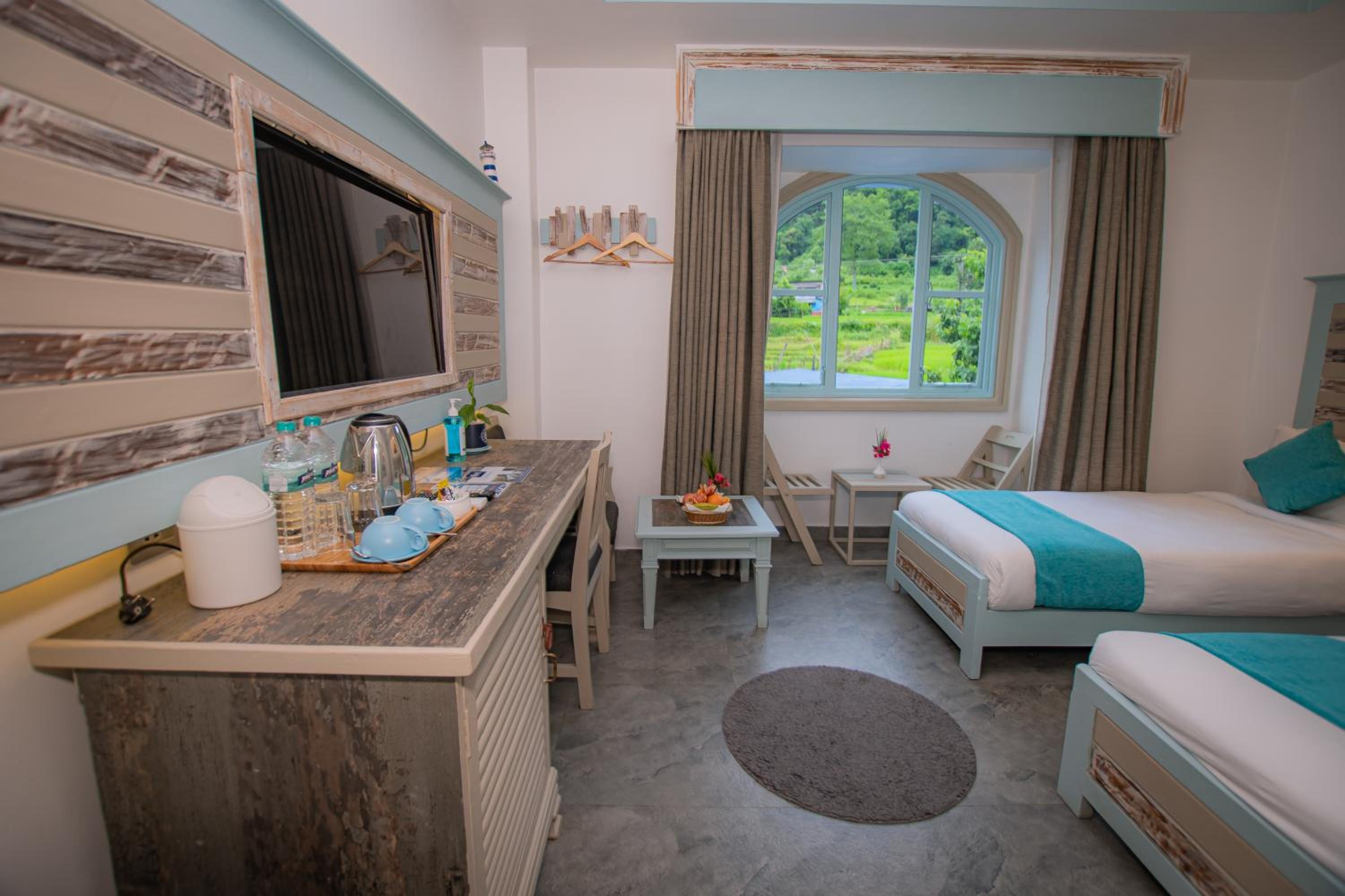 Je ne comprends pas tous les commentaires positifs sur cet établissement. Peut-être que nous ne sommes pas tombés au bon moment. La porte fenêtre était ajourée et ne fermait pas. Nous n'avons eu qu'une seule serviette pour deux personnes et n'en avons pas eu une autre après réclamation. Les draps (et la seule serviette) étaient tachés. L'accueil n'était pas rassurant car il y avait visiblement un hic dans leur organisation de réservation. La chambre donne directement sur le parking et au-dessus de la salle de restauration, donc très très bruyante. Aucune insonorisation dans les chambres et couloirs. L'hôtel n'est visiblement pas ouvert 24/24 puisque nous avons trouvé porte close après notre escapade dans Pokhara... Enfin la piscine est un pédiluve.Bref, je ne conseille pas cet hôtel.