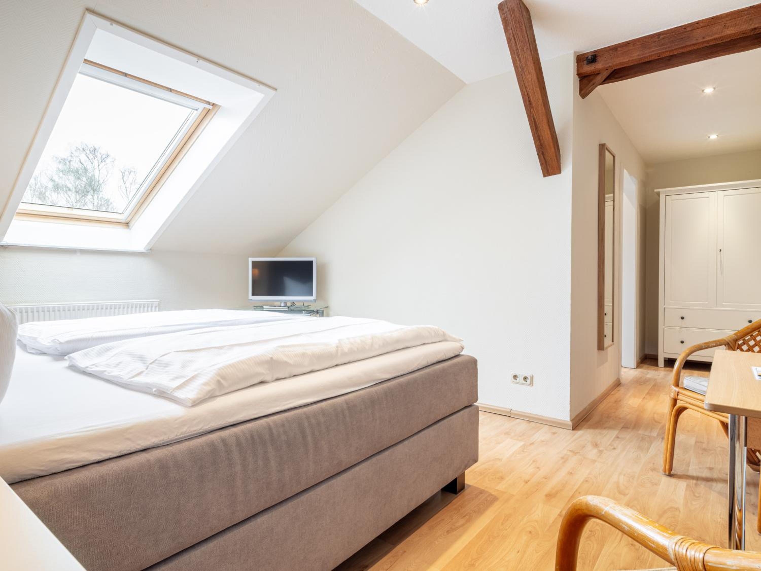 Das Zimmer mit nur einem Dachflächenfenster war zwar groß genug, vermittelte aber etwas den Charakter wie Montagetätigkeit in der Provinz.