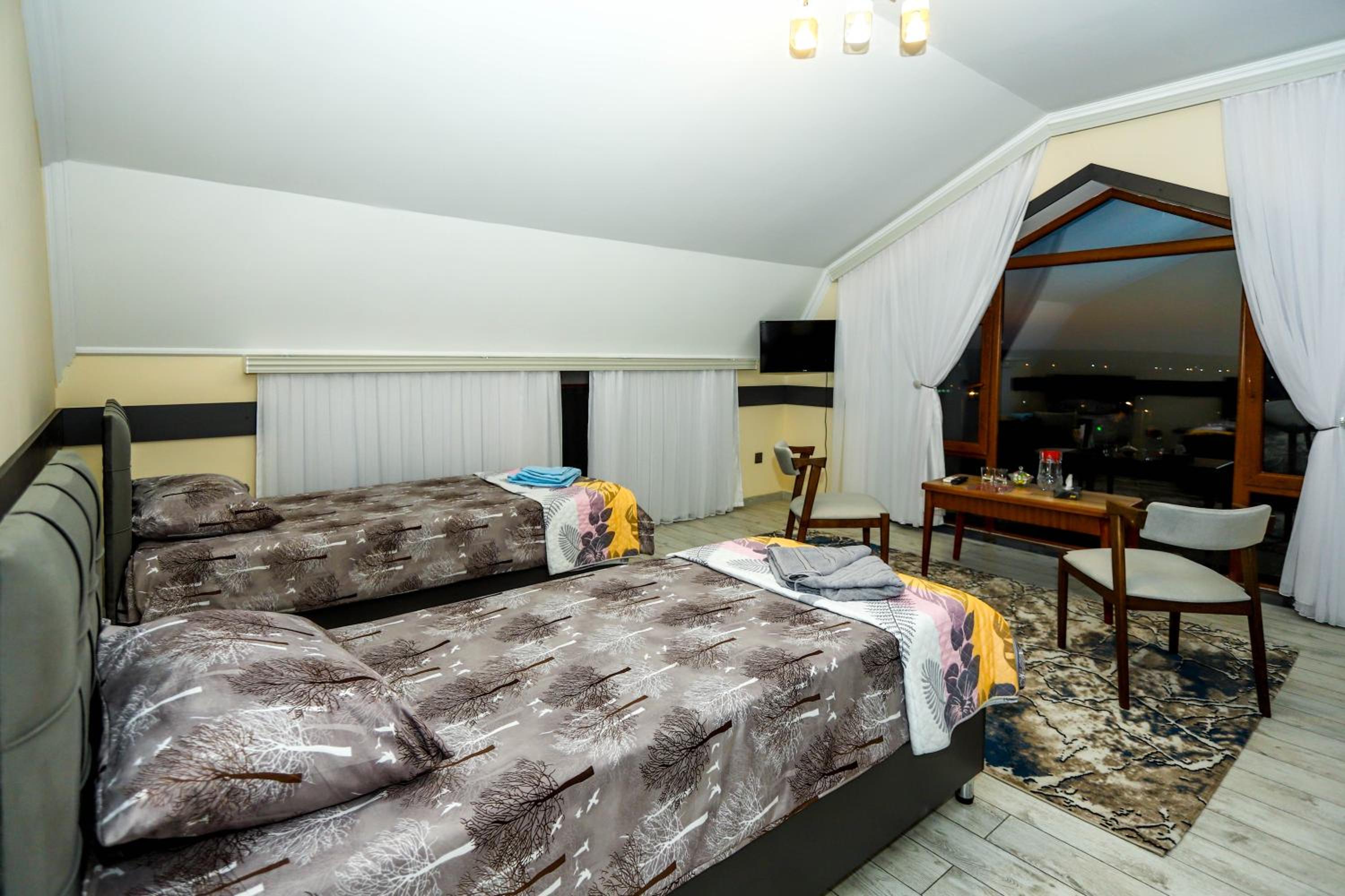 The hotel offers spacious family rooms with beautiful mountain views from the balcony. Each room is furnished with a cozy desk, premium bed linen, air conditioning, and a flat-screen TV.