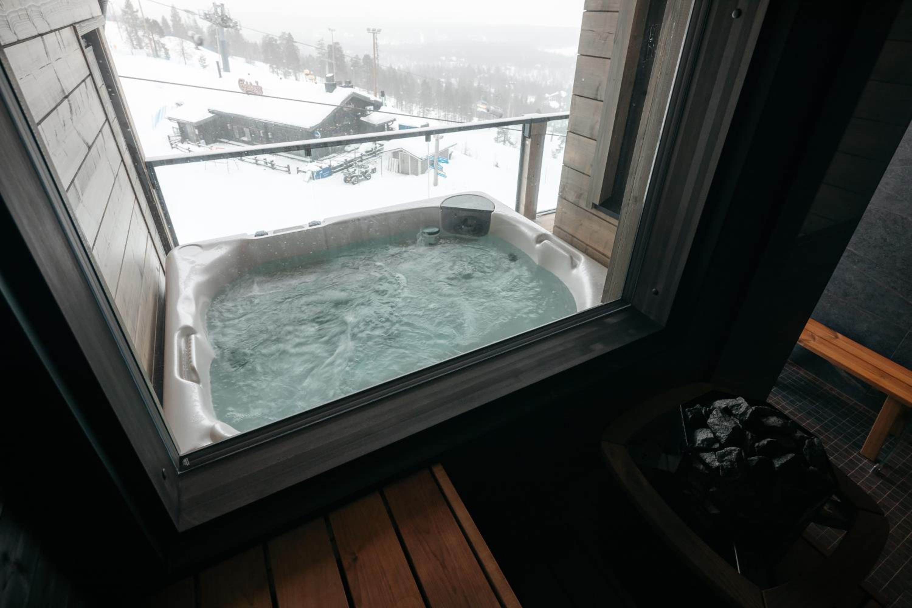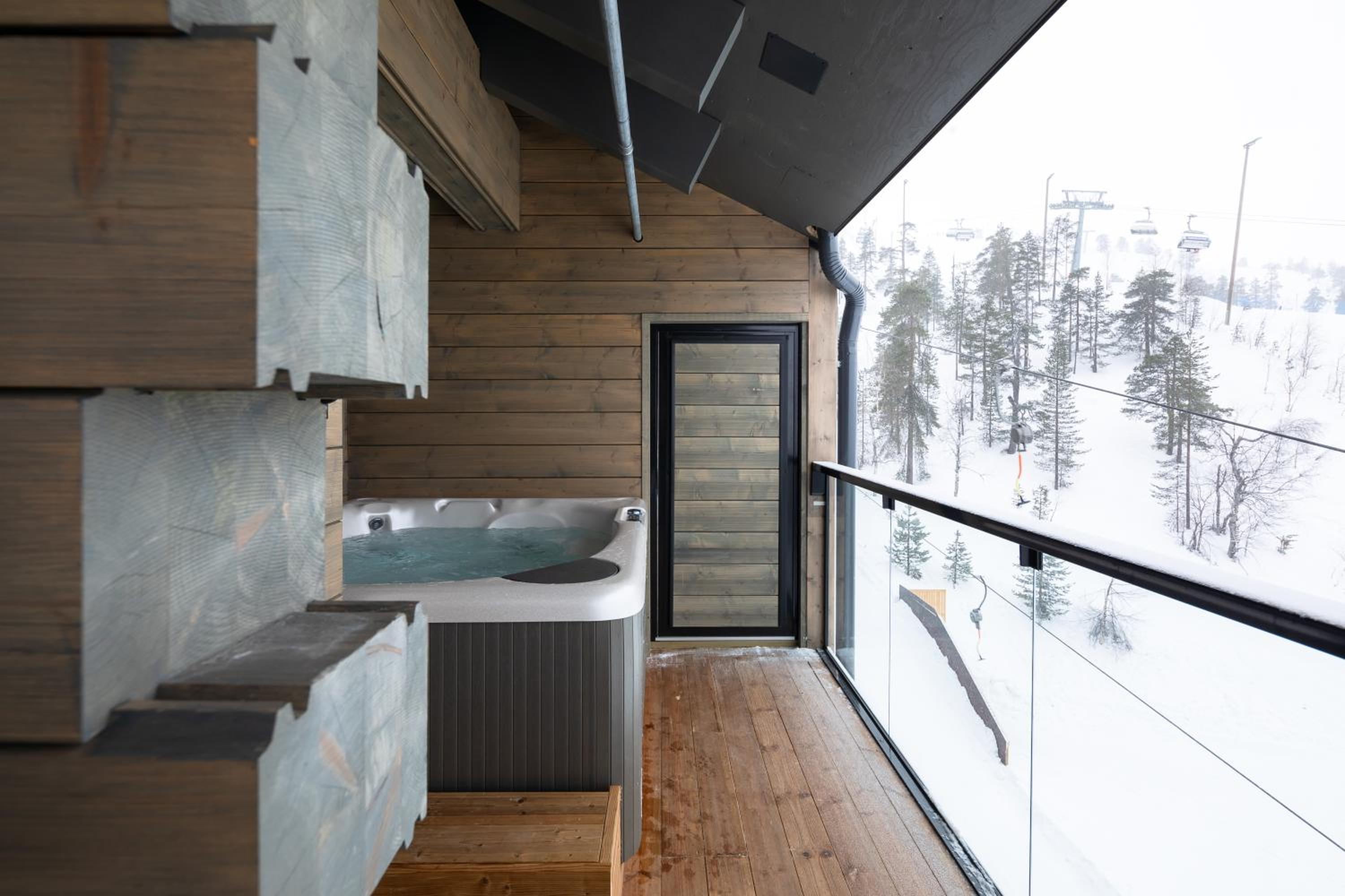 Experience a comfortable stay in our air-conditioned aparthotel with a balcony boasting breathtaking mountain views. Enjoy the spacious 3 bedrooms, 3 bathrooms, fully equipped kitchen, and cozy terrace at Kultakero Northern Sky.