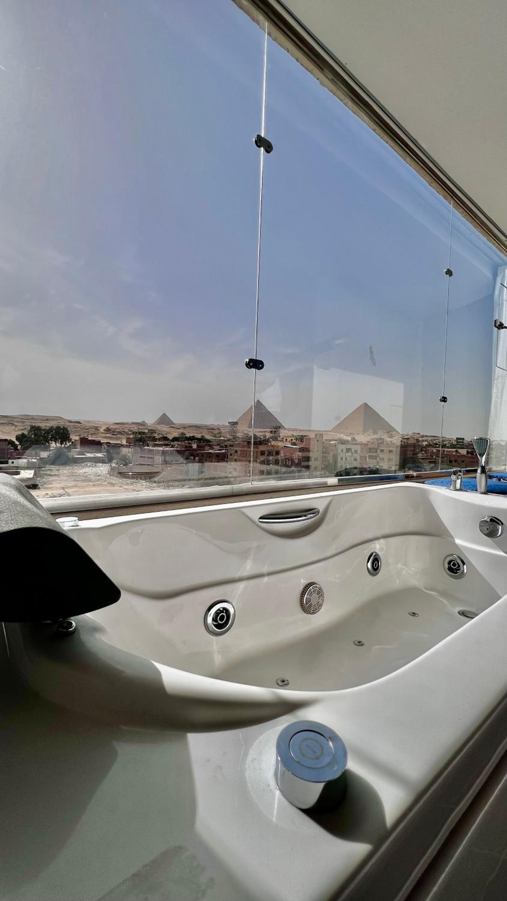 Excellent view of the pyramids with a wall to wall window to enjoy the view