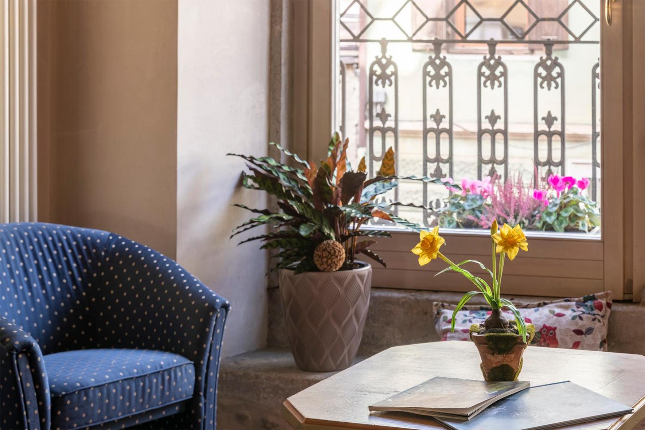La posizione della struttura decisamente fantastica, in pieno centro, con garage sotterraneo comodissimo! La colazione molto buona e variegata, dal dolce al sabato! Ma quello che soprattutto mi ha colpito favorevolmente è stata la gentilezza dello staff, dalla signorina della reception a quella delle pulizie...gentilissime e disponibilissime anche col nostro cagnolino!