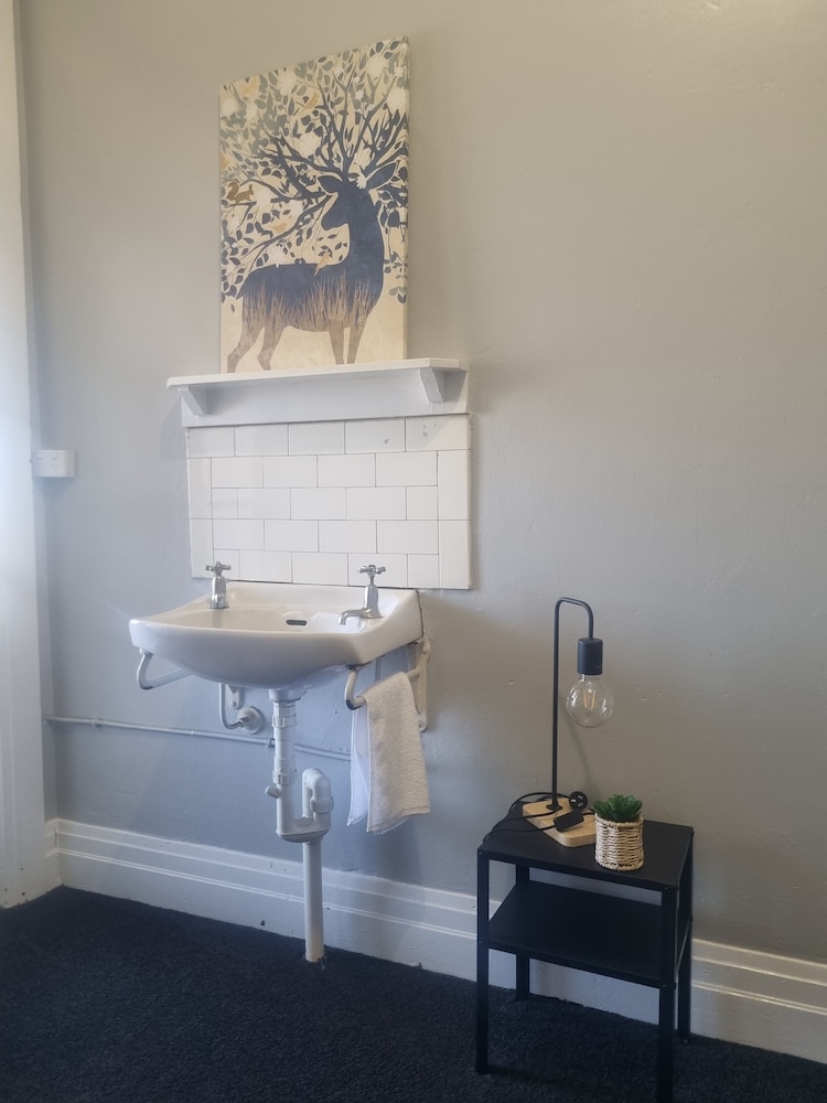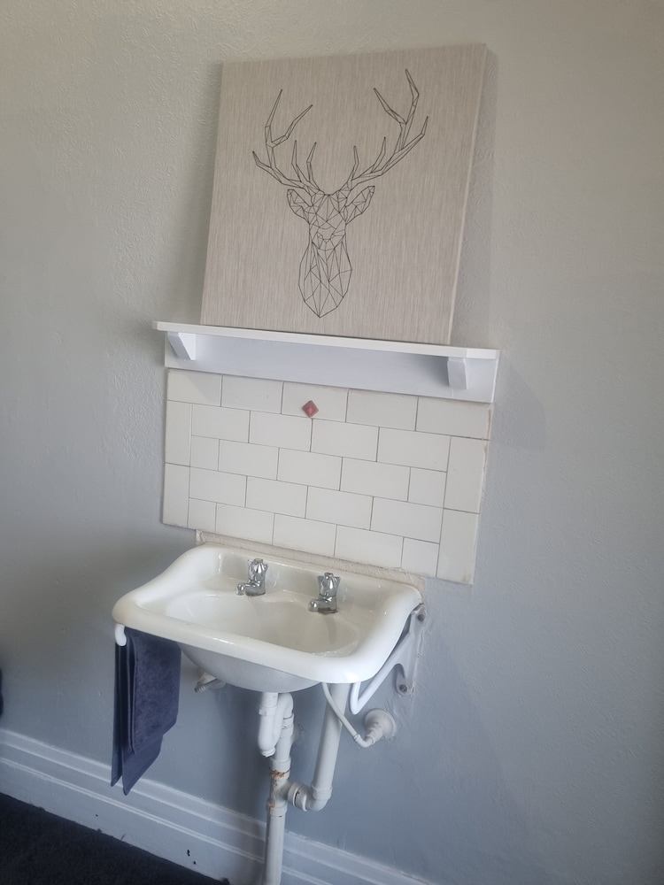 There was also no soap or bin provided. The room also had no place to hang a hand towel, no mini-bar, no fridge, no windows, no TV and 1 single chair (4 person room). The heating consisted of a little portable space heater and a portable oil heater. Shared microwave and bin in the communal kitchenette.