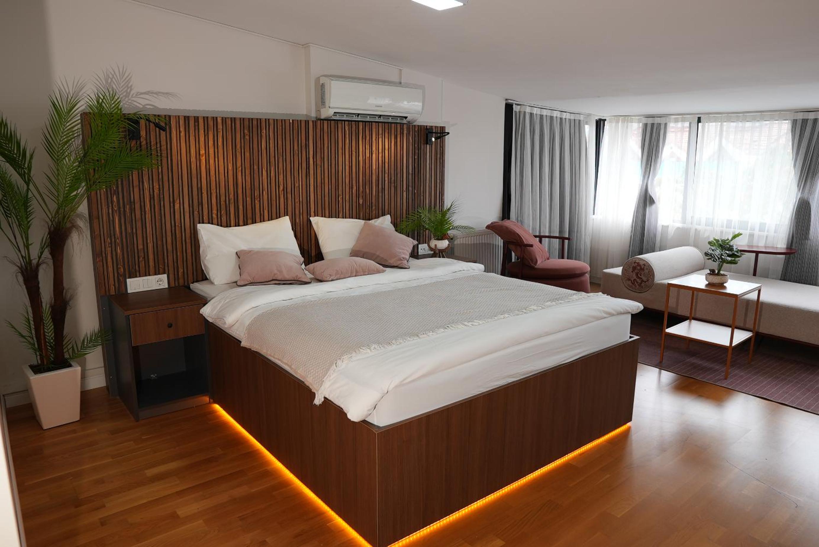 The air conditioner is placed just above the head of the bed. We didn’t use it, but it dripped a little water — we put a glass under it and that solved the issue.