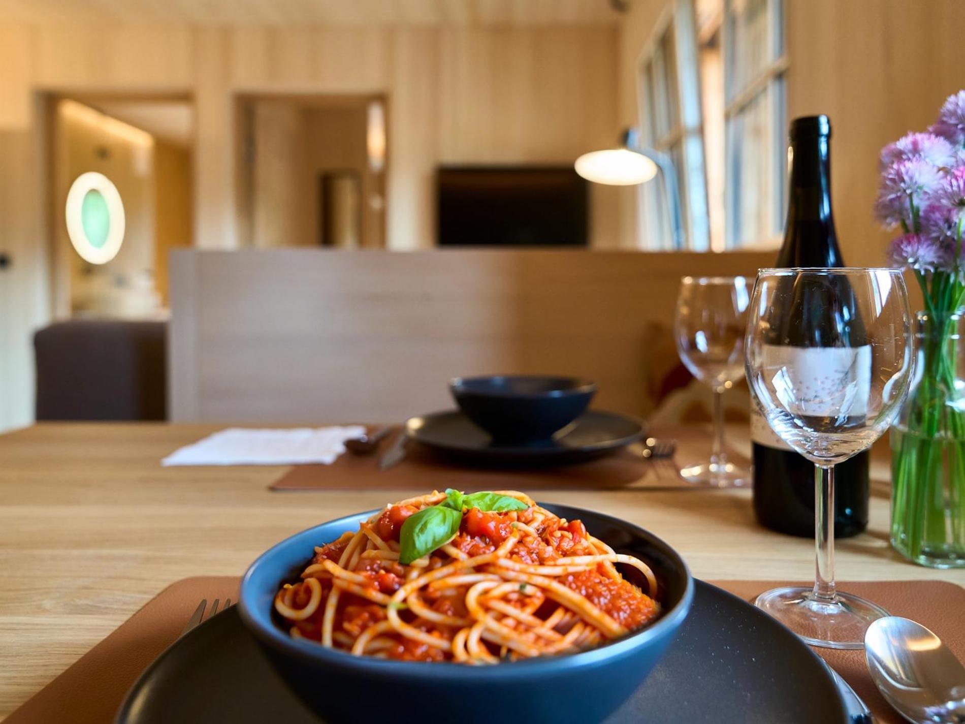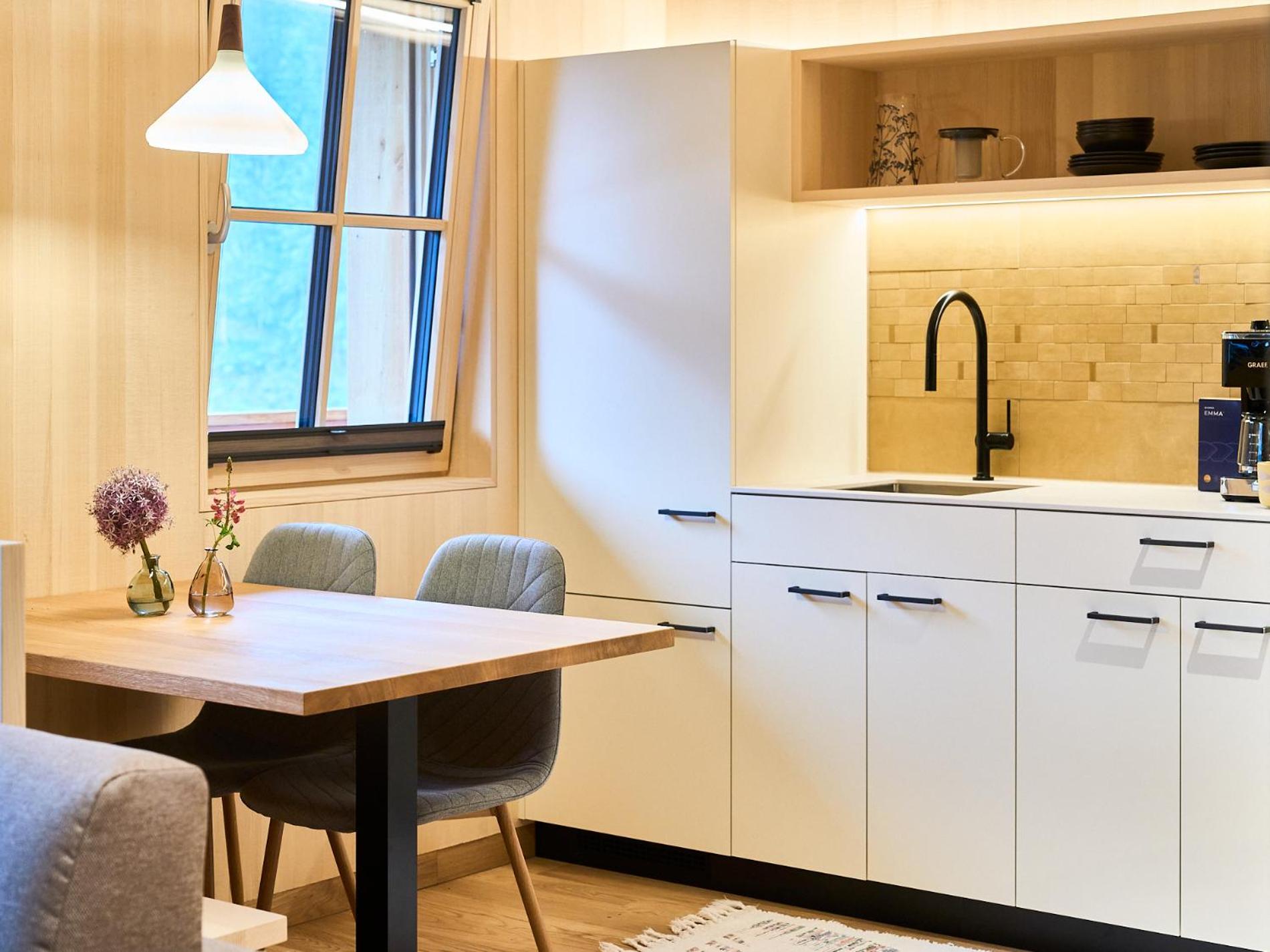 These apartments are so incredible, I started typing this review the evening we arrived. I work in construction and architecture and am stunned by the thought, detail, and execution of this building. From the minimalist styling, the perfectly formed concrete, the use of natural materials like glass, white pine, birch, and slate tile, every detail was thought of to bring peace and relaxation. The best part of my stay was being able to sit on the balcony in the evenings as the clouds sink into the valleys, the moon peaks out, and you’re washed with the smell of cedar from the slat siding. If these vacation apartments haven’t won awards yet, their recognition is coming soon. Then you go to the top floor for the spa. The thought and detail put into the apartments is outdone with the spa. I can not describe the level of perfection met.